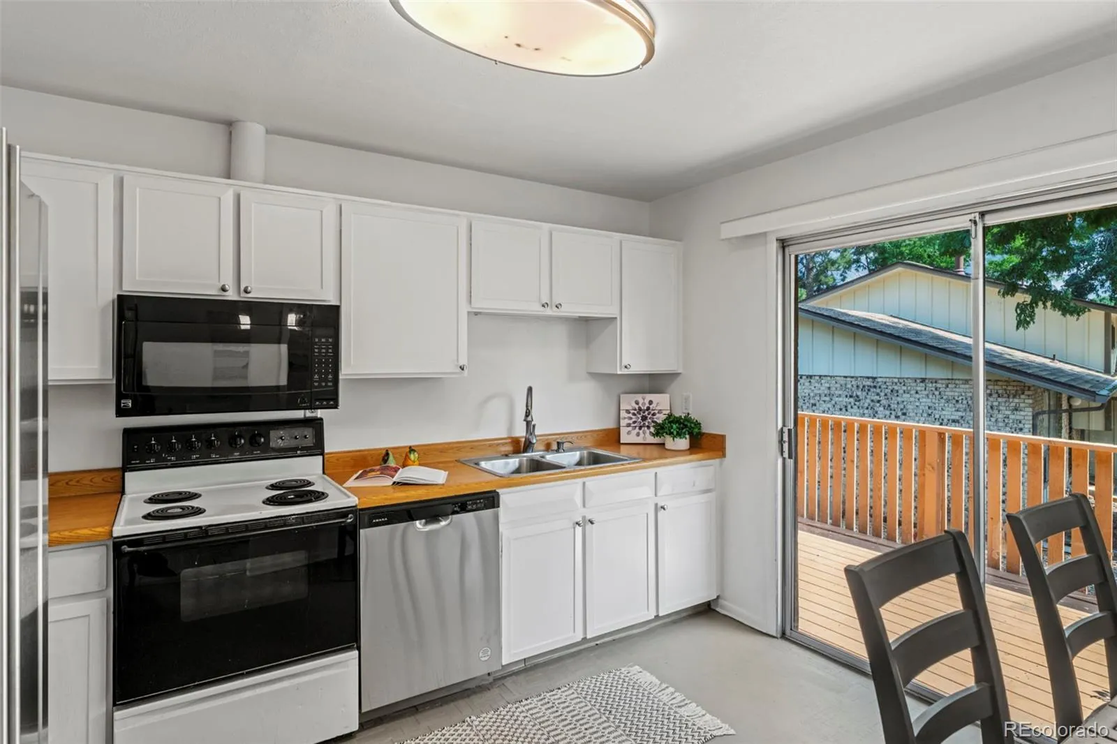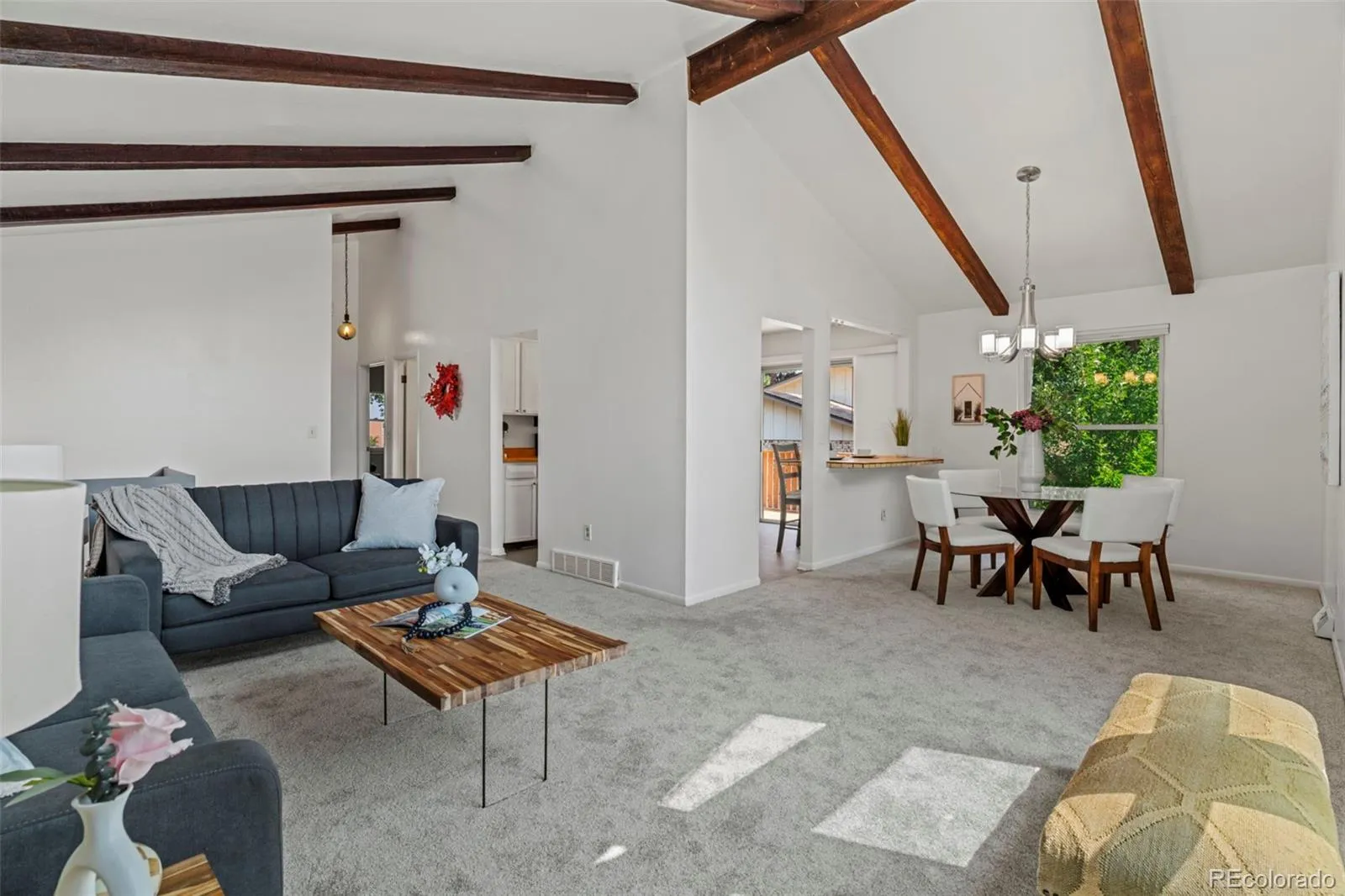 Extensively updated, this charming four bedroom, two bath home in Eastridge offers modern finishes with timeless character. Lovingly maintained with a new roof, new interior and exterior paint, a brand new deck as well as new carpet and updated lighting throughout the home! The home opens to a large, bright foyer with stunning slate tile flooring, expansive windows and a gorgeous sliding glass door that leads out to the private, expansive fully-fenced backyard. Upstairs impresses with vaulted, ceilings with original wood beams, new interior paint and carpet and lots of natural light from the large windows. The quaint kitchen offers all of the amenities one needs with a new dishwasher, refrigerator and another sliding glass door that leads out to the brand new deck-perfect for enjoying a cup of coffee each morning. The dedicated dining room off the kitchen features updated lighting and more natural light. Also located upstairs is the Primary Bedroom, a second bedroom and bath with dual sinks. Downstairs offers two additional bedrooms, a full bath as well as a large laundry room with washer and dryer included! Downstairs also features a large family room with original, but updated wood burning fireplace offset by a third sliding glass door that leads outside to the home’s private courtyard! The large, fully fenced lot offers plenty of room for entertaining and playing. Located in the Eastridge neighborhood with NO HOA and within easy walking distance to Eastridge Elementary School in the award-winning Cherry Creek School District as well the Nine Mile Light Rail!! Minutes from dining, shopping and entertainment!