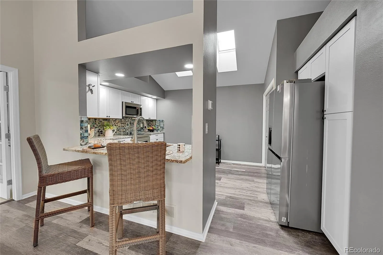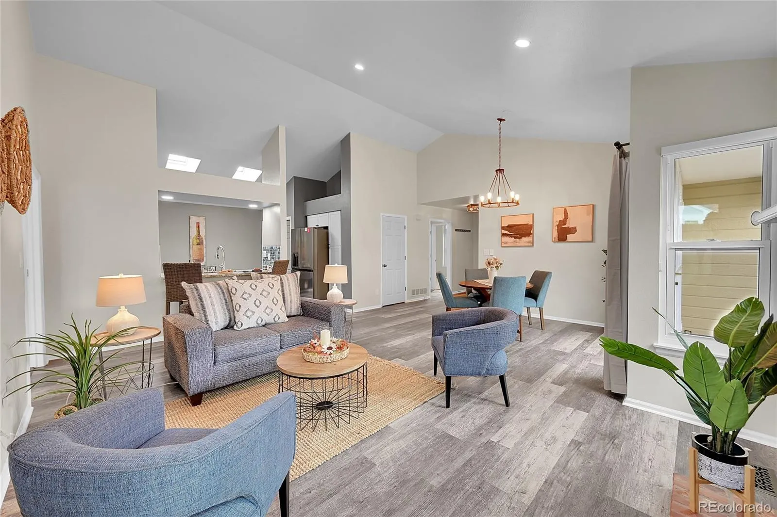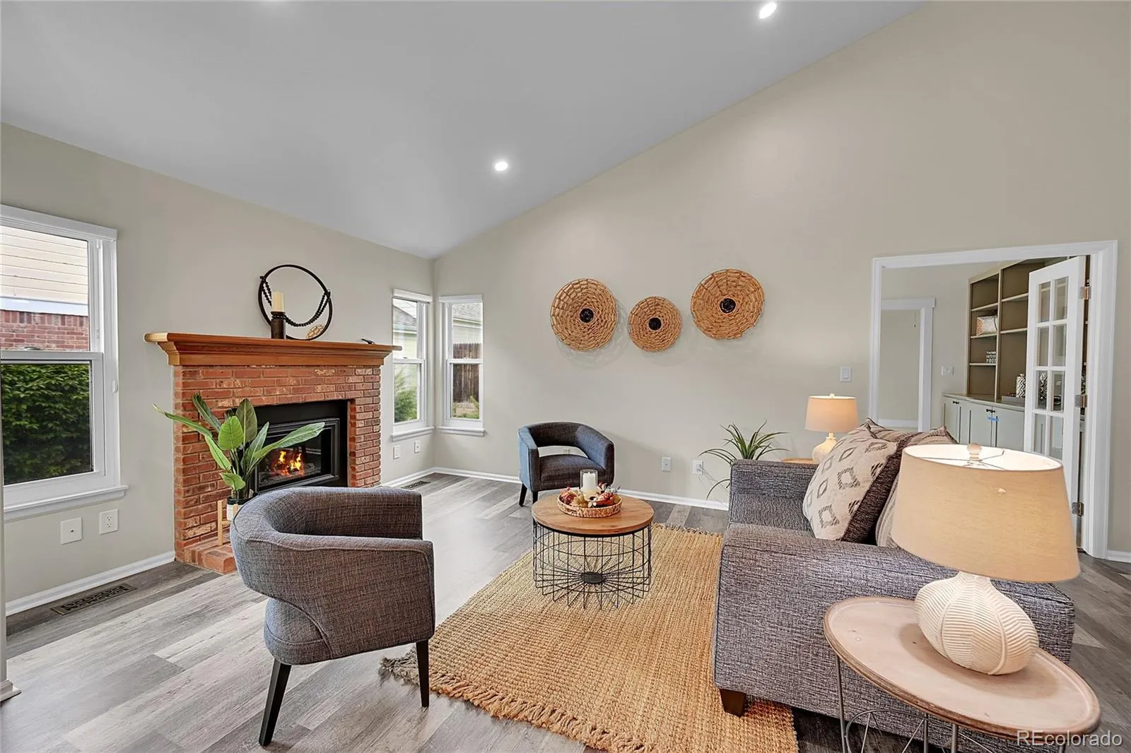 Welcome Home! Buyers are going to LOVE this updated ranch style home nestled in a quiet community called Parkside in Governor’s Ranch. Check out the soaring vaulted ceilings & stylish upgrades throughout. The front bedroom is filled with natural light, with brand new carpet & paint. There’s a full size bathroom right off this bedroom, perfect for guests or family members. At the heart of the home is an expansive great room that seamlessly connects the living, dining, & kitchen areas, making it the perfect entertaining space. Get ready for cooler nights & enjoy the new Jotul fireplace insert. Many updates since 2023 include newer roof, newer plank flooring, paint, window coverings, furnace and AC systems, tankless NG water heater, NUVO H2O system, basement floor & wall paint, brand new Wolf induction range, kitchen sink & garbage disposal, garage heaters & insulation. The kitchen is nicely updated with newer shaker style cabinets, high end granite, stainless steel appliances, & paint. Two skylights just flood this kitchen with natural light. Just off the great room is a cozy den with NEW custom built-in book cases, tile floor, door, base and casing, and paint. The recent updated vaulted primary site offers a luxurious retreat with dual sinks, a spacious walk-in shower, a new tub, new plumbing fixtures, & tile flooring. These owners had exquisite taste and it shows throughout the updates. The unfinished basement is waiting for your designer touches. There are 2 covered patios to enjoy in all 4 seasons. Step outside & enjoy a private yard, a garden area for flowers/vegetables. The two car insulated garage is roomy & heated. Home is near Belleview Shores shopping center, Southwest Plaza Mall, Racoon Creek Golf Course, & Clement Park. Ideally located near Cody Park & Governor’s Ranch Park, a short drive to downtown Denver, Chatfield State Park, & Red Rocks Amphitheatre. The HOA offers a pool, tennis and pickle ball courts, a clubhouse, parks & trails.