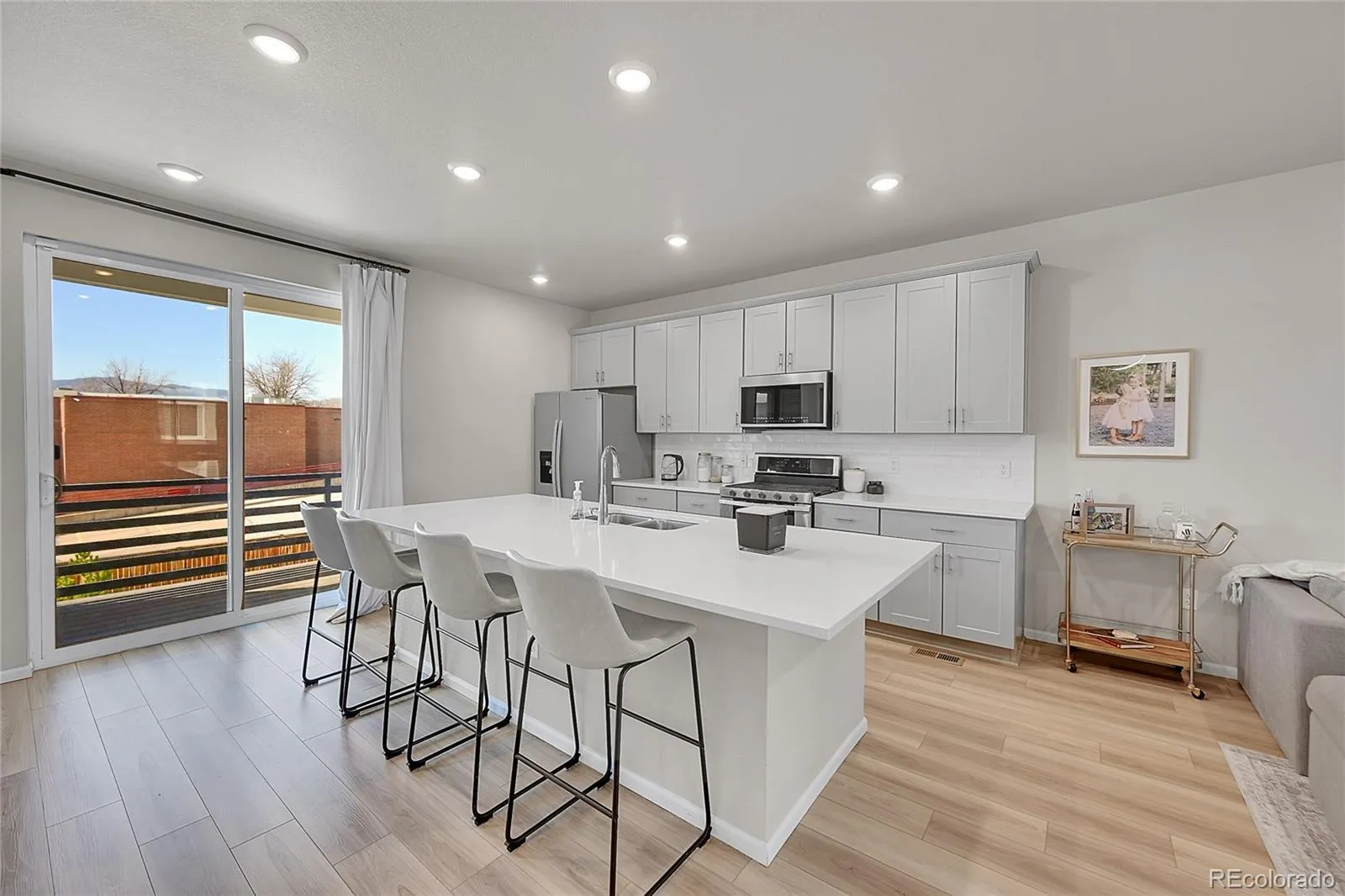 This luxury townhouse offers some of the most breathtaking, completely unobstructed mountain views in the area. From the kitchen, upper bedroom, and private roof deck, you’ll take in panoramic vistas of the Front Range, stretching from the southern peaks all the way to Boulder. Start your mornings with coffee and mountain views and end your day with spectacular sunsets from your deck. Beyond the views, this home is in a prime location. Situated on the far western side of the community, it provides immediate access to trails in Van Bibber Open Space, is just minutes from Stenger Sports Complex, and offers easy commuting with quick access to light rail and Olde Town Arvada. Inside, the home is in pristine condition with an open-concept floor plan. A gourmet kitchen features a custom island, matching upgraded appliances — including a dishwasher — and even a washer and dryer. The spacious dining area and living room create an inviting space for entertaining. With a full bath on every floor, convenience is built in. Upstairs, the large primary bedroom boasts a walk-in closet and en-suite bath, while an additional upstairs bedroom enjoys those stunning mountain views. Don’t miss this rare opportunity to own a home where location and views come together perfectly!