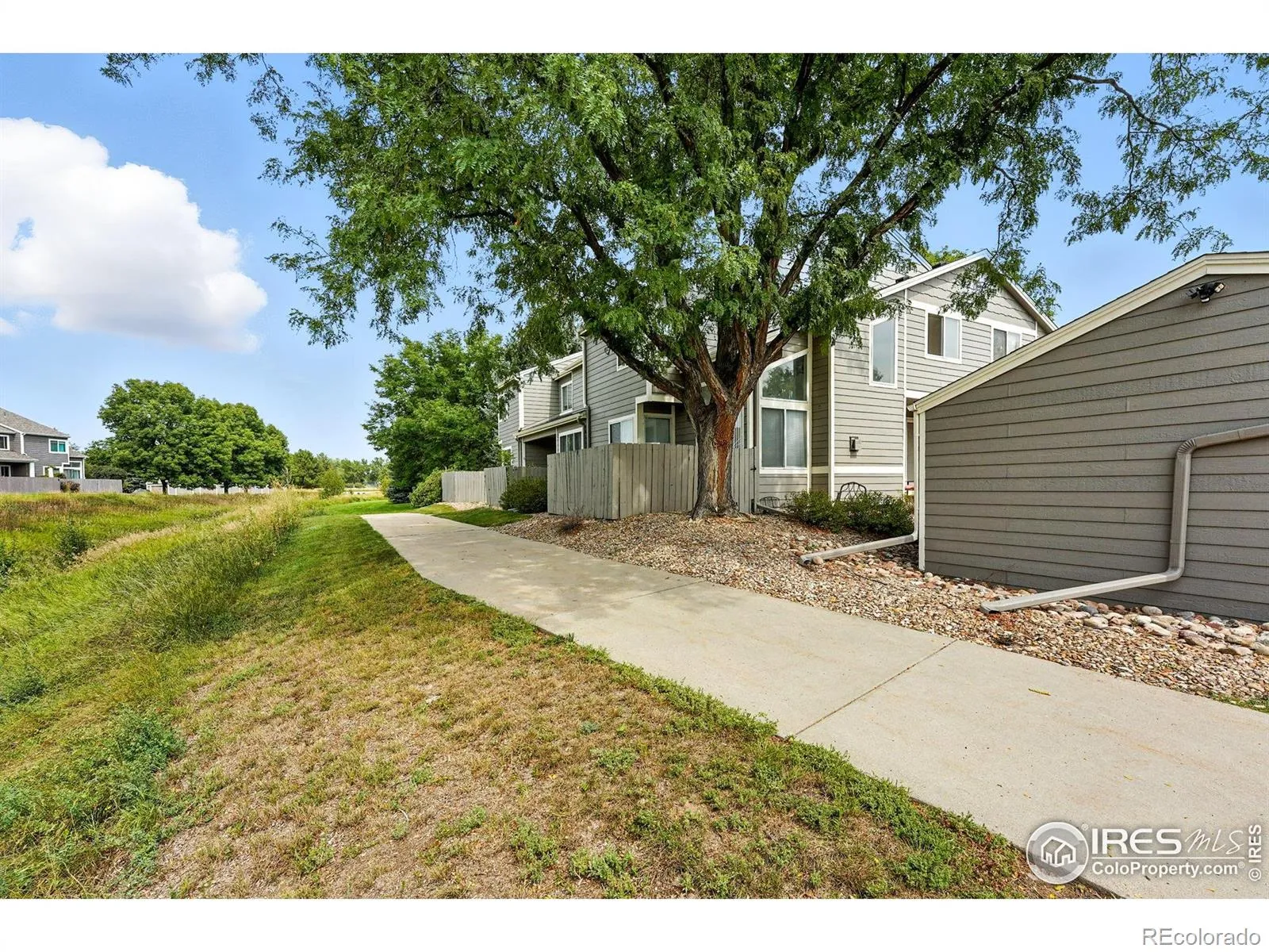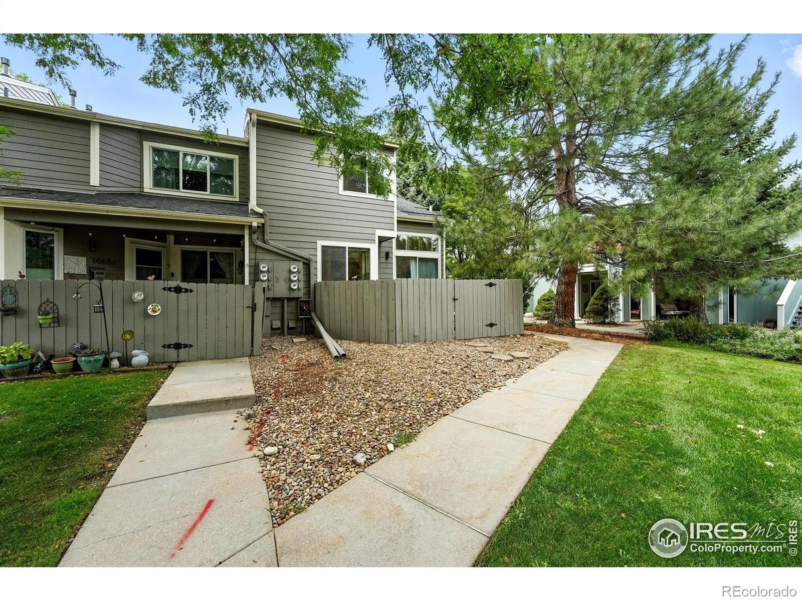 Tucked away in a quiet corner of the complex, this move-in ready end-unit is surrounded by mature trees and filled with natural light. The main floor greets you with airy vaulted ceilings and abundant windows, creating a light and spacious feel throughout the open-concept layout. The kitchen seamlessly flows into the living and dining areas, anchored by a cozy gas fireplace. A convenient half bath completes this level. Upstairs, discover two generous bedrooms with elegant luxury vinyl plank flooring and a beautifully renovated full bathroom. The primary bedroom includes two spacious closets, offering ample storage. One of the home’s most coveted features is the private, fully-fenced courtyard-your personal oasis for morning coffee or alfresco dining. A gate provides direct access to the expansive, HOA-maintained grounds, perfect for recreation. The unfinished basement and a detached one-car garage (#1) offer endless possibilities for a home gym, workshop, or extra storage. Perfectly centered between the charming downtowns of Louisville and Lafayette, you’re just moments from shopping, coffee shops, restaurants, and BVSD public schools. Enjoy the best of Colorado living with Waneka Lake and the Coal Creek trail right nearby. This is a wonderful place to call home.
