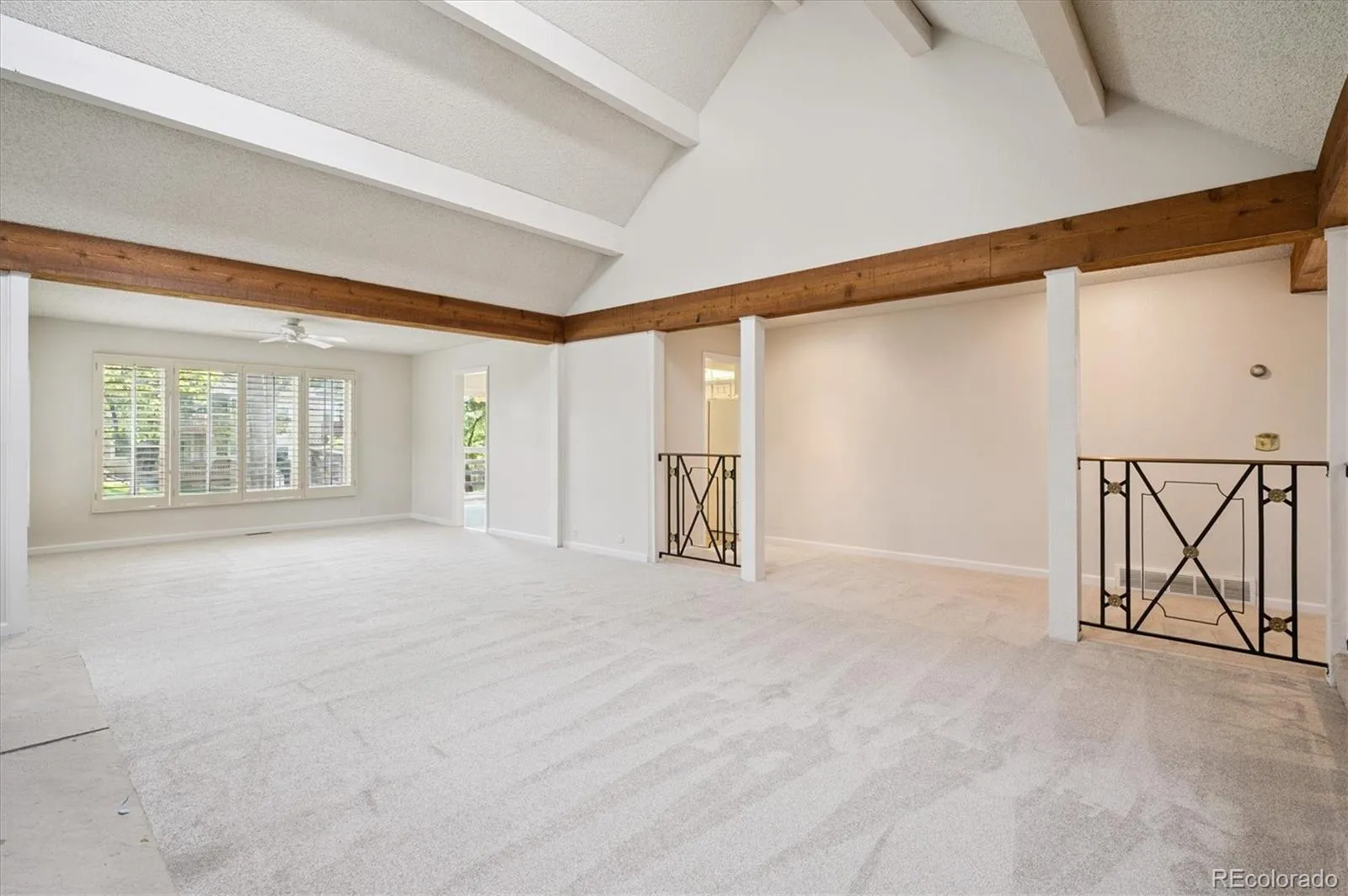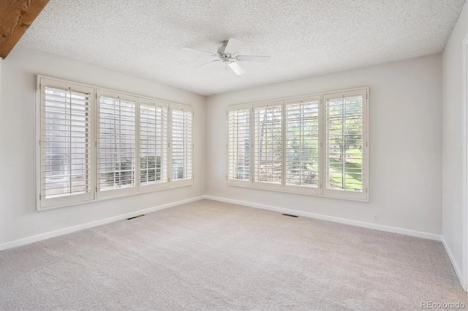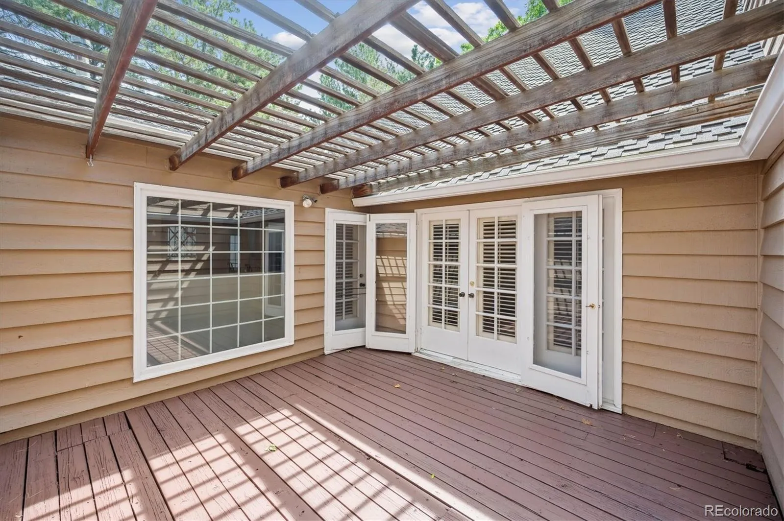 Welcome to this highly sought-after ranch model in the desirable Stoney Brook community, offering timeless style and modern comfort. Step inside to soaring vaulted ceilings with exposed beams and wrought iron accents, creating a dramatic great room anchored by a gorgeous fireplace. Fresh paint, new carpet, and plantation shutters enhance the light and bright interior. The spacious kitchen features a sunny eating area with direct access to the deck, where you can relax while enjoying tranquil views of the pond and fountain. The primary suite is a true retreat with private access to a secluded patio—perfect for morning coffee or evening relaxation. A main-floor office, large secondary bedroom, and full bath provide flexibility and convenience. The finished basement expands your living space with a third bedroom, full bath, and versatile future recreation area. Residents of Stoney Brook enjoy a wonderful lifestyle with access to community amenities including a pool, tennis courts, pickleball and beautifully maintained grounds. This is Colorado living at its best—comfortable, stylish, and set in a vibrant community.