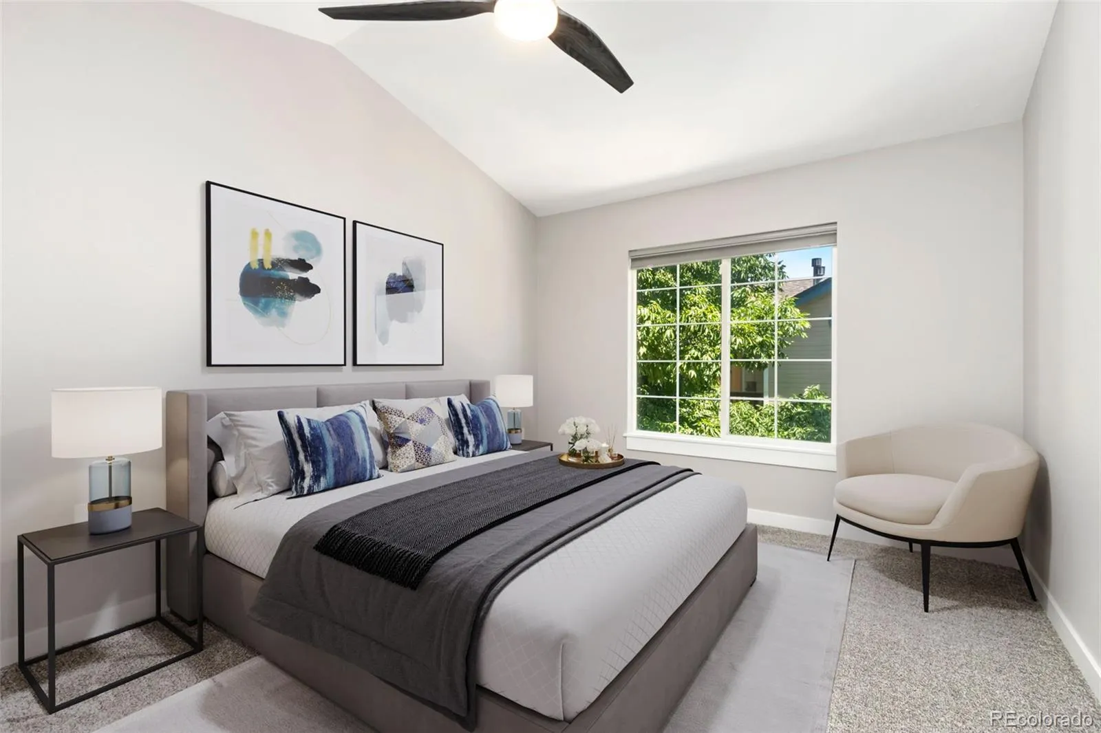 Everything new! Pride of ownership shines in this newly and completely upgraded and private top floor unit condo! Spacious, vaulted and bright, with 3 bedrooms/ 2 baths, 2 balconies, and 1-car detached garage. Also 2 extra parking spots! Shiplap surround fireplace. Generous master suite with walk-in closet. New double coat and double primer paint, top-down blinds, 9” LVP, and Brazen II carpet with upgraded pad. Extended kitchen with new Braun stove/ range with internal air fryer, LG side by side refrigerator, soft close drawers, custom 3” wood shelving, and new tile. New fixtures, Carrara marble vanities, and toilets. All lighting, recessed lighting, and ceiling fans. All new outlets, outlet covers, and vent covers. New door hardware and hinges. New A/C unit and washer & dryer stay! Pool and hot tub included with HOA!! Quiet community close to CSU, hiking and biking, bus stop, shopping, Horsetooth Reservoir, Temple Grandin Equine Center, and the best of Fort Collins. Amazing to show and prime location, this one is impressive!