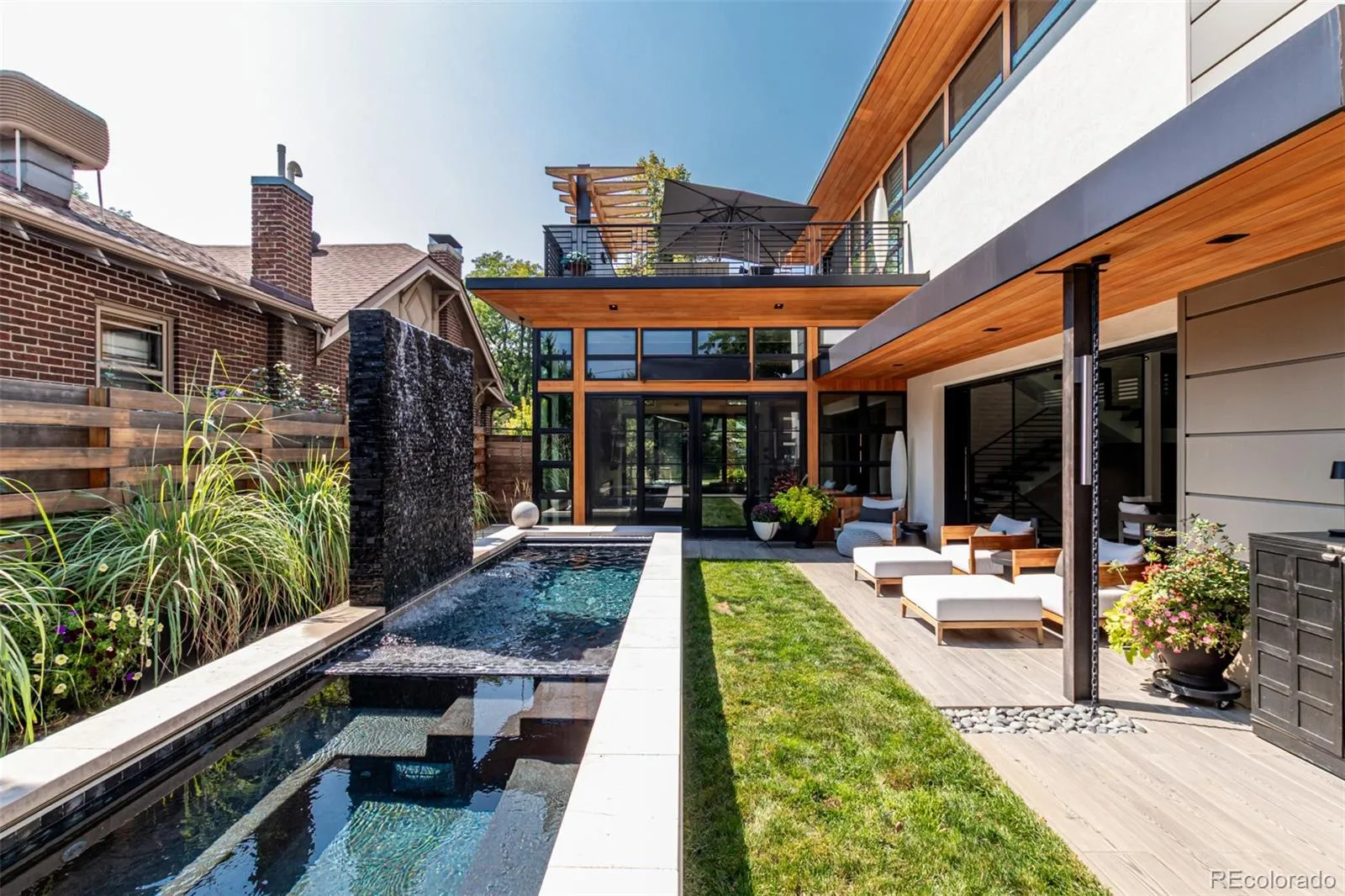 Contemporary Custom Masterpiece one block from Washington Park was designed by architect Ron Faleide. Outstanding custom features and detailing throughout. Upon entering with the sound of the ribbed waterfall fountain, your focus turns to the sunken living room with a full marble fireplace wall and glass walls opening to two patios. The showpiece kitchen great room has a large island for gathering with casual and formal dining. These rooms open with a Marvin Ultimate glass wall/door system to a secluded courtyard with heated pool/spa and waterfall wall. The kitchen offers high-end professional appliances to entice fabulous recipes- Dacor panelized refrigerator, Viking 7 Series gas range cooktop with grill, Wolf convection steam oven, Viking two door commercial series convection oven and Dacor drawer microwave. Main floor spacious home office with high ceilings, built-in desks and lit floating display shelving. The main level continues with a laundry room with sink, powder bath and an outstanding Zen like bedroom suite opening to the west courtyard with covered seating gas fire feature and dining area. An outstanding feature is the floating stairwell, glass wall and custom railing. The grand primary suite spans the entire upper level. The sleeping area opens to a rooftop deck with an architectural pergola overhang with mountain and Smith Lake views. The generous dressing room includes a modern closet system, “Shoe Zen”, ironing board & mirror, and Zephyr beverage refrigerator. Continuing with the large primary bath with double Kohler sinks, walk through shower with multiple spray heads, two comfort bidet toilets and Avalon free standing “NativeStone” soaking tub and stackable washer/dryer. This bath area opens to a private covered outdoor wood deck with outdoor shower. The lower-level has a calming entertainment room with massive light generating window well is complete with an elaborate bar/ mini-kitchen, 3rd Bedroom with designer 3/4 bath and storage room.