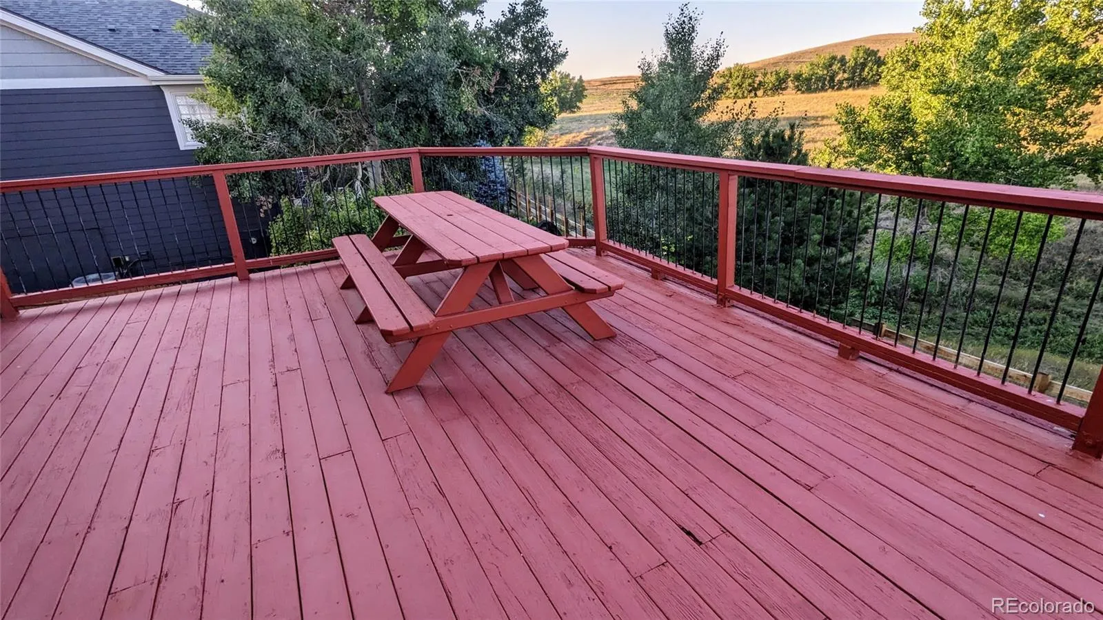 If you enjoy vast interior volumes, this may be the place for you! The living room, entry foyer, and great room have 18-foot-tall ceilings, 40% of the first floor. The high-ceiling living room and great room are connected over the loft, adding to the sensation of interior volume! The great room has a built-in corner gas fireplace with a large niche. The kitchen has brown granite countertops, an island, a pantry, many cabinets, and a built-in desk. Also on the main floor is an office, a laundry room, and two closets. The main floor has six magnificent archways. The top level is accessed via a spiral staircase with a wooden baluster. The master bedroom features a pitched ceiling, a window overlooking open space hills, a five-piece master bathroom, and a spacious walk-in closet. Second and third bedrooms, with a jack-and-jill full bathroom, are accessed from the loft. There is a complete second residence in the walk-out basement, featuring a kitchen, dining room, family room, and two bedrooms. The basement’s 3/4 bathroom features marble tile walls, a glass block shower, and a glass block window that lets light in from the adjacent bedroom. The basement can be entered from the main floor or through the sliding glass door to the lower deck. There is a key to open this lower entry door. The garage features a three-car configuration, complete with a workbench and extensive built-in shelving. There is a massive two-story wooden deck with glorious views of the nearby open space hills! The upper deck is 870 sq. ft. and wraps around to a staircase to the lower brick sidewall. The lower deck is 640 sq. ft. and features the entry door to the walkout basement. The backyard is a brick piazza with garden spaces and a goldfish pond. Riding out from the garage, one can cycle up a dirt trail to the Erie single-track park or the extensive Coal Creek trail, which extends to Lafayette. A bicycler’s paradise! Come and see it!