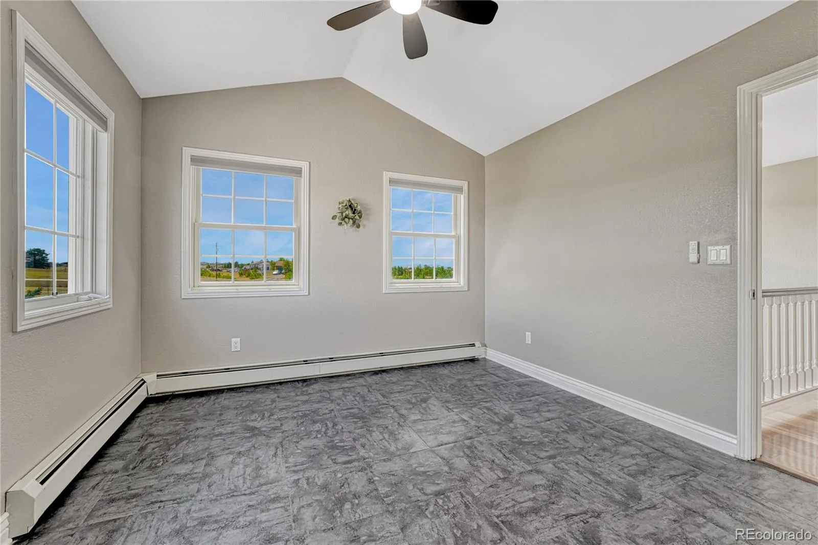 Upper level has 4 bedrooms, 2 bathrooms, vaulted ceilings, & ceiling fans. Nice size primary bedroom has a vaulted ceiling, gas fireplace, walk-in closet with built-ins. Primary bathroom was remodeled in 2025 with natural stone heated floors, stone slabs in the shower, Moen smart shower with multiple shower heads, upgraded cabinets, dual sink vanity, and a tasteful barn door. There is a 3rd level with a 3/4 bathroom and large bonus room.