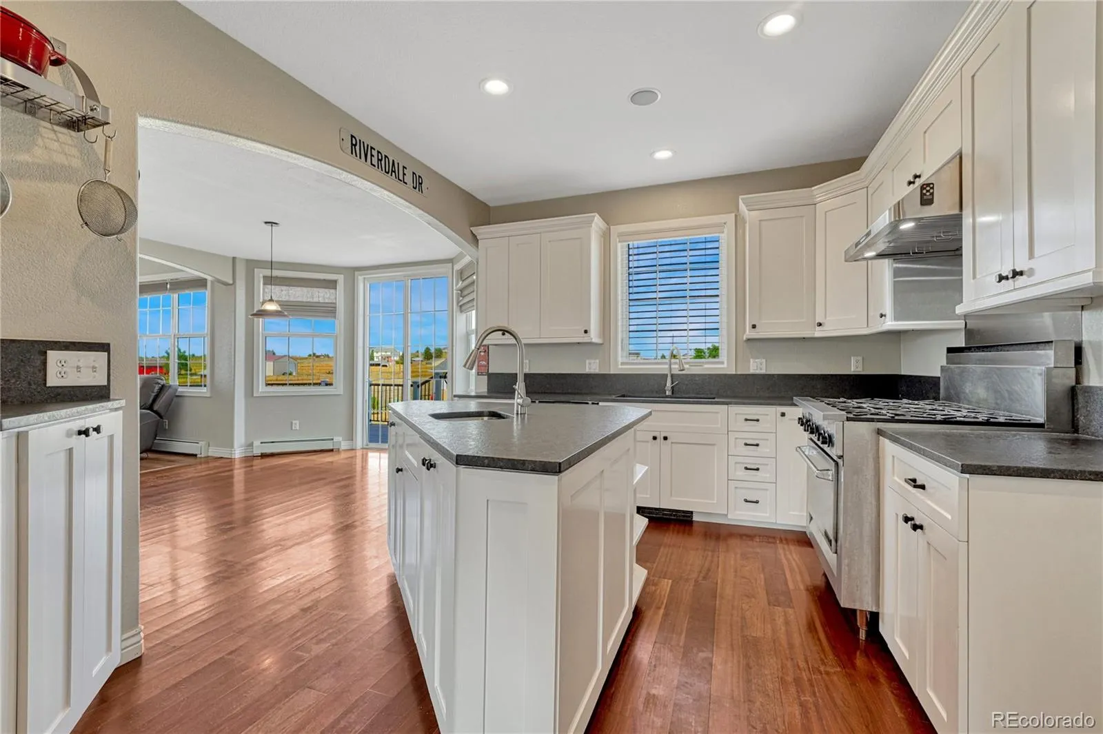 Extensive improvements with this recently remodeled property. Kitchen boasts leathered stone granite countertops, upgraded cabinets, stainless steel appliances, 6 burner gas stove, 2 sinks, and built-in shelving. Main level has 5″ Brazilian Cherry hardwood floors, floor to ceiling stone surround wood burning fireplace, pellet stove, formal dining area, office, breakfast nook, and a new 500+ sq ft Trex Deck (2025).