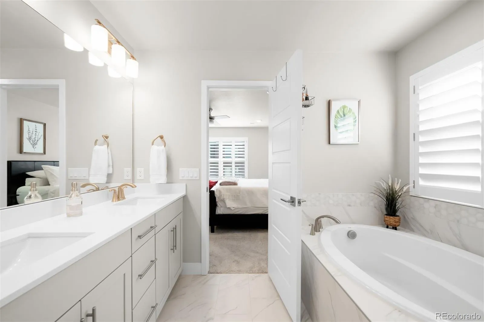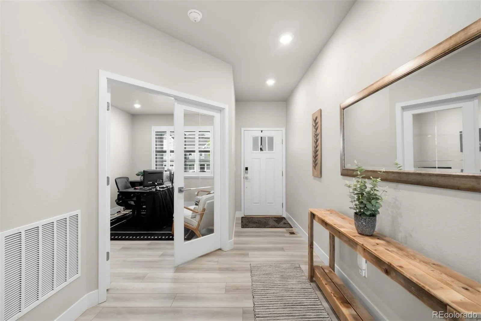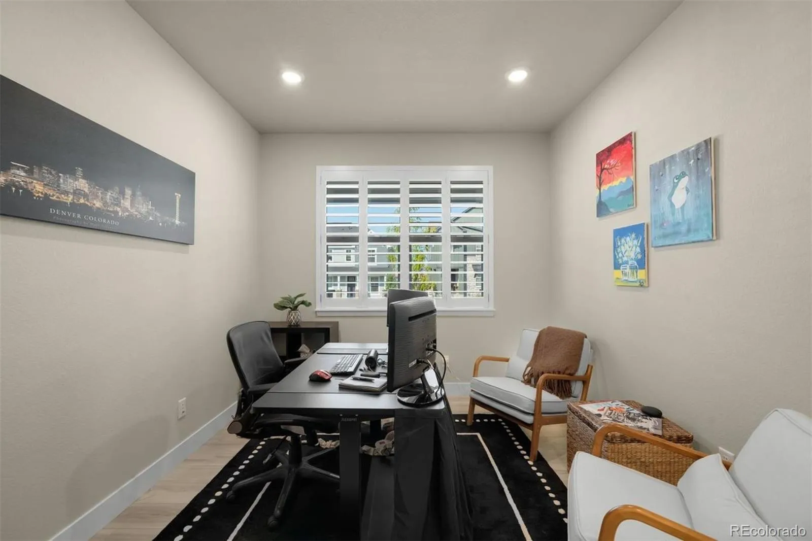 Ascend the welcoming, elevated front porch of 9780 Banner Peak and step into one of Sterling Ranch’s most coveted floorplans. Built in 2022 and meticulously maintained, this residence combines thoughtful design and everyday functionality. At its heart, a soaring two-story living room with vaulted ceilings creates an airy, light-filled gathering space, an uncommon feature within the community. The main level includes a dedicated office with glass French doors, ideal for remote work, as well as an adjacent powder bath for added convenience. Upstairs, a versatile loft overlooks the great room, complementing three spacious bedrooms. The primary suite offers a serene retreat with an ensuite bath featuring dual vanities, a soaking tub, and a separate shower, along with a generous walk-in closet. Two additional bedrooms share a full bath. An upper-level laundry room enhances everyday ease. The unfinished basement offers abundant potential, whether envisioned as future living space, a home gym, or simply ample storage. The outdoor space is designed for effortless enjoyment. Professionally xeriscaped landscaping means no maintenance is required, simply step outside and enjoy the setting without lifting a finger. A private patio provides the perfect backdrop for morning coffee, evening gatherings, or relaxed weekends, all framed by west-facing mountain views that capture Colorado’s dramatic sunsets. Nestled within Sterling Ranch, a master-planned community in Douglas County, this home provides access to nine villages, miles of trails, open space, and thoughtful amenities, from a community coffeehouse to a recreation center. Perfectly situated near Colorado’s state parks and natural foothills, the setting blends modern convenience with outdoor living.
