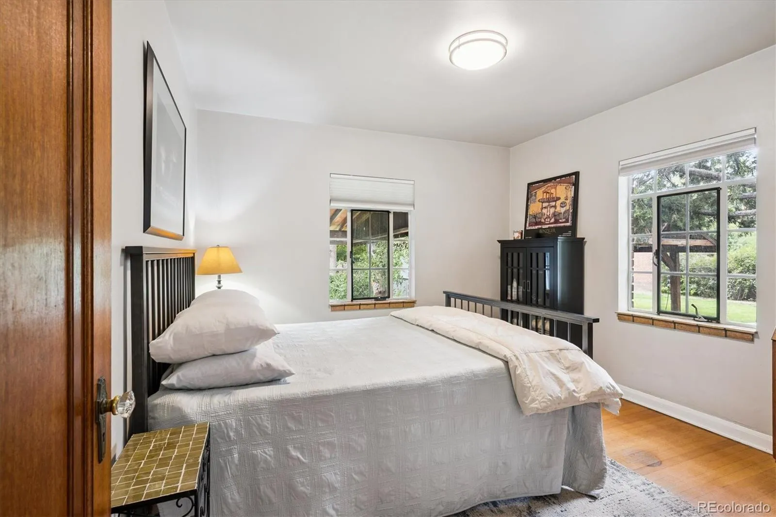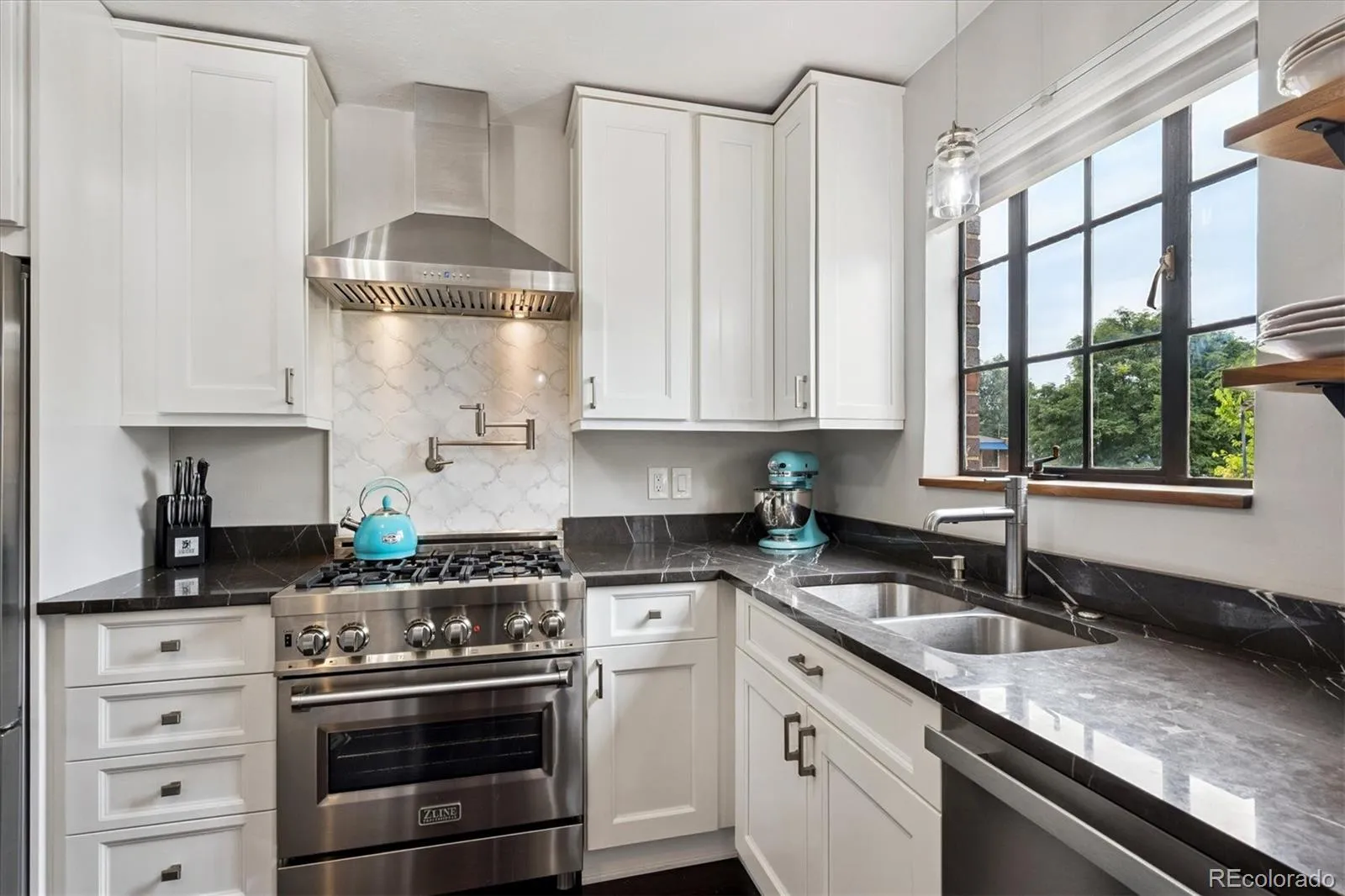 Storybook 2-story Tudor located in highly sought after Park Hill. This home has been meticulously renovated while carefully preserving original 1938 character which includes wood floors, Batchelder tiled windows sills, rod iron banister, wood doors with vintage hardware, arches and coved ceilings. The careful designed kitchen features white cabinets, stainless appliances, marble countertops and a sunny breakfast nook. The beautiful living room is filled with natural light and is great for entertaining with a cozy gas fireplace. Formal dining room features French doors that leads to the beautiful backyard with mature landscaping, garden areas and patios ideal for entertaining and Al Fresco dining. The second floor offers an elegant primary retreat with a sitting area, secondary bedroom, updated bath and a rare unfinished walk-in attic space perfect for a bedroom/ bath expansion or storage. Recently updated basement offers a lovely family with a built-in bar great for movie nights. Desired 2 car garage offers a bonus heated workshop. With easy access to City Park, the Denver Zoo, neighborhood shops, cafés, and restaurants, this home combines convenience with the timeless charm Park Hill is known for.