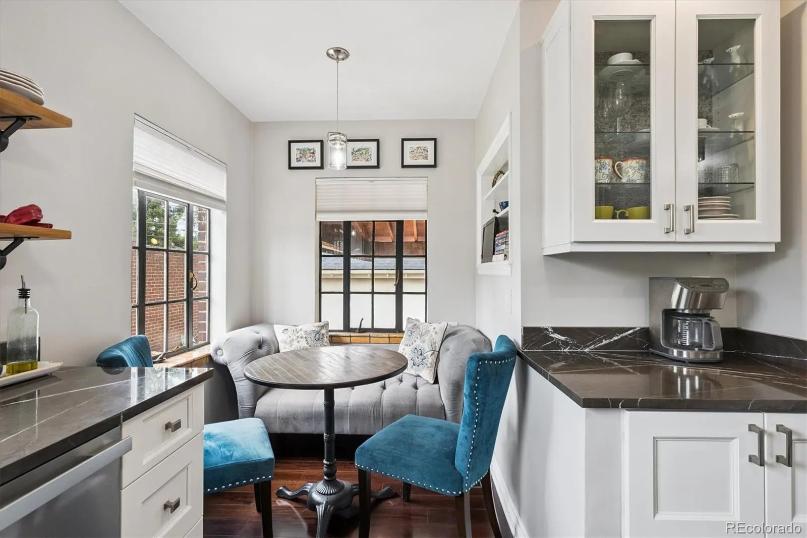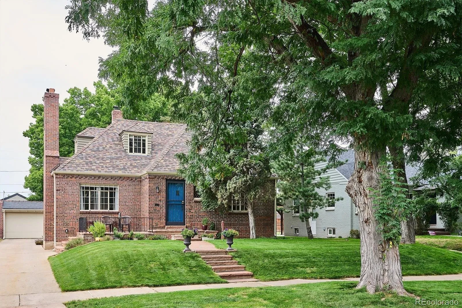 Storybook 2-story Tudor located in highly sought after Park Hill. This home has been meticulously renovated while carefully preserving original 1938 character which includes wood floors, Batchelder tiled windows sills, rod iron banister, wood doors with vintage hardware, arches and coved ceilings. The careful designed kitchen features white cabinets, stainless appliances, marble countertops and a sunny breakfast nook. The beautiful living room is filled with natural light and is great for entertaining with a cozy gas fireplace. Formal dining room features French doors that leads to the beautiful backyard with mature landscaping, garden areas and patios ideal for entertaining and Al Fresco dining. The second floor offers an elegant primary retreat with a sitting area, secondary bedroom, updated bath and a rare unfinished walk-in attic space perfect for a bedroom/ bath expansion or storage. Recently updated basement offers a lovely family with a built-in bar great for movie nights. Desired 2 car garage offers a bonus heated workshop. With easy access to City Park, the Denver Zoo, neighborhood shops, cafés, and restaurants, this home combines convenience with the timeless charm Park Hill is known for.