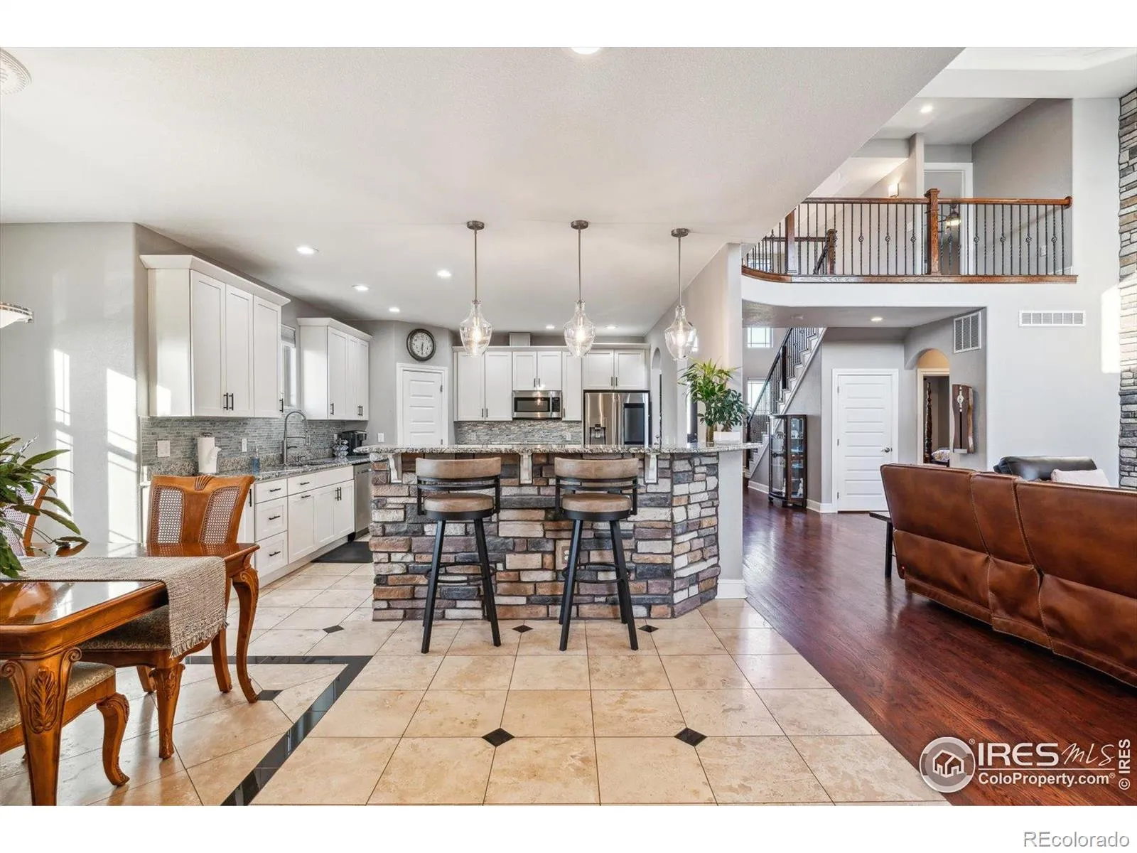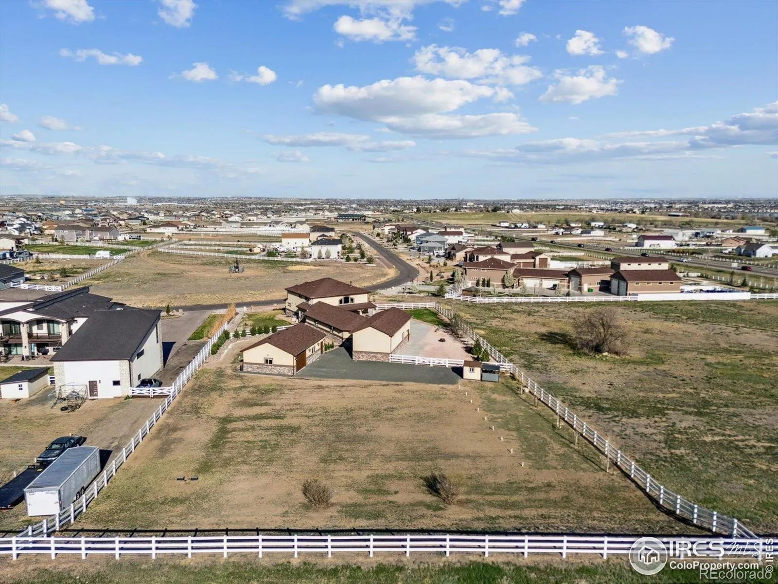 Situated on a 1.25-acre premium lot in Todd Creek Riverside, this expansive custom residence with a world-class dream garage showcases unparalleled mountain and prairie views, accompanied by luxury and tranquility at its finest. With 7 bedrooms, 2 of which are primary suites, 5 bathrooms, and a recently finished basement, over 5,000 sqft of versatile living space perfect for modern lifestyles. The great room features beautiful hardwood floors, 2story high ceilings drenched with natural light, and a show-stopping stacked stone fireplace. Enjoy entertaining guests or preparing a meal in the well-appointed eat-in kitchen, including white cabinetry, granite counters, a stainless steel appliance package, a breakfast bar, and stone tile floors. The finished lower level offers a spacious den with room for a home theatre or home gym, which complements the custom-built-in wet bar with counter seating. The main attraction to this meticulously maintained residence is the 2,387 sqft attached 4-car finished garage, including a 20×48 RV garage. The additional 1,040 sqft detached garage with epoxy flooring is an absolute dream for car enthusiasts, hobbyists, or those who need extra storage in the heart of Todd Creek. Expansive landscaping and a full property fence have been installed, including professional stonework and plantings to complement the lush yard and endless mountain views. Additional features of this meticulously maintained residence include a main-floor home office, custom ironwork, a large covered patio, and curated finishes throughout. 16101 Iola Street is ideally situated within minutes of Stouffer Reservoir, Todd Creek Golf Club, and endless dining, shopping, and entertainment in downtown Brighton. Don’t miss your chance to own a custom home with serious garage goals in one of Brighton’s most desirable areas!