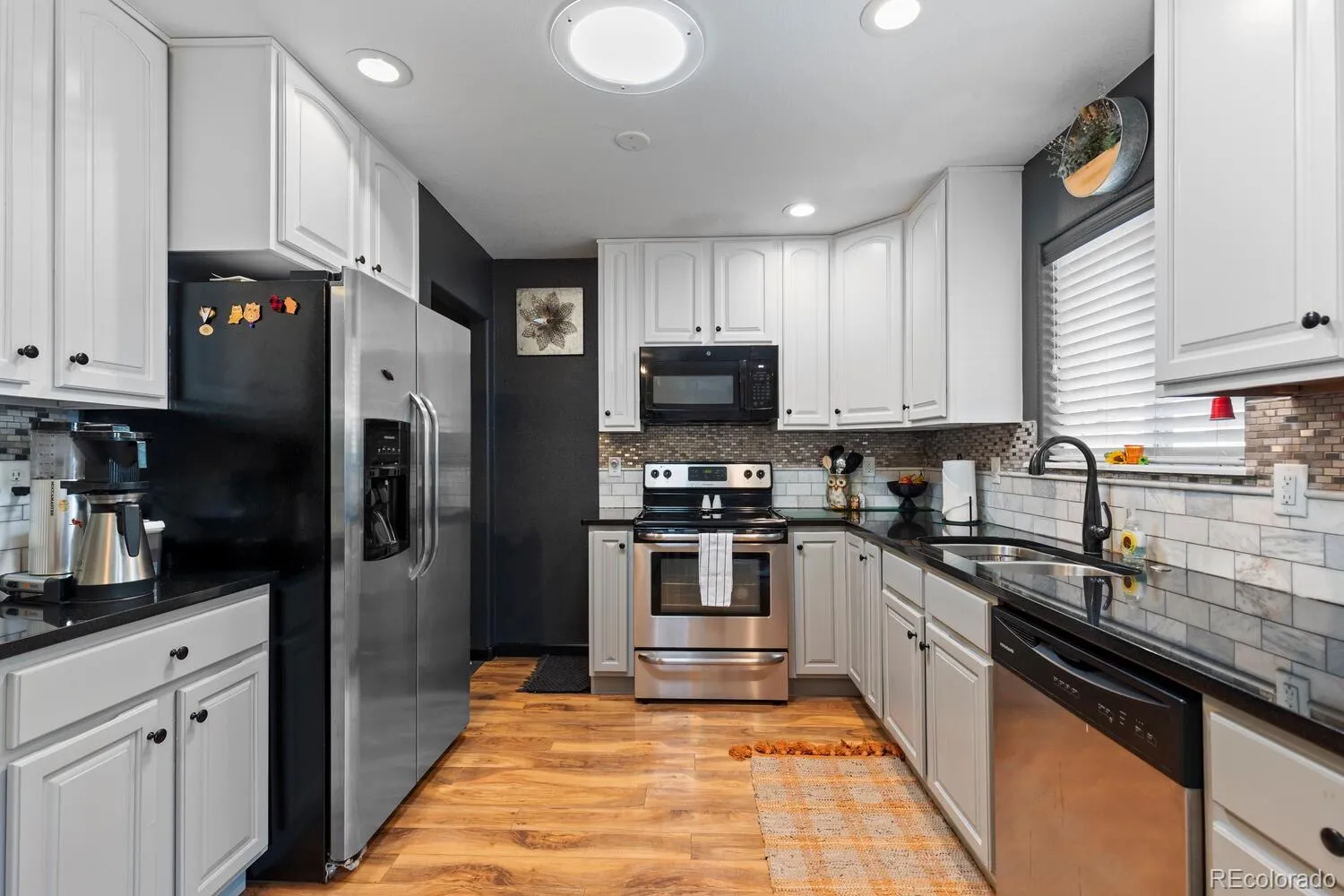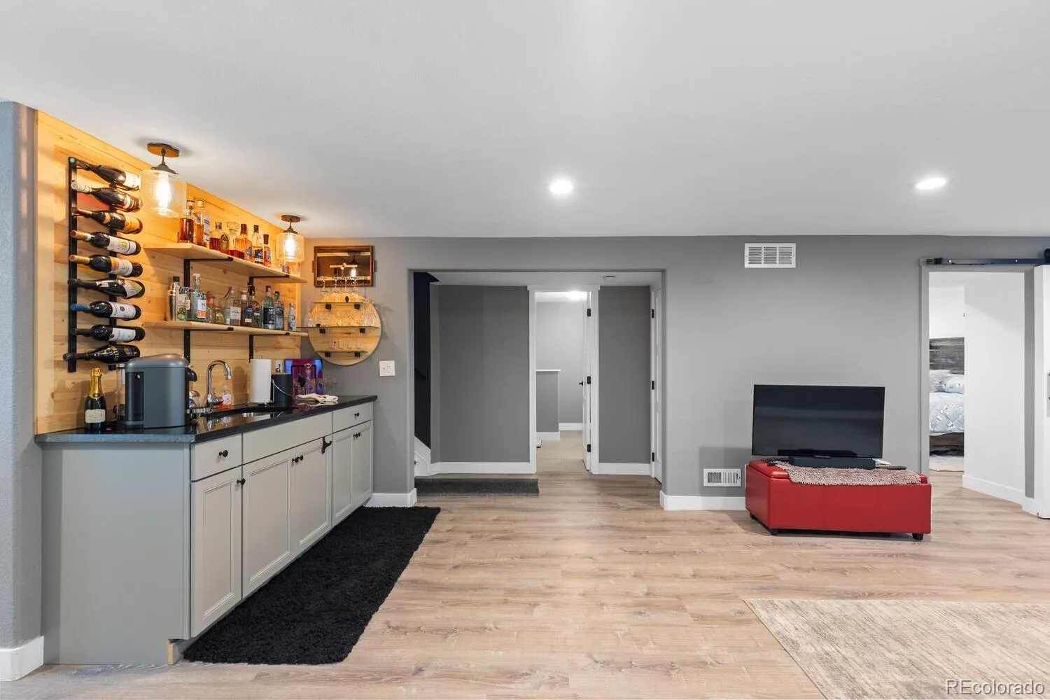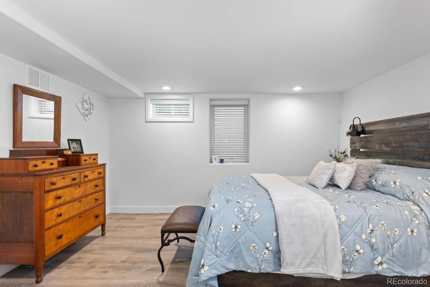 Watch the sun rise, enjoy your morning coffee and gaze at the peaceful beauty of McWilliams park from your front porch! Beautifully maintained 4 bedroom, 3 bathroom, all brick ranch, offers 2,370 SQFT of thoughtfully updated living space on a gorgeous, oversized 7,500 SQFT lot. It has a unique 4-car garage which is accompanied by an additional uncovered parking spot making this home perfect for a vehicle or hobby enthusiast. Inside, you will find a bright, sun-filled living room, an updated kitchen, and remodeled bathrooms and bedrooms. Three bedrooms are on the main floor, and one of the bedrooms has a full ensuite bathroom (can be used as the primary). The lower level features a spacious and fully renovated primary suite with a dual-vanity bath, oversized shower, and expansive walk-in closet. It could also be an in-law or college kid suite. Additional highlights include a large laundry room, inviting bar and family room. The basement also has a unique walk-in Sportsman’s Room (or craft/storage room) with a secure vault door. French doors off of the kitchen open to a maintenance-free concrete deck and absolutely beautiful West-facing backyard, perfect for meals outside and entertaining. This home is uniquely situated at the end of a non-through street (see photos). Make the most of the indoor/outdoor living and Colorado’s 4 seasons. Located near the University of Denver, walking distance to gorgeous Observatory Park, and close to I-25, this home provides quick access to Cherry Creek, downtown, HWY 85 (your access to mountain getaways) and local districts with great food and boutique shopping. This is your opportunity to step into a truly turn-key home in the highly desirable University Park neighborhood with multi-million dollar homes on your street.