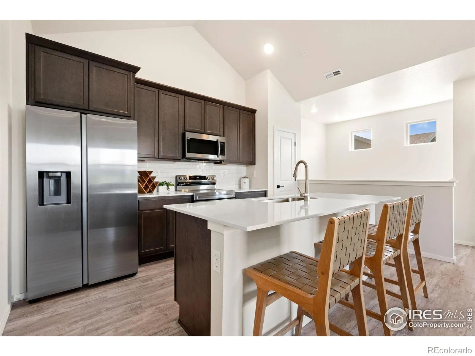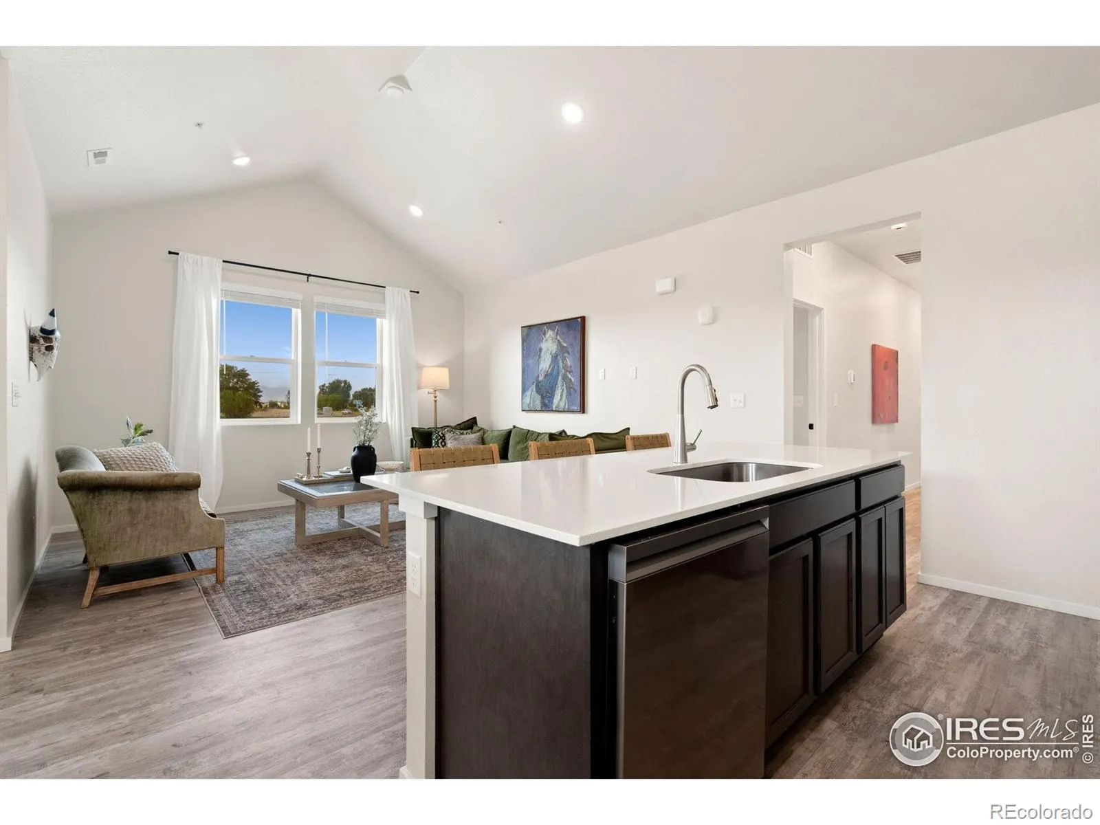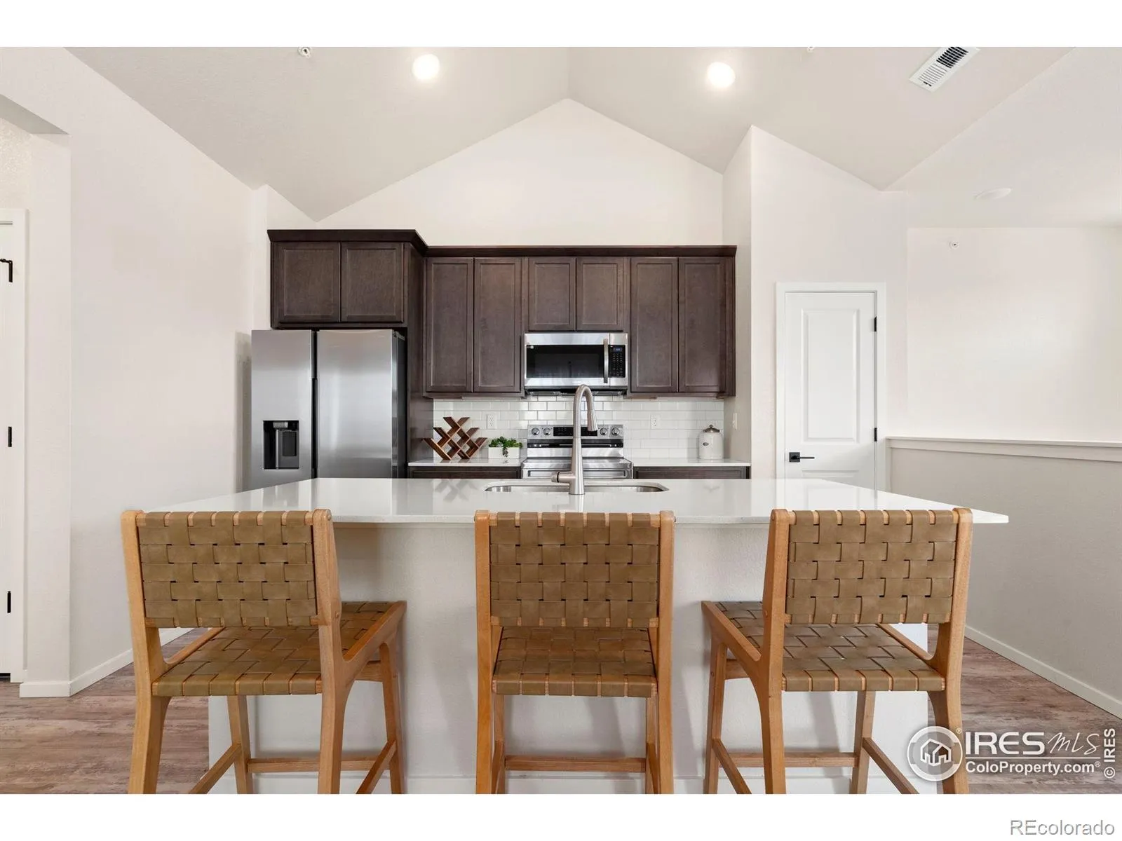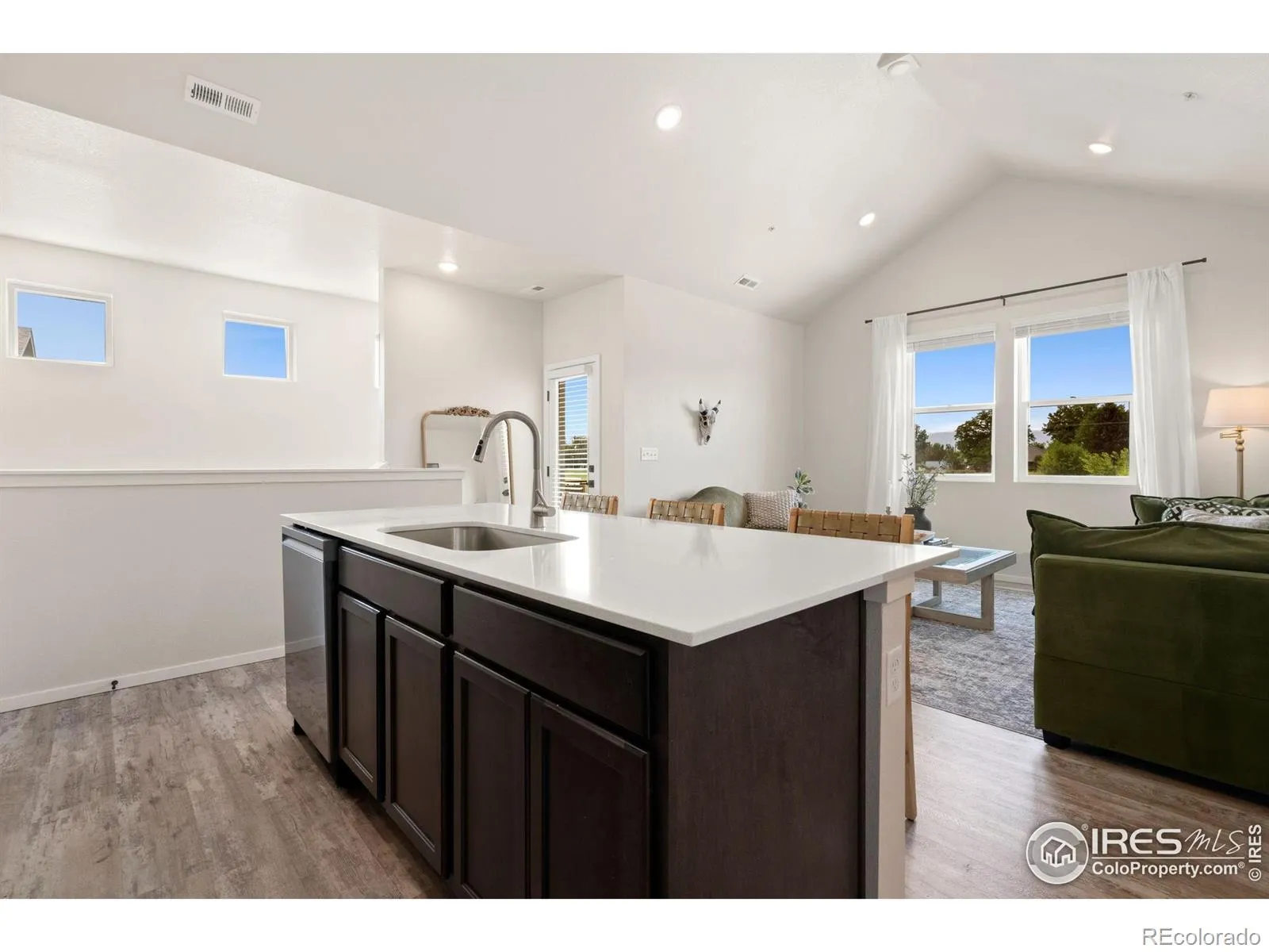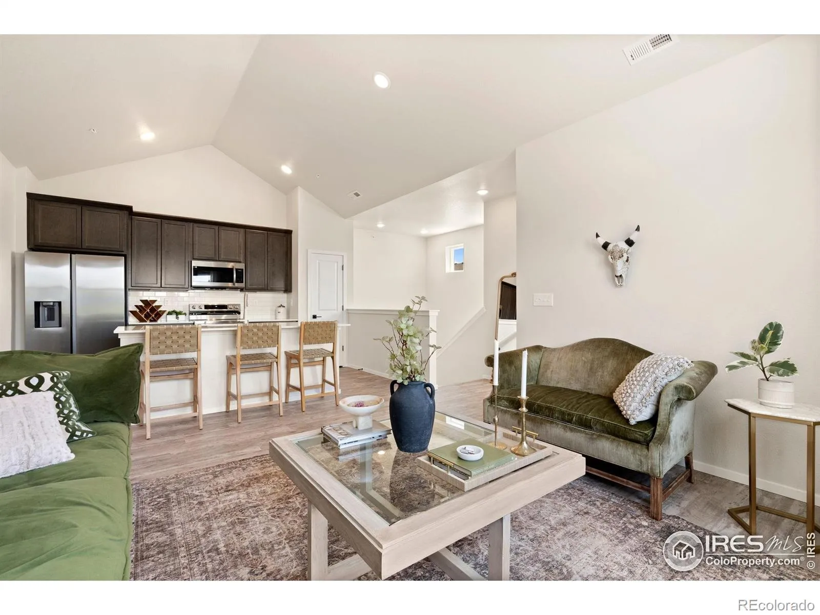 Celebrate Colorado living in the heart of the coveted Mosaic community, where the freedom of maintenance-free living meets exceptional modern design. With no metro tax and featuring two community pools as well as a future city park, this like-new condo embodies the perfect retreat. As you step inside, you’re greeted by luxury vinyl plank flooring and soaring vaulted ceilings that create an open and inviting atmosphere. The gourmet kitchen, boasting quartz countertops, stainless appliances, spacious island, and dedicated pantry, allows you to channel your inner chef while entertaining family and friends. With two spacious bedrooms and two well-appointed bathrooms, it is ideal for privacy and relaxation. The attached garage with secure entry adds an extra layer of convenience and safety, making coming and going a breeze. Step outside onto your private patio, where westerly views beckon you to unwind amid Colorado’s natural beauty. With nearby parks, natural areas, breweries, and Old Town Fort Collins, recreational and entertainment options abound. This stunning condo provides a perfect canvas for your active lifestyle. Get busy living in this chic sanctuary that promises not just a home, but a vibrant community where every day feels like a getaway. Welcome Home!
