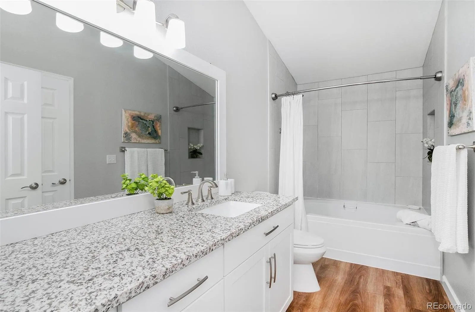 Nestled in the Steeplechase community along the South Platte river near Old Town Littleton, this condo residence lives like a townhouse and has convenient access to everything! Fully refreshed and move in ready with recent kitchen and bath renovations, new carpets and paint throughout. An open great room with vaulted ceilings and skylights creates a bright and inviting atmosphere that flows seamlessly into the roomy kitchen. The main level is completed with a spacious primary bedroom and in unit laundry closet with full size washer and dryer. The versatile loft can serve as a home office, guest area, or second bedroom. The covered front balcony is perfect for sipping morning coffee. Secure parking in an oversized attached garage with direct access to the unit. This location absolutely cannot be beat! Everything you need is less than 10 minutes away shopping, grocery stores, restaurants and bars, the Platte River trail, Littleton golf and tennis club, Littleton Downtown light rail station, Hudson Gardens, Arapahoe Community College, Aspen Grove, River Point and Downtown Englewood. Commuting is a breeze with quick and easy access to Light Rail and major road corridors along S Santa Fe Dr. This is an excellent opportunity in the heart of Littleton.