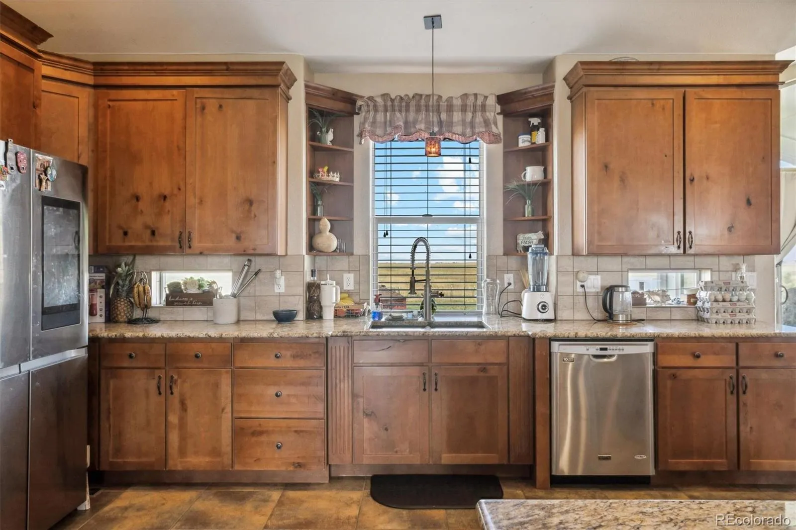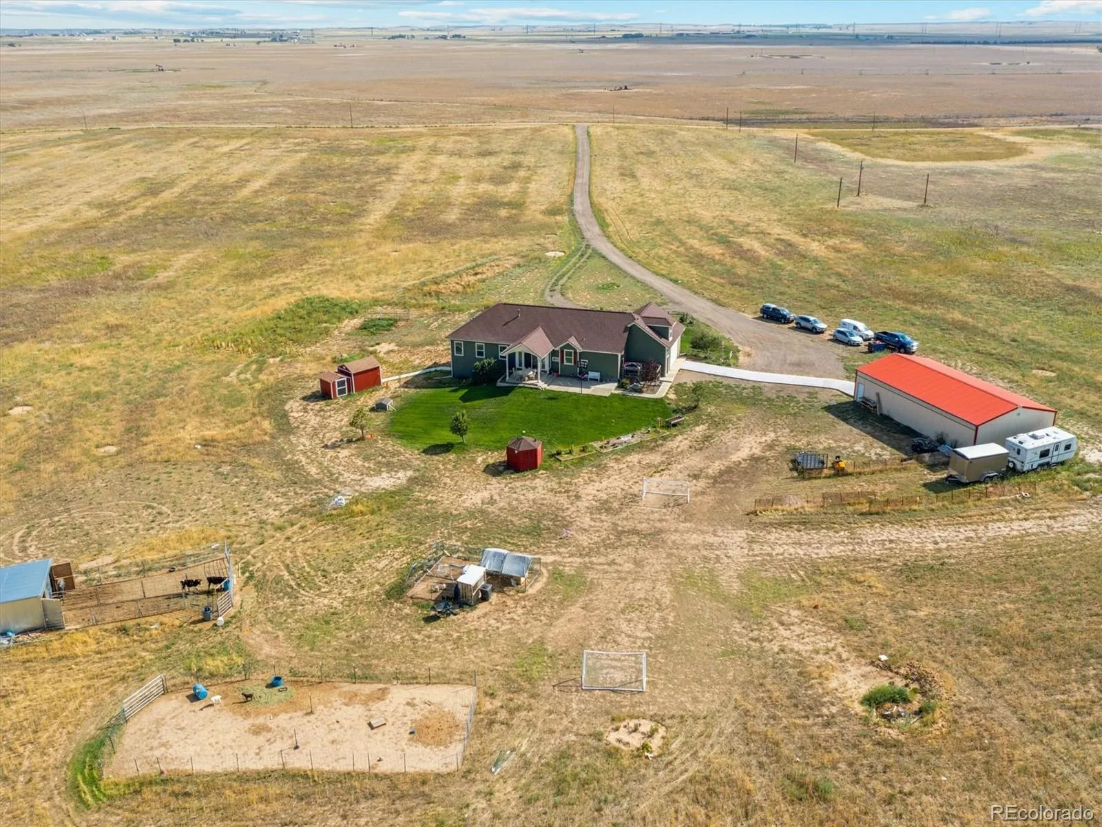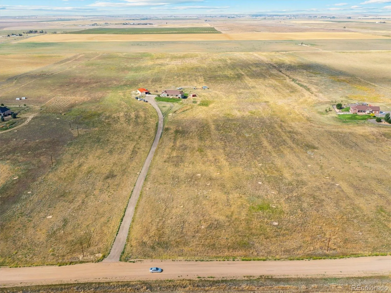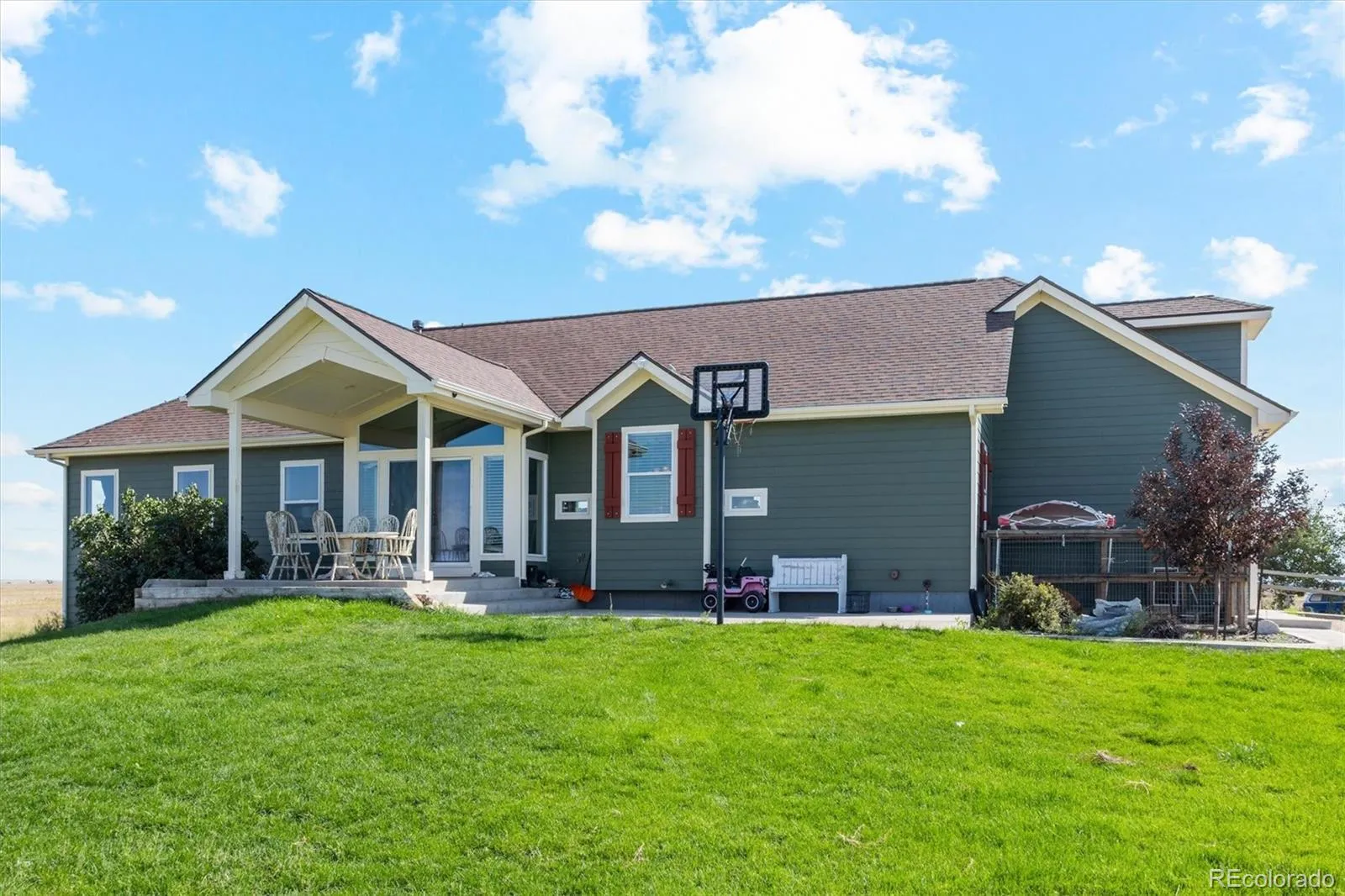 This custom-built country home sits on 35 scenic acres and offers the perfect combination of space, comfort, and breathtaking views. Featuring 7 bedrooms and 4 bathrooms, the open floor plan is filled with natural light from large windows throughout.The main level includes a spacious living room with a propane fireplace and beautiful wood flooring, which flows into a thoughtfully designed kitchen. The kitchen features abundant cabinetry, an island with breakfast bar seating, a pantry, and an adjacent dining area. Sliding glass doors lead from the dining room to a covered back porch, ideal for relaxing or entertaining. The main-level primary suite offers vaulted ceilings, large windows, and a luxurious 5-piece ensuite. A second bedroom on this level has access to a full bath, providing a convenient guest space. Above the garage, a bonus room includes a third bedroom and a three-quarter bath, perfect for older children or guests seeking extra privacy.The fully finished walkout basement adds four additional bedrooms and one full bathroom, offering plenty of room for family, guests, or additional living space.Additional features include an attached two-car garage, no HOA, and a Cleary outbuilding ideal for storing a camper, recreational equipment, or tools.Enjoy peaceful country living with wide open views and convenient access to schools, grocery stores, banks, salons, restaurants, and more. This property also provides an easy commute to the metro area and Denver International Airport