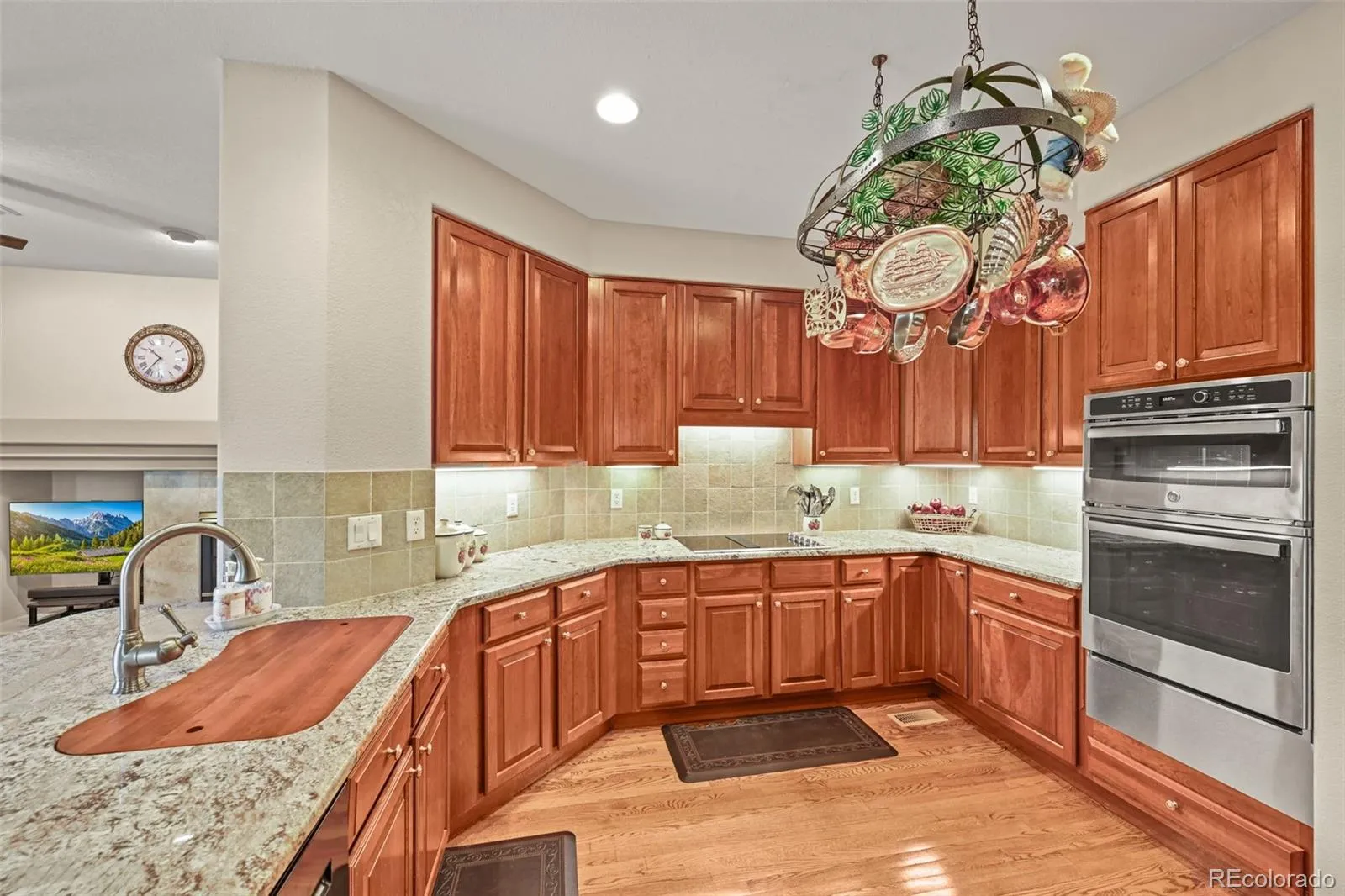 From the moment you arrive, the home’s inviting curb appeal, vibrant landscaping, and elegant stucco-and-stone exterior set the tone. Inside, the main level flows seamlessly with warm hardwood floors, vaulted ceilings, and expansive windows framing serene views of the pines and meadows beyond. Gather in the living room around the cozy fireplace, or host with ease in the formal dining room and chef’s kitchen featuring granite counters, stainless appliances, and a charming breakfast bar.