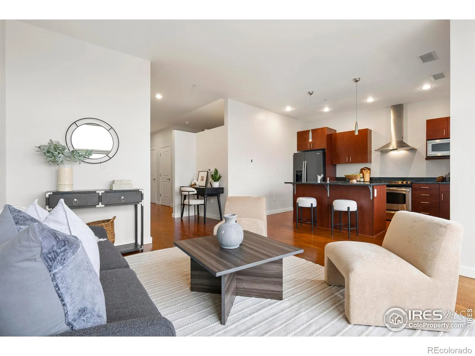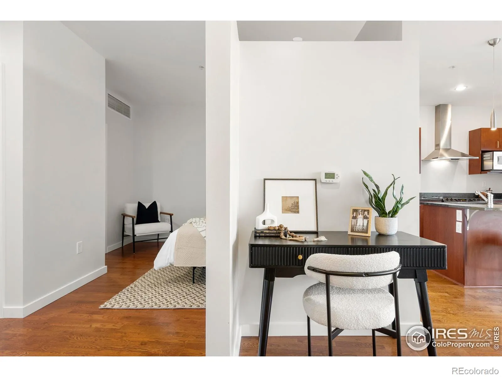 This modern home offers the ultimate maintenance-free, lock-and-leave lifestyle with effortless access to the best of Central Park and Denver. The floor-to-ceiling windows and balcony provide a beautiful view of the blue skies of Colorado. The sliver of mountain view is just enough to remind you that the fresh mountain air awaits. The open-concept layout is spacious and functional, featuring a large bedroom with generous closet space. The kitchen boasts stainless steel appliances, a sleek drown draft hood, a large eat-in island, and ample cabinetry. The newly updated bathroom features quartz counters, a tub surround, a custom mirror, and crisp subway tile that beautifully frames the entire space. The brand new furnace will be installed before closing, making this home move-in ready. Secure underground, deeded parking (with a storage unit) in a temperature-controlled garage adds convenience, while ample free on-street parking makes it easy for guests to visit. The Butterfly MX entry system is a cloud-based access control system with video intercoms and a mobile app, enhancing security and convenience for residents and visitors through features like remote access, touchless entry, and visitor management Located at the heart of Central Park in the 29th Avenue Town Center, you’ll enjoy easy access to wonderful shops, restaurants, grocers, parks, pools, and the Light Rail. It would be easy to live car free at this unbeatable location!