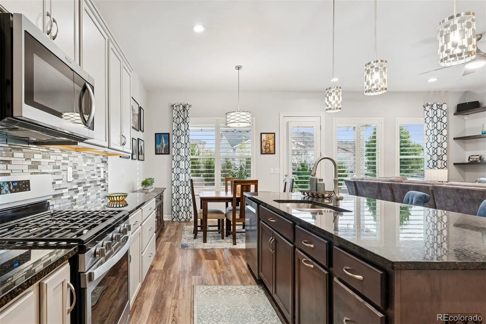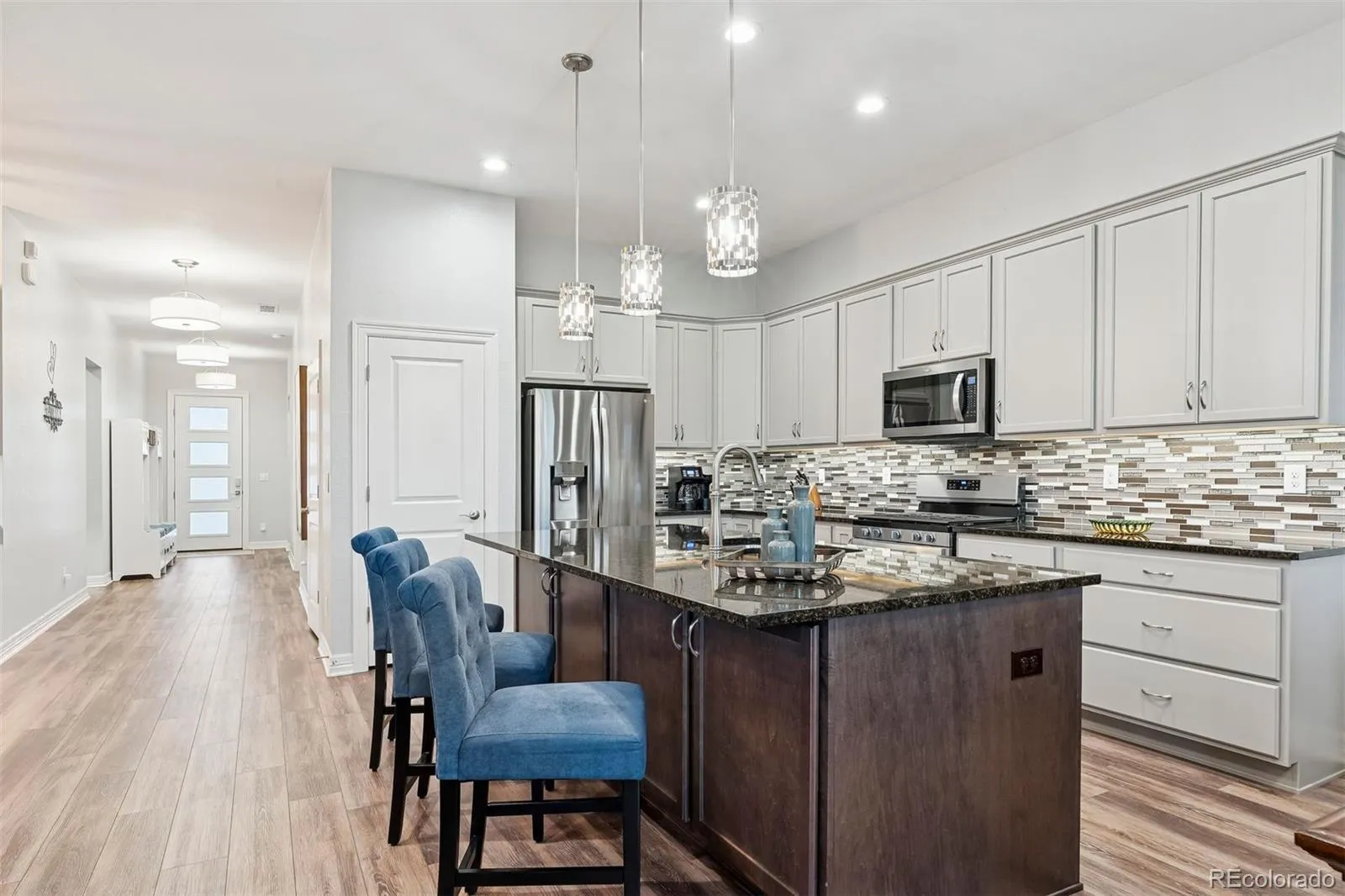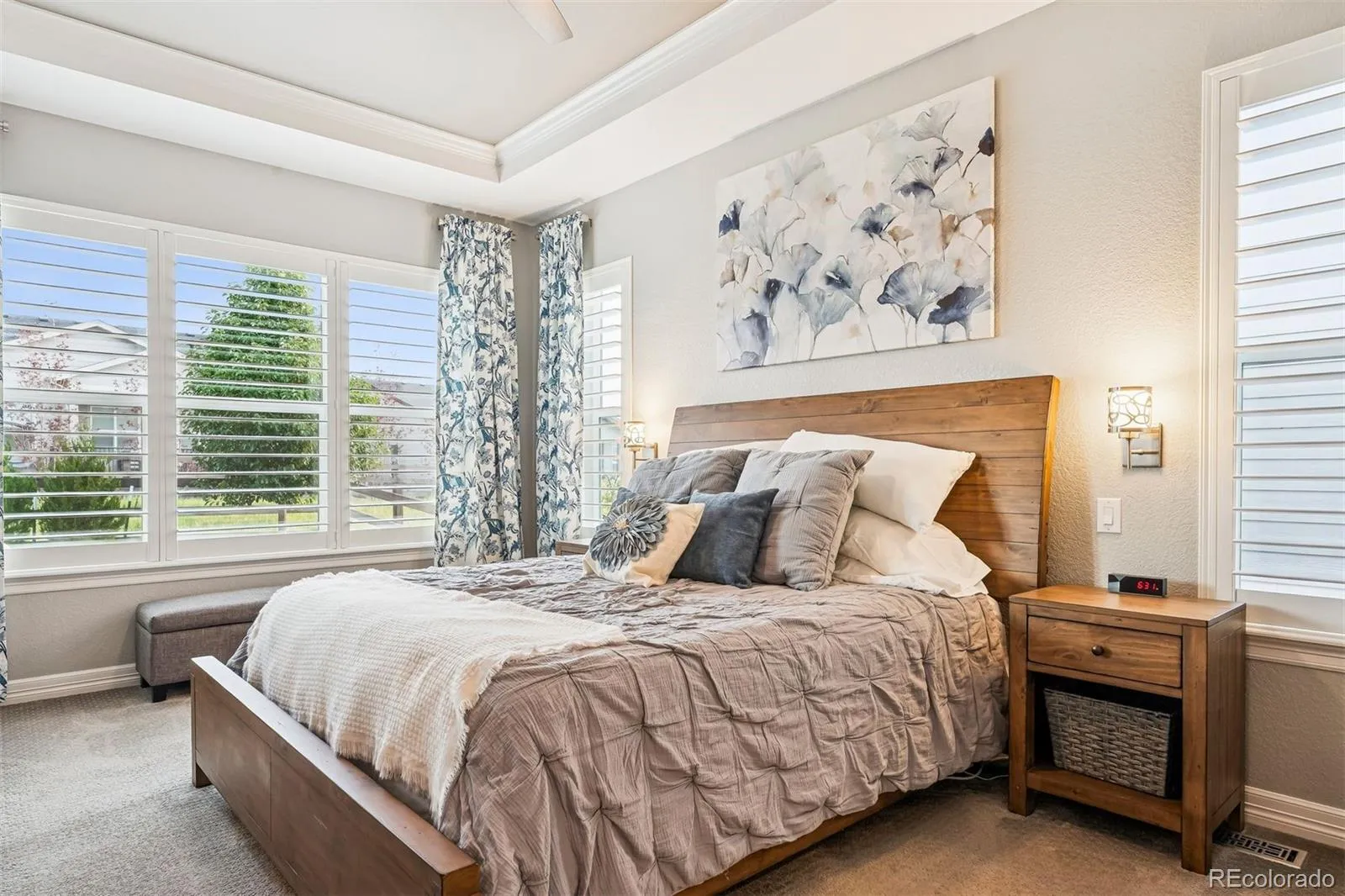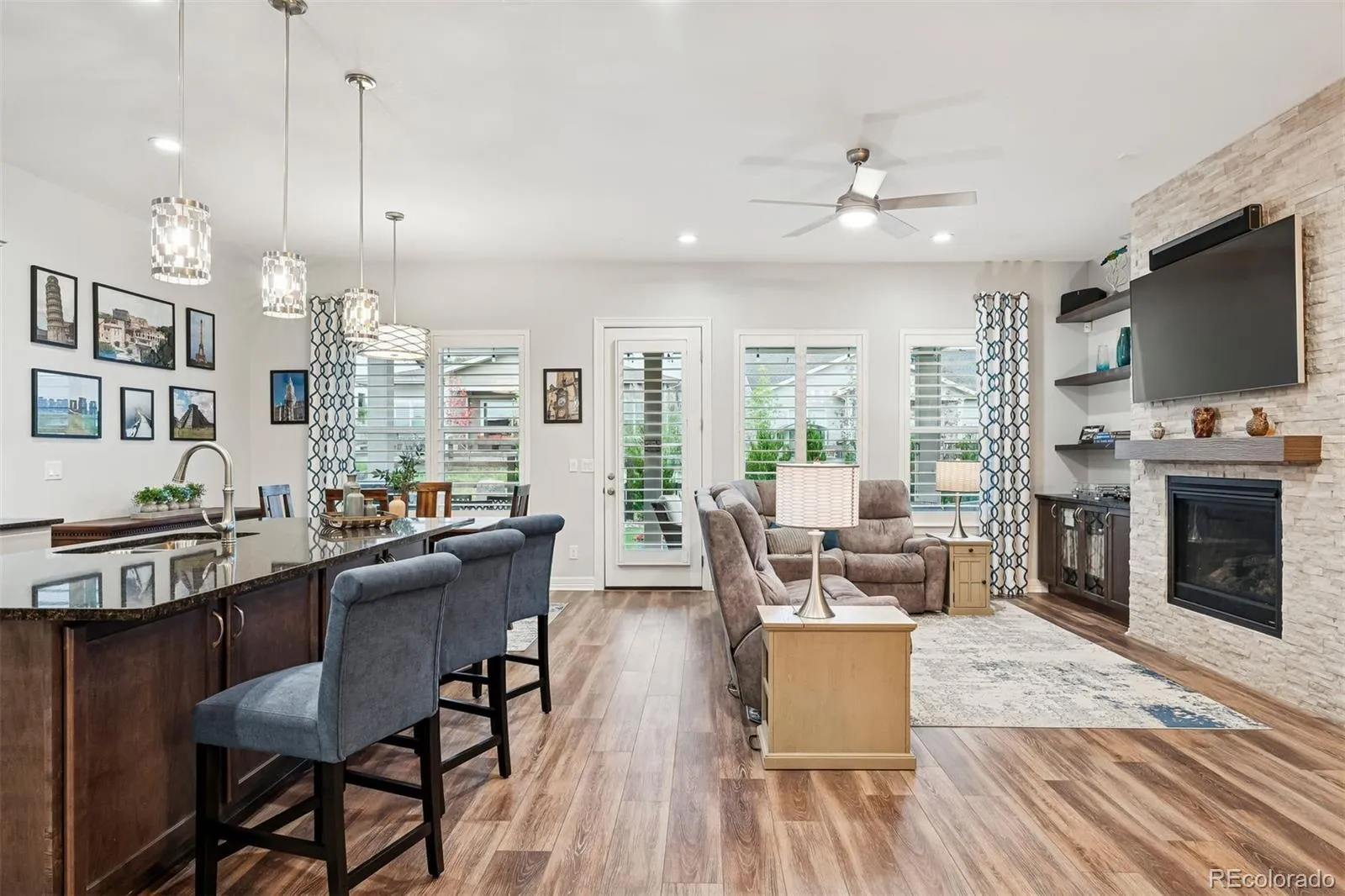 Welcome to the Regency neighborhood of Montaine, a vibrant 55+ community in Castle Rock, recently named one of the nation’s top cities for quality of life. Discover refined living in this Toll Brothers Boyd floorplan, offering 5 bedrooms, 3 bathrooms, and 3,707 square feet of beautifully designed space. This 2021-built home is a rare find. Entertainment at its best. The fully finished basement is an entertainer’s dream, featuring a stylish mini kitchen/bar that makes hosting effortless. Step into your own state-of-the-art home theater, complete with projection video and immersive surround sound system that transforms every night into a movie night. Thoughtful upgrades and finishes throughout. With over $200,000 in post-construction upgrades, this home radiates luxury. The primary suite closet system adds smart organization, while custom built-in shelving and stonework framing the fireplace elevate the living room. The epoxy-finished two-car garage keeps things tidy, while the gorgeous custom bar brings warmth and character to gatherings. Designed for easy living. Low-maintenance landscaping makes this the ideal lock-and-leave retreat for snowbirds and travelers. A fenced yard provides peace of mind for your pets, while the greenbelt backdrop ensures both privacy and tranquility. After a day exploring nearby trails like Plum Creek or Castlewood Canyon State Park, relax and rejuvenate in your soaking tub in the primary retreat. Lifestyle and location at it’s best. Regency at Montaine is more than a neighborhood—it’s a lifestyle. Residents enjoy resort-style amenities including a clubhouse with full-time event coordinator, pool, hot tub, fitness center, tennis and pickleball courts, and miles of trails. With stunning mountain views and easy access to I-25, commuting or traveling is a breeze.