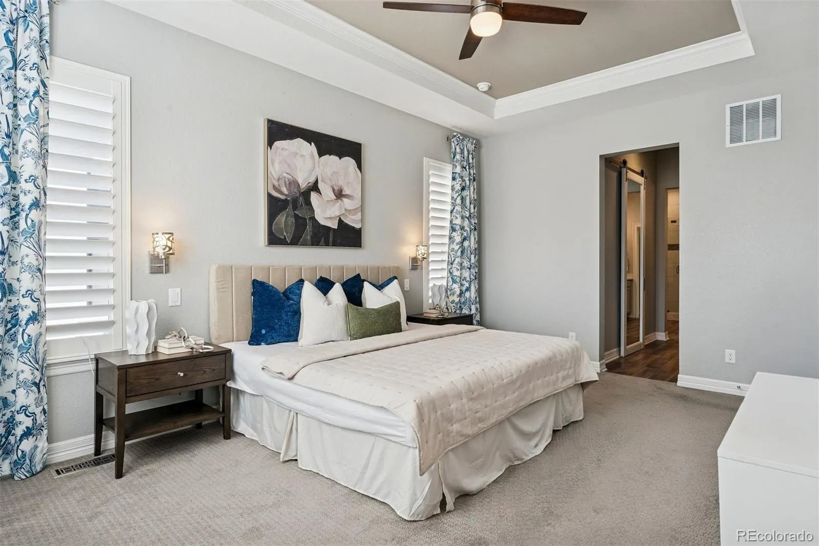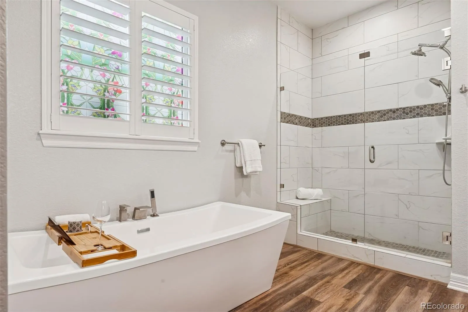 Welcome to the Regency neighborhood of Montaine, a vibrant 55+ community in Castle Rock, recently named one of the nation’s top cities for quality of life. Discover refined living in this Toll Brothers Boyd floorplan, offering 5 bedrooms, 3 bathrooms, and 3,707 square feet of beautifully designed space. This 2021-built home is a rare find. Entertainment at its best. The fully finished basement is an entertainer’s dream, featuring a stylish mini kitchen/bar that makes hosting effortless. Step into your own state-of-the-art home theater, complete with projection video and immersive surround sound system that transforms every night into a movie night. Thoughtful upgrades and finishes throughout. With over $200,000 in post-construction upgrades, this home radiates luxury. The primary suite closet system adds smart organization, while custom built-in shelving and stonework framing the fireplace elevate the living room. The epoxy-finished two-car garage keeps things tidy, while the gorgeous custom bar brings warmth and character to gatherings. Designed for easy living. Low-maintenance landscaping makes this the ideal lock-and-leave retreat for snowbirds and travelers. A fenced yard provides peace of mind for your pets, while the greenbelt backdrop ensures both privacy and tranquility. After a day exploring nearby trails like Plum Creek or Castlewood Canyon State Park, relax and rejuvenate in your soaking tub in the primary retreat. Lifestyle and location at it’s best. Regency at Montaine is more than a neighborhood—it’s a lifestyle. Residents enjoy resort-style amenities including a clubhouse with full-time event coordinator, pool, hot tub, fitness center, tennis and pickleball courts, and miles of trails. With stunning mountain views and easy access to I-25, commuting or traveling is a breeze.