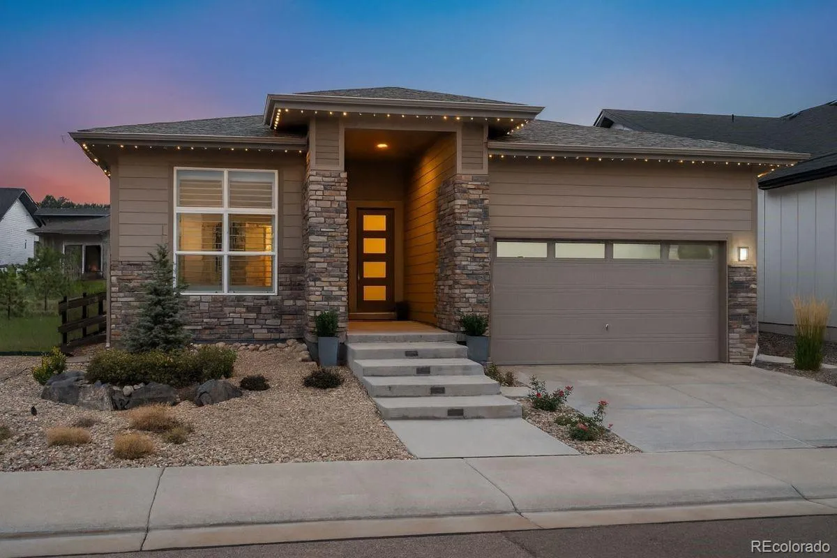 Welcome to the Regency neighborhood of Montaine, a vibrant 55+ community in Castle Rock, recently named one of the nation’s top cities for quality of life. Discover refined living in this Toll Brothers Boyd floorplan, offering 5 bedrooms, 3 bathrooms, and 3,707 square feet of beautifully designed space. This 2021-built home is a rare find. Entertainment at its best. The fully finished basement is an entertainer’s dream, featuring a stylish mini kitchen/bar that makes hosting effortless. Step into your own state-of-the-art home theater, complete with projection video and immersive surround sound system that transforms every night into a movie night. Thoughtful upgrades and finishes throughout. With over $200,000 in post-construction upgrades, this home radiates luxury. The primary suite closet system adds smart organization, while custom built-in shelving and stonework framing the fireplace elevate the living room. The epoxy-finished two-car garage keeps things tidy, while the gorgeous custom bar brings warmth and character to gatherings. Designed for easy living. Low-maintenance landscaping makes this the ideal lock-and-leave retreat for snowbirds and travelers. A fenced yard provides peace of mind for your pets, while the greenbelt backdrop ensures both privacy and tranquility. After a day exploring nearby trails like Plum Creek or Castlewood Canyon State Park, relax and rejuvenate in your soaking tub in the primary retreat. Lifestyle and location at it’s best. Regency at Montaine is more than a neighborhood—it’s a lifestyle. Residents enjoy resort-style amenities including a clubhouse with full-time event coordinator, pool, hot tub, fitness center, tennis and pickleball courts, and miles of trails. With stunning mountain views and easy access to I-25, commuting or traveling is a breeze.