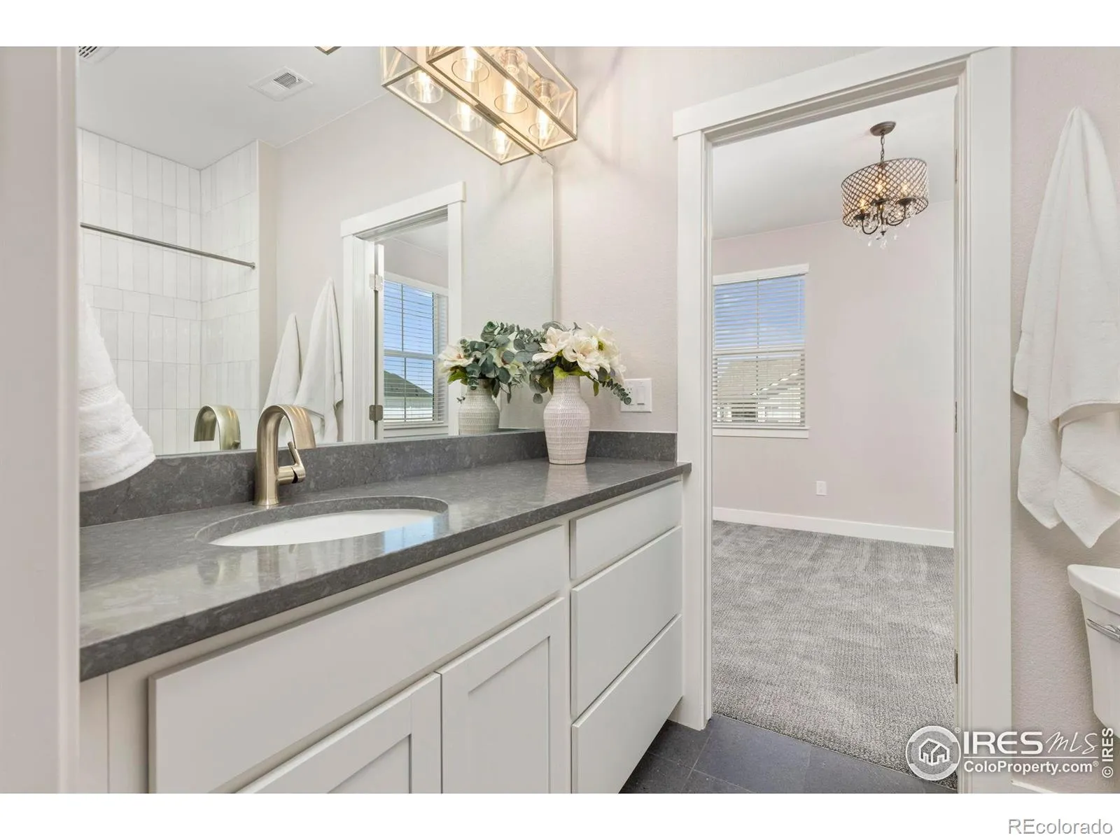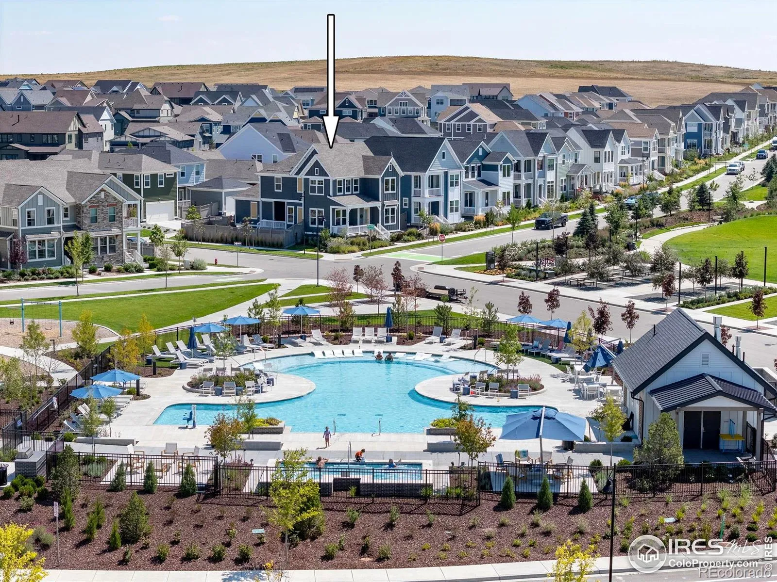 By far the best lot in Westerly, this stunning home offers unobstructed mountain views from nearly every window, the front porch, and backyard. The gourmet kitchen features an extended wrap-around backsplash, large island, and premium GE Cafe appliances. A dramatic great room boasts custom floor-to-ceiling board and batten, while light LVP floors, plantation shutters, and a main-level office with inspiring views complete the first floor. Enjoy seamless indoor-outdoor living with a large covered patio, designer ceiling detail, and low-maintenance turf yard-perfect for entertaining or sunsets. Upstairs, find three bedrooms with built-in closets, a bright loft, and laundry with custom wallpaper and commercial-size washer/dryer. The primary suite delivers epic mountain views. The unfinished basement awaits your imagination. Corner lot across from the park and steps to the pool/clubhouse, trails, and year-round community events led by a full-time activity director.