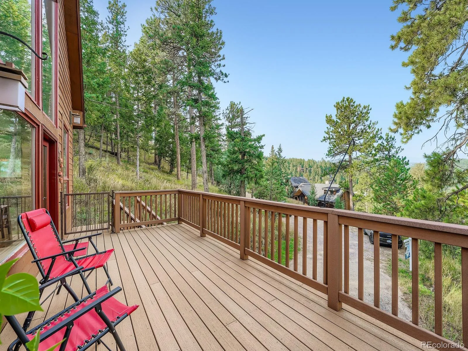 PRICE IMPROVEMENT!! Mountain retreat in Independence Heights! 3 bed / 3 bath home on 1.39 acres with vaulted ceilings, river-rock fireplace, and wall of windows framing sweeping views of Mt. Blue Sky and Evergreen’s valleys. This home is waiting for your remodeling ideas, though all bathrooms have been updated. Primary Suite in the loft area has tons of space for exercise equipment, desk/office area, or nursery. Primary also has a large walk-in closet and beautifully redone bathroom. Secondary bedroom and bathroom are just off the dining room. 2nd Primary or “Studio” apartment on lower level is a lock-off and has kitchenette, remodeled bathroom, storage and garage access. Private decks, open floor plan, and 2-car garage — just minutes from town yet tucked away on a quiet cul-de-sac. See this beautiful home and setting today!