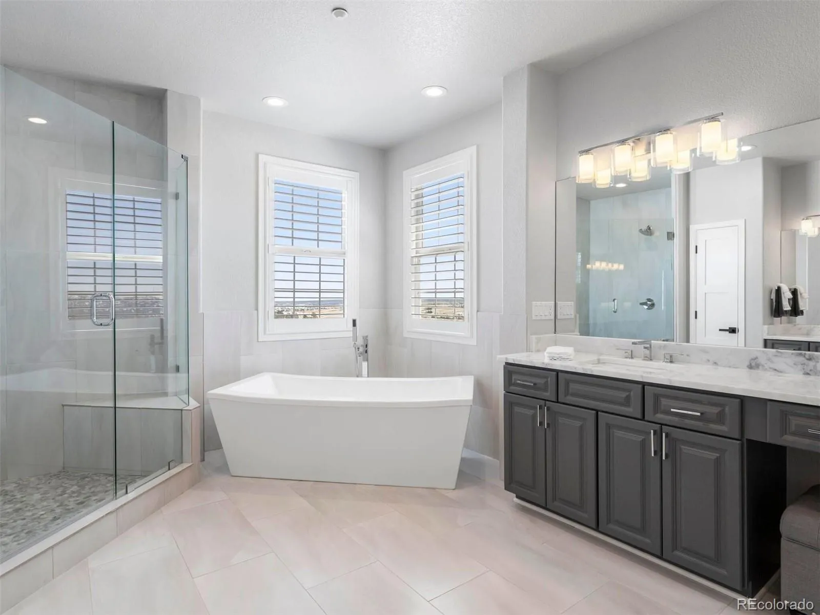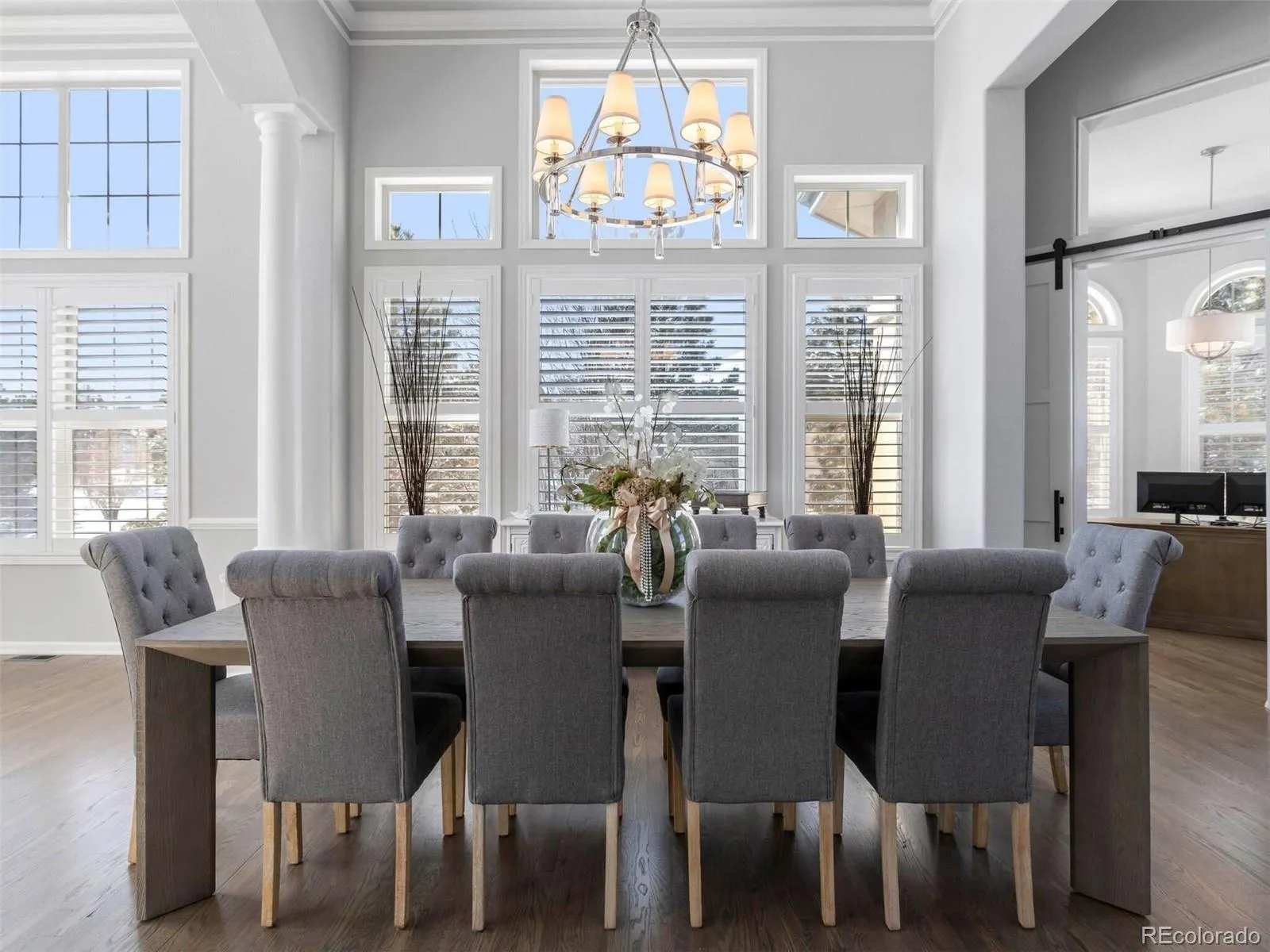 Offering both privacy and views, this 6 bed | 6 bath mountain modern home has been FULLY updated down to the door hardware, creating a rare opportunity to move into the gated Village at Castle Pines community right away. The dramatic two-story foyer welcomes you into a sunlight-filled residence designed for seamless indoor | outdoor living. The coveted chef’s kitchen features Quartzite countertops, custom tile backsplash, and a breakfast nook with built-in coffee bar, opening to an expansive deck with breathtaking mountain vistas, unforgettable sunrises, and Castle Rock’s twinkling night lights. Adjacent to the kitchen, the airy family room is anchored by a stone fireplace and a window wall framing picture-perfect views, with a nearby flex room ideal for play, work, or hobbies. Restoration Hardware-inspired living and dining areas set the stage for memorable gatherings, while a quiet front office, guest powder bath, laundry, and three-car garage complete the main level. Upstairs, the serene owner’s suite offers a sitting area, gas fireplace, and a spa-inspired primary bath with spacious walk-in closet. Three secondary bedrooms, an upstairs loft, and two refreshed bathrooms complete the upper floor. The finished lower level is designed for entertainment and gathering friends and family alike with a media lounge, wet bar, fitness/guest room, steam shower bath, additional powder room, and theater with walk-out access to the backyard. The lower-level exterior boasts a flat back yard, sunrise views, and sports court. Located just 30 seconds from gate 5 which is close to schools and highway access, a 5-minute walk to The Summit Club pool, park, and playing fields, and a 2-minute drive to the recently renovated and expanded Country Club at Castle Pines, this home’s location can’t be beat. With premium features including a structural steel subfloor, this residence is a perfect balance of modern features and livability in one of Colorado’s most sought after communities.