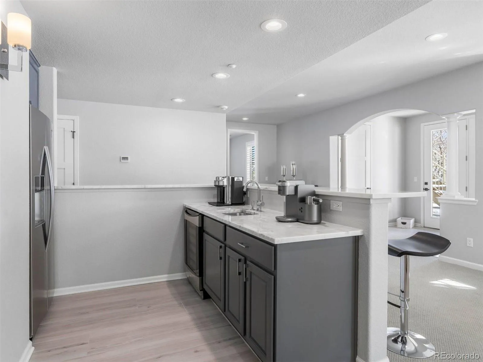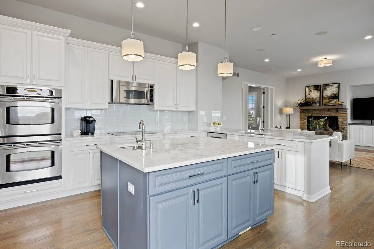 Offering both privacy and views, this 6 bed | 6 bath mountain modern home has been FULLY updated down to the door hardware, creating a rare opportunity to move into the gated Village at Castle Pines community right away. The dramatic two-story foyer welcomes you into a sunlight-filled residence designed for seamless indoor | outdoor living. The coveted chef’s kitchen features Quartzite countertops, custom tile backsplash, and a breakfast nook with built-in coffee bar, opening to an expansive deck with breathtaking mountain vistas, unforgettable sunrises, and Castle Rock’s twinkling night lights. Adjacent to the kitchen, the airy family room is anchored by a stone fireplace and a window wall framing picture-perfect views, with a nearby flex room ideal for play, work, or hobbies. Restoration Hardware-inspired living and dining areas set the stage for memorable gatherings, while a quiet front office, guest powder bath, laundry, and three-car garage complete the main level. Upstairs, the serene owner’s suite offers a sitting area, gas fireplace, and a spa-inspired primary bath with spacious walk-in closet. Three secondary bedrooms, an upstairs loft, and two refreshed bathrooms complete the upper floor. The finished lower level is designed for entertainment and gathering friends and family alike with a media lounge, wet bar, fitness/guest room, steam shower bath, additional powder room, and theater with walk-out access to the backyard. The lower-level exterior boasts a flat back yard, sunrise views, and sports court. Located just 30 seconds from gate 5 which is close to schools and highway access, a 5-minute walk to The Summit Club pool, park, and playing fields, and a 2-minute drive to the recently renovated and expanded Country Club at Castle Pines, this home’s location can’t be beat. With premium features including a structural steel subfloor, this residence is a perfect balance of modern features and livability in one of Colorado’s most sought after communities.