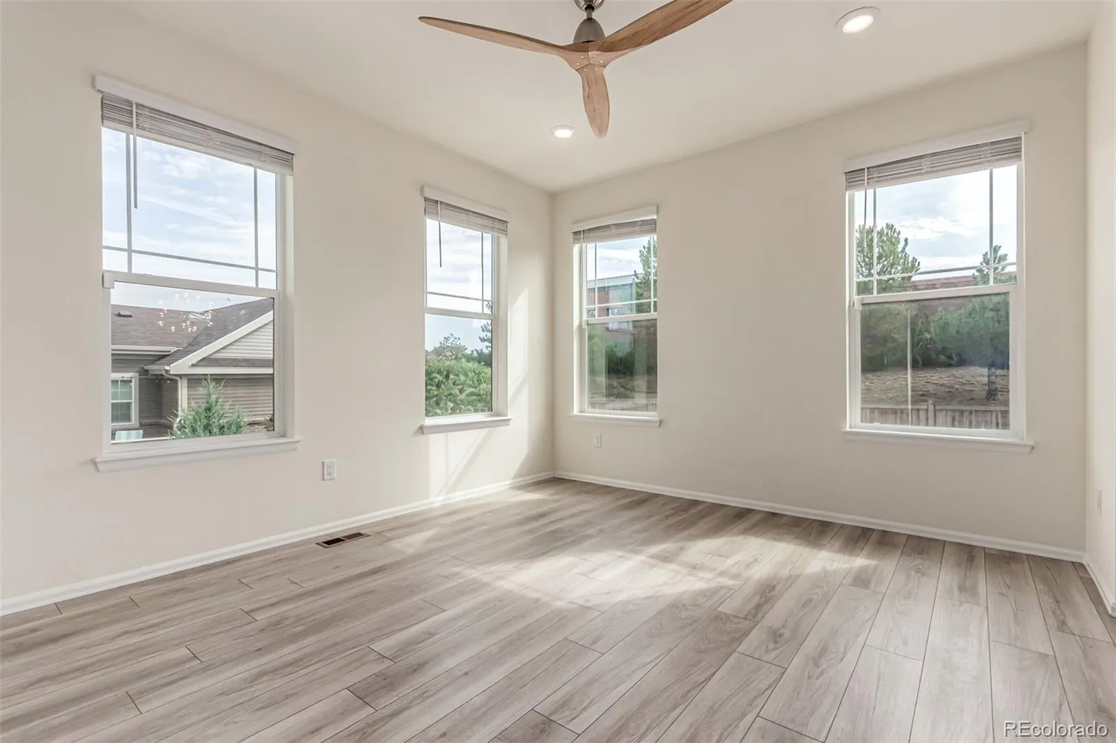 Welcome to your new Colorado home! Perfectly placed in a thriving new community, this beautifully maintained two-story paired home blends modern comfort with everyday convenience. Inside, you’ll find 3 spacious bedrooms upstairs — including a guest room with gorgeous mountain views — plus 2 full bathrooms. The main level features an open, light-filled layout designed for both relaxing and entertaining. A private office/den is ideal for remote work or quiet study, while the stylish kitchen boasts granite counters and a seamless flow into the dining and living spaces. Thoughtful upgrades make daily living easy, from the smart front door system with Ring doorbell and keyless entry, to leased solar panels for energy efficiency, an ADT security system, and sprinkler controls conveniently located inside the garage. The unfinished basement offers endless possibilities — create the rec room, gym, or guest suite you’ve been dreaming of! Step outside and enjoy walking to nearby trails and parks, where mountain views make every stroll unforgettable. And when it comes to location, it doesn’t get better: you’re essentially within 30 minutes of DIA, downtown Denver, and Boulder, with quick toll-road access getting you to the airport in just 25–28 minutes. Plus, shopping, dining, and entertainment are all right around the corner at Denver Premium Outlets and Orchard Park. Best of all? This home is part of a Special District with no monthly HOA dues — meaning you get the benefits of community living without the extra cost. A rare find that combines low-maintenance living, modern features, and an unbeatable location. Come see it today!