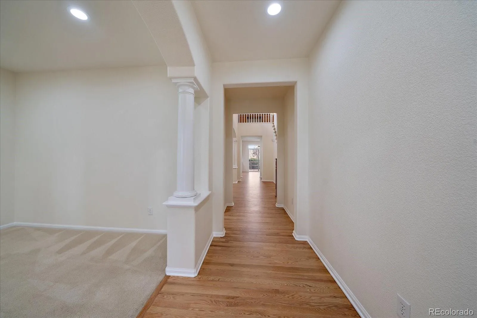 Welcome to this beautifully maintained home in the highly sought-after Cherry Creek School District, perfectly positioned on a quiet cul-de-sac and backing to a peaceful greenbelt for added privacy. Fresh interior paint and newly resurfaced hardwood floors on the main level create a bright, move-in-ready atmosphere from the moment you step inside. The open floor plan features soaring ceilings and abundant natural light, offering an inviting setting for everyday living and entertaining.