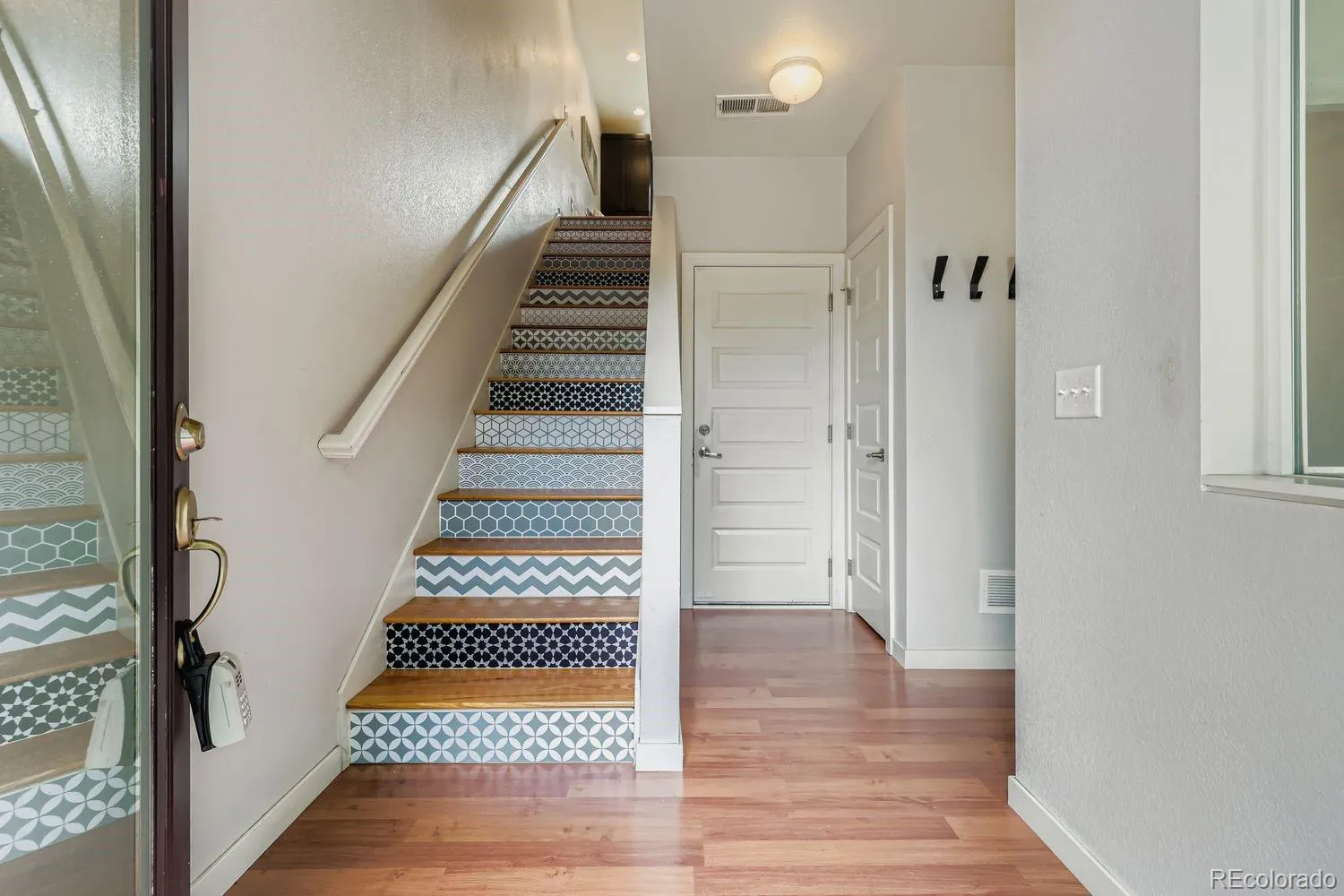 This stylish 2-bedroom, 2.5-bath townhome is located steps from Tennyson Street and Sloans Lake. Light-filled and thoughtfully designed, this three-level home offers modern finishes, comfortable living, and an ideal location. Enter on the ground floor to find a covered front patio, a 2-car attached garage, and a convenient storage/mud room. The main living area on the second floor features soaring 9-foot ceilings and abundant windows that create a bright, open atmosphere. A spacious kitchen showcases extended white granite countertops, ample storage, and European white oak hardwood flooring. The layout flows seamlessly into the dining area and living room, which open to a private Trex deck overlooking Wheat Ridge—perfect for relaxing or entertaining. Upstairs, the third floor offers two primary bedrooms, each with ensuite bathrooms, LVP flooring, and 9-foot ceilings that enhance the sense of space. A laundry closet is conveniently located on this level. Set just blocks from Sloan’s Lake and within walking distance of local restaurants and shops, this home also offers easy access to downtown Denver, making it perfectly situated in Northwest Denver and East Wheat Ridge. With style, function, and location all wrapped into one, this townhome is truly a must-see.