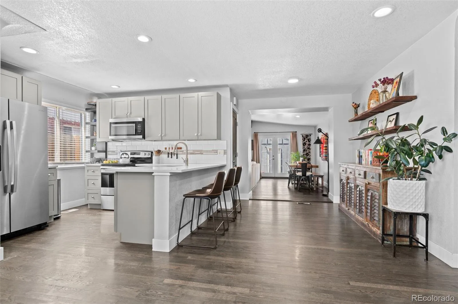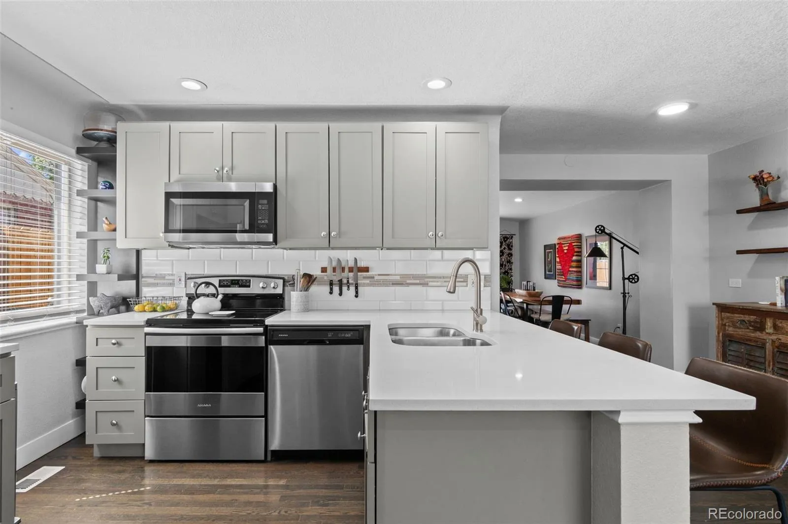 Nestled in the heart of Northeast Park Hill, this lovingly upgraded home invites you into a warm, welcoming space that perfectly blends modern comfort with neighborly charm. With nearly 2,000 sq. ft. of thoughtfully appointed living space, the open-concept layout includes an eat-in kitchen and adjacent dining area that serve as the vibrant hub for everyday living and gatherings. The spacious living room, elevated by a graceful cove ceiling and gleaming hardwood floors, flows naturally from room to room – ideal for both relaxed evenings and lively hosting. The kitchen is a showcase of style and function: stainless appliances gleam beside shaker-style cabinetry and quartz countertops – durable, easy-care materials that highlight the room’s inviting character. Sunlight pours into an attached sunroom offering peaceful views of the backyard – a serene retreat any time of day. Outside, privacy fencing, a detached two-car garage, and a handy storage shed provide both convenience and security for all your lifestyle needs. Residents benefit from a conveniently central location – minutes from bustling downtown Denver, access to light rail at the nearby 40th & Colorado Station, nearby shops, parks, and a variety of dining options. The Greater Park Hill Community organization has fostered neighborhood unity for decades, sponsoring home tours, parades, garden walks, and local newsletters. Recent developments speak to the neighborhood’s evolving future: Denver’s acquisition of the former Park Hill Golf Course will bring a new, expansive public park – one of the city’s largest – slated to open by summer 2025. It will offer even more opportunities for outdoor recreation, nature, and community gatherings. This home isn’t just a place to live – it’s a connection to a local legacy, a vibrant neighborhood, and a future filled with parks, neighbors, and memories yet to be made.