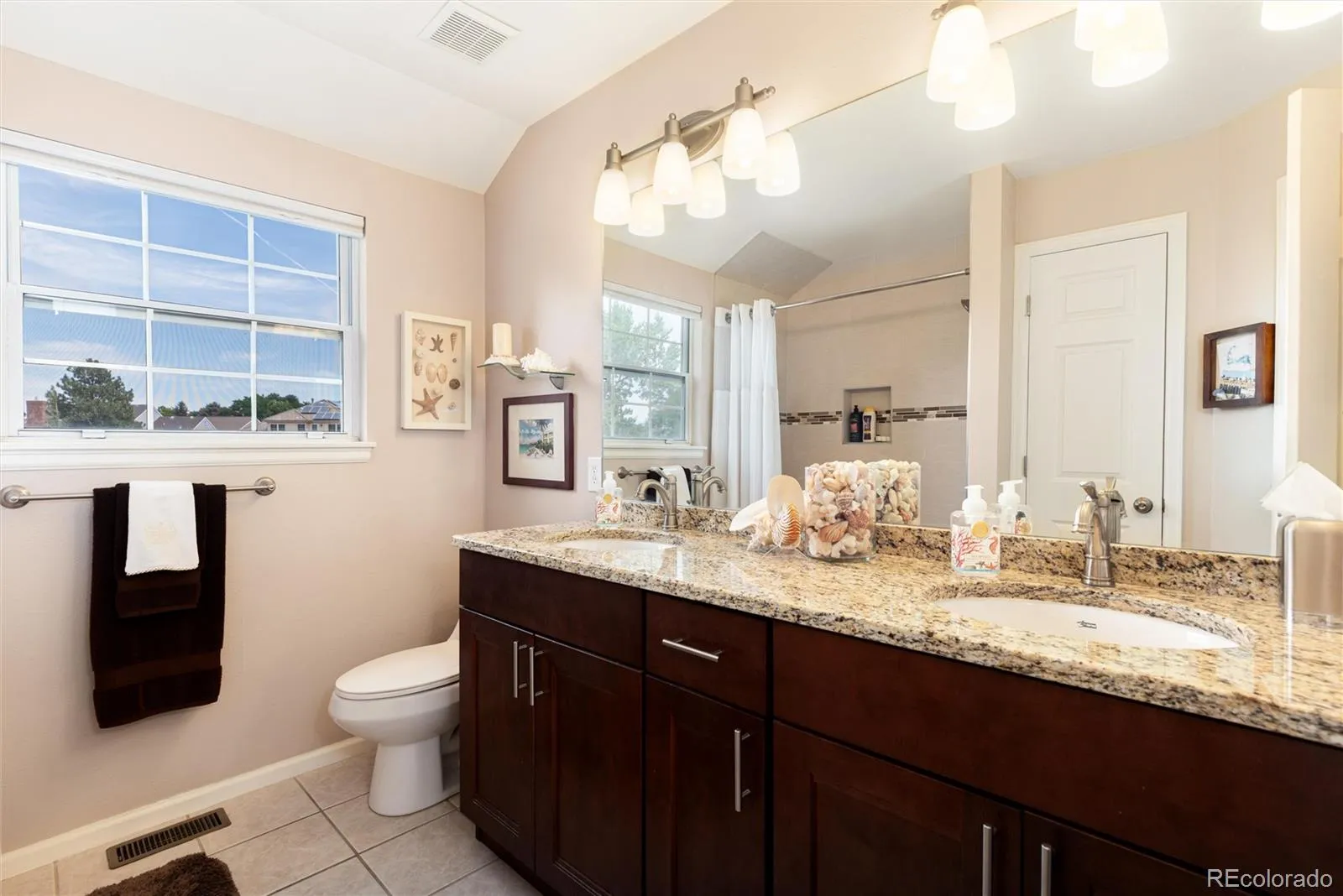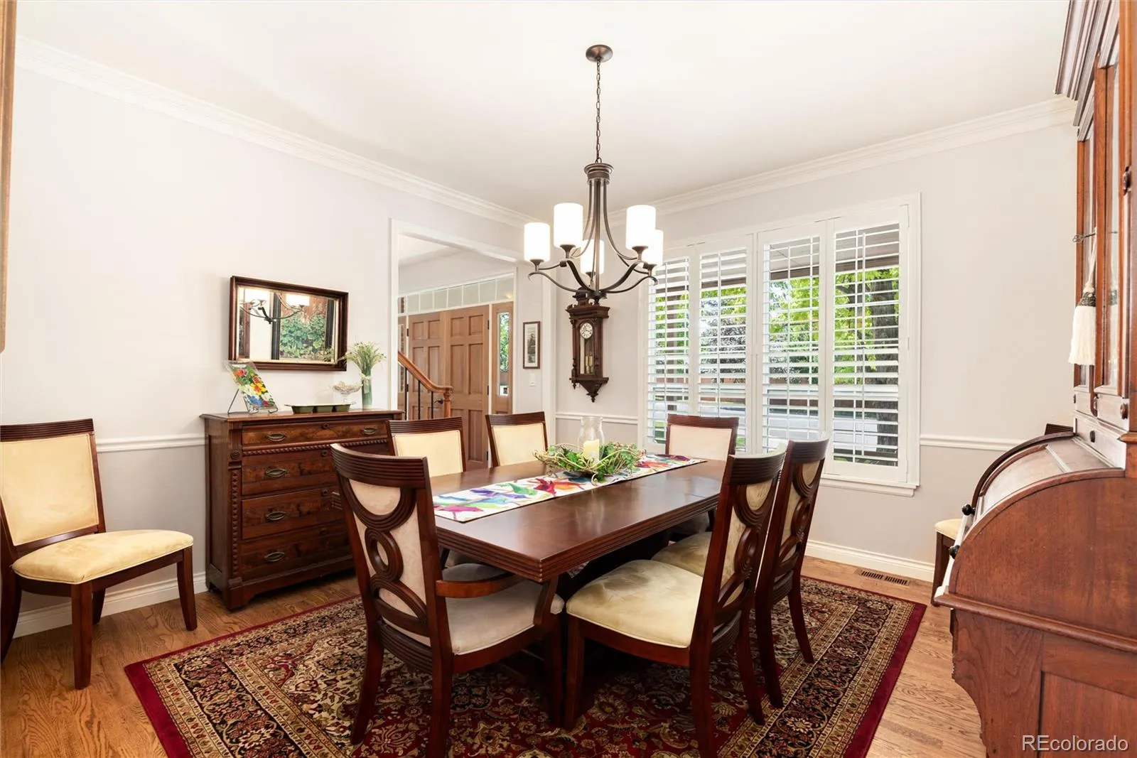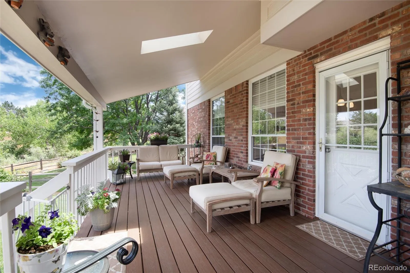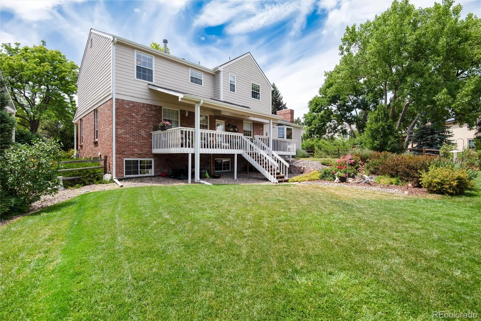 Beautiful traditional two story home built by Sanford Homes in Timberline Ridge. Timberline Ridge is a unique community in Highlands Ranch with its own, separate, HOA and neighborhood pool. Sand Creek Park wraps around Timberline Ridge and has multiple trails and walking paths, many with spectacular views of the Front Range. From the kitchen sink, or covered back porch, you can watch the sunrise, or just enjoy the wildlife that visit the open space behind the home. Sellers have seen deer, foxes, hawks, owls, rabbits, bobcats, and the occasional bear. The interior of the home has been well maintained with the roof, gutters, furnace, a/c condenser, and both front and back sprinkler systems having been replaced either this year, or within the last few years (since 2022). The traditional floor plan includes a formal living room, formal dining room, eat in kitchen, family room with wood burning fireplace, vaulted ceilings and window seat, as well as a large kitchen with pantry and center island. Upstairs there is a primary suite with remodeled five piece primary bath and large walk in closet. Also upstairs are 3 additional secondary bedrooms and a hall bath with tub and double sinks. The basement is garden level and partially finished with a three quarter bath, small office or media room, and ample storage. Plenty of room to add additional living space or bedrooms. This is a beautiful home in a magical setting.