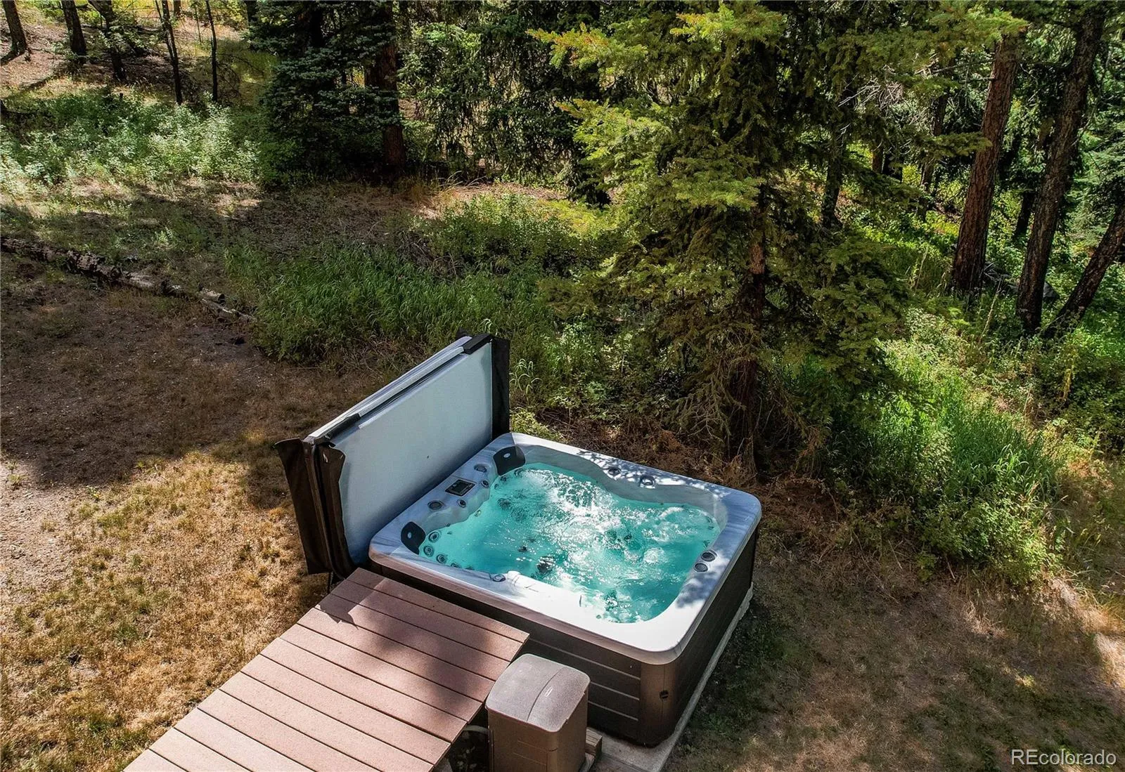 Welcome home to your private retreat in the heart of Aspen Park. This beautifully crafted 3-bedroom, 4-bathroom house is move-in ready and thoughtfully designed for comfort, functionality, and style. Nestled on a usable and private 3.37 acres with open meadows and trees for privacy, this home offers a tranquil escape without sacrificing convenience—just a short drive to shopping and only 15 minutes to Hwy 470. Step inside and enjoy high-end upgrades and finishes throughout, including a warm, inviting atmosphere highlighted by south-facing, two-story Andersen windows that flood the space with natural light. The open-concept layout is perfect for both quiet mornings and lively gatherings. The spacious, light-filled living area with natural gas fireplace flow seamlessly into a well-equipped kitchen and dining area. The primary bedroom offers a serene retreat with its own luxurious bath. Two additional bedrooms and baths provide flexibility for family, guests, or home office needs. Downstairs, a finished basement presents extra living space—ideal for a media room, play area, or hobby space. Off the walkout basement is your private hot tub.