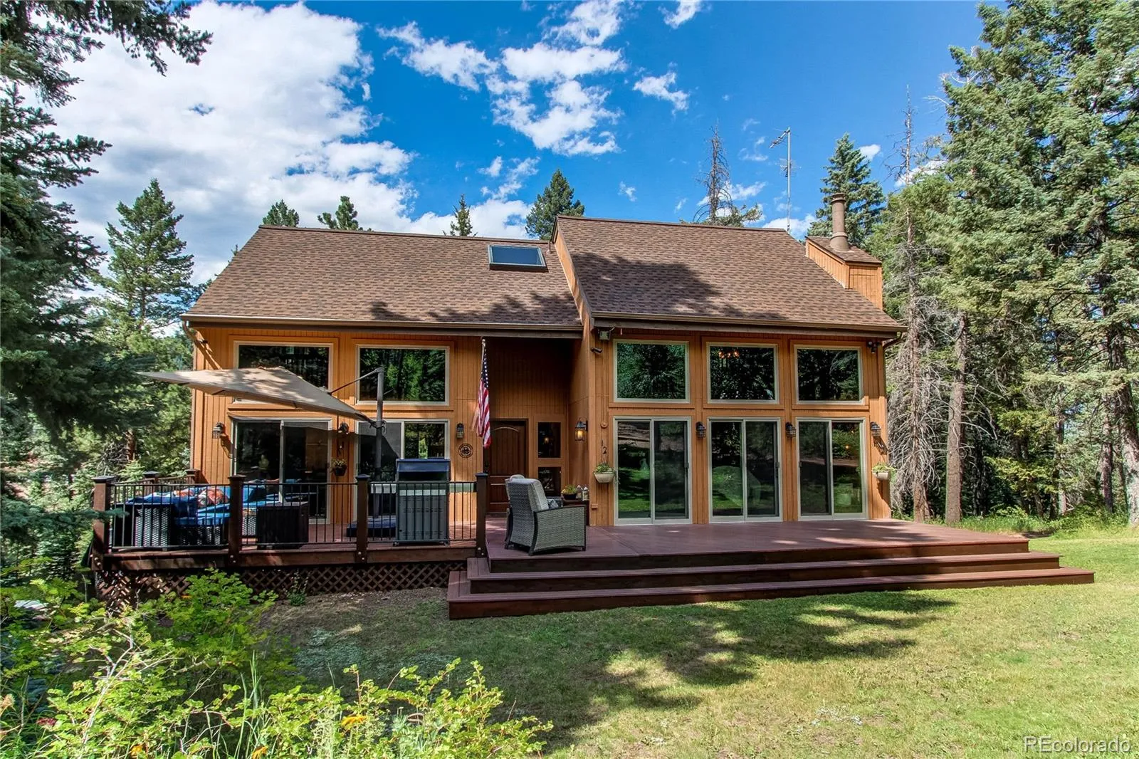 Cozy up in front of a warm fire in your private mountain retreat in the heart of Aspen Park. Move in before Christmas. This beautifully crafted 3-bedroom, 4-bathroom home that has over $200K in upgrades and designed for comfort, functionality, and style. The tall Christmas tree you have always wanted will fit perfectly in front of the 2-story tall Andersen windows. Nestled on a usable 3.37 acres with open meadows and trees for privacy, this home offers a tranquil escape without sacrificing convenience. The roads are plowed as soon as the snow falls, a short drive to shopping & 15 minutes to Hwy 470. The open-concept layout is perfect for both quiet mornings and lively holiday gatherings. The spacious, light-filled living area with natural gas fireplace flows seamlessly into a well-equipped kitchen and dining area. Cuddle up in the primary bedroom; your own serene retreat with a luxurious bath and balcony to watch the deer. 2 additional bedrooms and baths provide flexibility for family, guests, or a home office. A finished basement presents extra living space—a gym, play area, or hobby space. Off the walkout basement is your private hot tub. Enjoy the quiet of the snow falling or watch the stars on a clear eve. Out your front door is a new composite deck, perfect for relaxing or entertaining, while the surrounding land offers space for an ADU, shop, or a barn. Cross-country ski or snowshoe right out your front door at Meyer Ranch Park. With over 600 acres of recreational open space, there is plenty of room for adventure. You are within two miles of grocery stores, restaurants, and quaint shops, where the locals are friendly and dressed in their Uggs and flannel, just as you are. Come experience the joy of mountain living—without having to rough it; less than an hour to major skiing or 30 minutes to Denver downtown. There is NO HOA.
