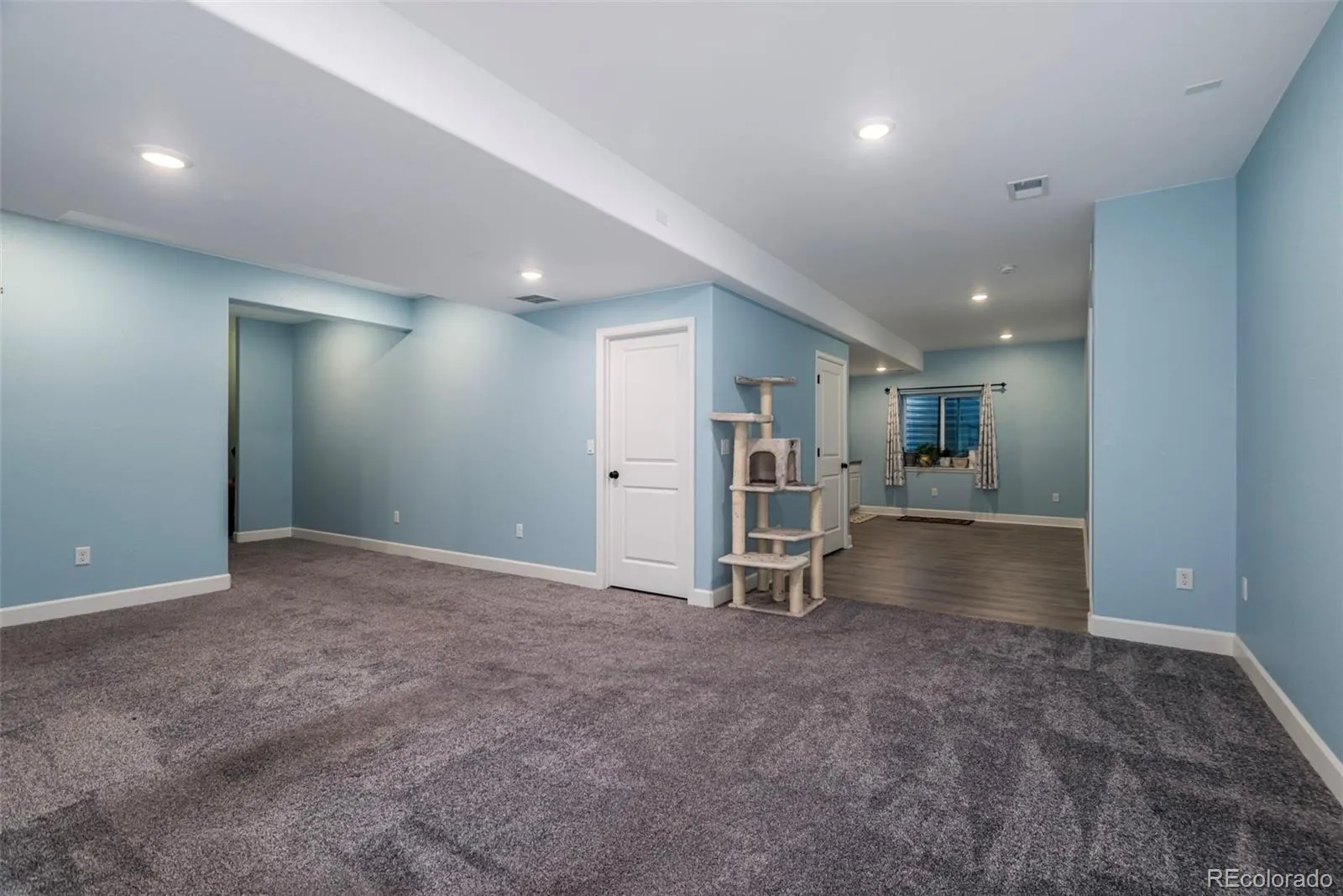 The finished basement offers even more living space, ideal for a media room, or guest retreat. With its own dedicated washer, dryer, fridge and sink its perfect for a seperate feeling living space. Its prewired for 7.1 surround sound and is set up with wall backing to hang a TV with passthrough cabling.