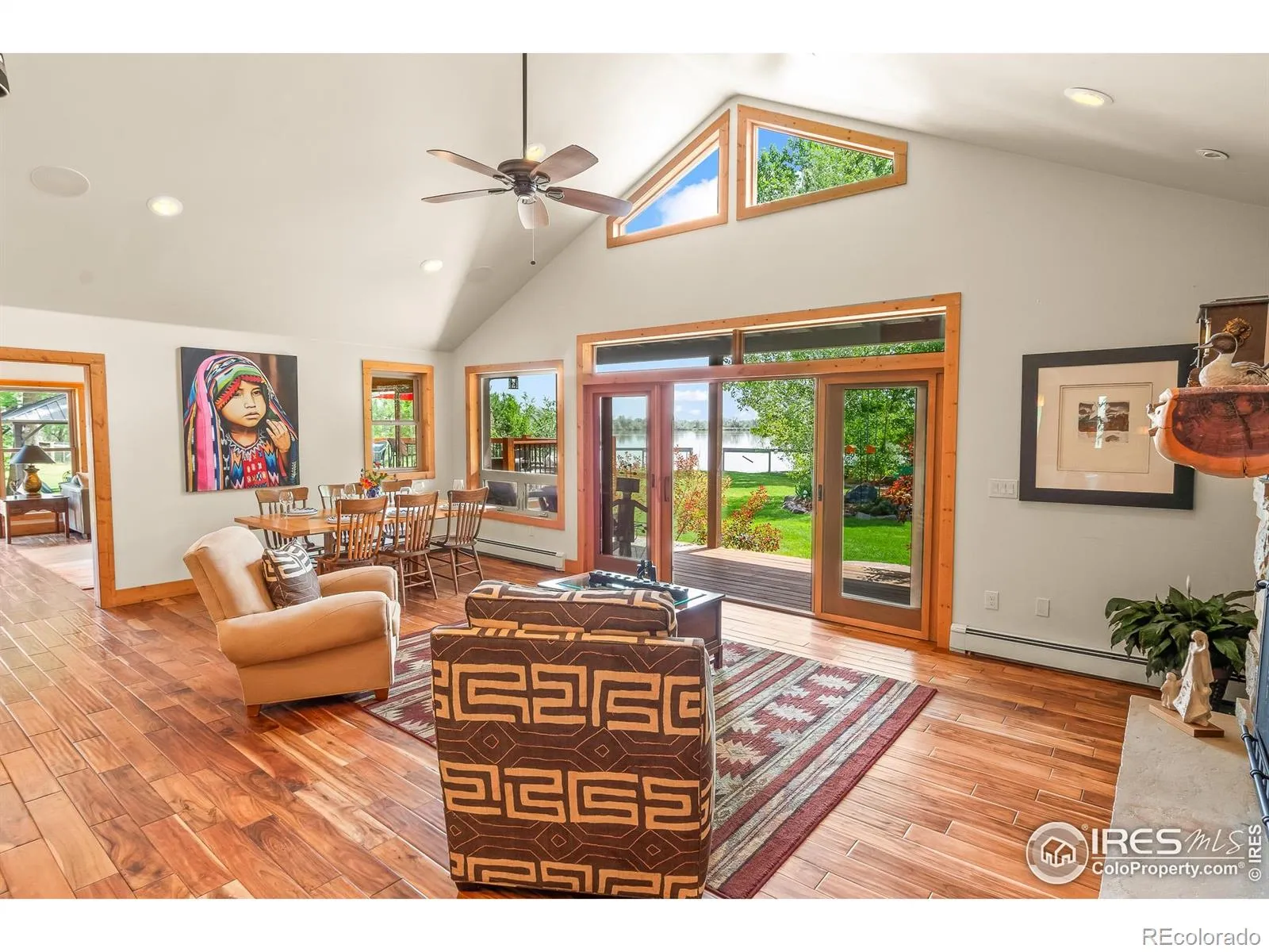 If you’re looking for a peaceful place to live AND work – plus enjoy the outdoors, this 1.39-acre property is the perfect fit. Zoned Industrial Light, this property is ideal for multitude of uses including indoor-outdoor storage, auto repair, landscape/plumbing or electric company. Located just minutes from town, this property features a remodeled residence, large shop, no HOA, no metro district and minutes from 1-25 and everything Loveland has to offer. Surrounded by mature trees and meticulous landscape, and tucked right up against a quiet private lake, it’s a great spot for relaxing or watching wildlife from your beautiful wrap around deck. Inside, the home has been updated with a functional open layout, thoughtful finishes, and lots of natural light. The kitchen has stainless steel appliances, plenty of counter space, and great storage including two pantries. The spacious primary bedroom features an updated en-suite bath, walk in closet and incredible views of the lake. One of the standout features is the 40×70 shop which also includes a fully dedicated office space. Whether you’re in need of storage for your cars, RV’s, boats or just need serious space to enjoy your hobbies, this property delivers. Offering the best of both worlds: the peace and space of the country with the amenities of town just a short drive away. Whether you’re casting a line at sunrise, working in the shop, or enjoying a quiet evening near the lake, this is a place where you can live on your own terms.