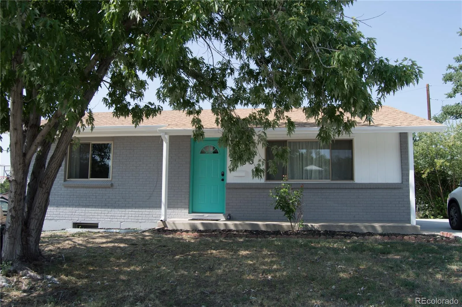 Downstairs, the finished basement expands your options with two additional bedrooms complete with egress windows, a second bath, and a spacious lounge and dining area accented with colorful design touches. A bonus kitchenette adds convenience for guests, extended stays, or flexible living. Outside, the welcoming teal front door and large yard create curb appeal and room to relax.