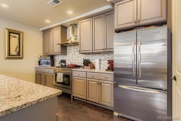 Don’t miss this rare opportunity to own a luxury condominium just one block from the shops, dining, and charm of Historic Downtown Littleton. This beautifully appointed unit stands out as one of the few with a massive private rear patio—nearly 800 sq ft of outdoor living space. Perfect for entertaining, al fresco dining, grilling, or simply relaxing in a cozy nook, this patio offers the kind of outdoor lifestyle most condos can’t match. Forget tiny balconies or rooftop decks three flights up—step directly from your spacious living area into your own open-air sanctuary. Inside, the open floor plan flows seamlessly from the oversized galley kitchen—complete with slab stone countertops, a gas range, and wood flooring—into a warm living room with a fireplace and a quiet nook leading outdoors. The expansive primary suite features a luxurious five-piece en suite bath and ample closet space. Additional highlights include: Laundry room with extra storage, Secured storage locker, Heated underground garage, High ceilings throughout, Located in a secure, well-maintained building. Enjoy the best of both worlds—walk to dozens of local restaurants, cafes, and boutiques, or unwind in the privacy of your oversized outdoor living space
