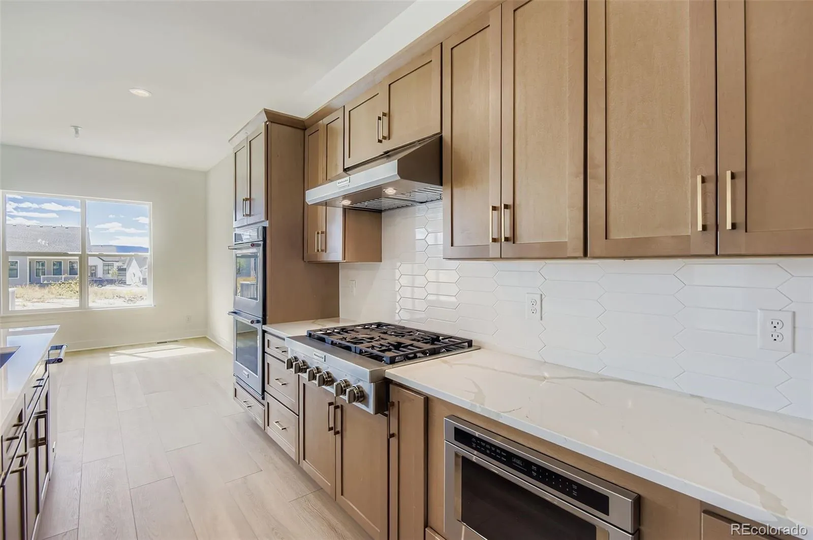 This popular floorplan is situated on a homesite that backs to a green belt providing a peaceful backdrop for your home. The covered deck creates a generous outdoor living space, perfect for enjoying the serene surroundings. Inside the home, a gourmet kitchen featuring Kitchen Aid appliances, expanded dining area and great room are perfect for entertaining. The study features elegant double doors and closet offering a versatile space to use as you wish.