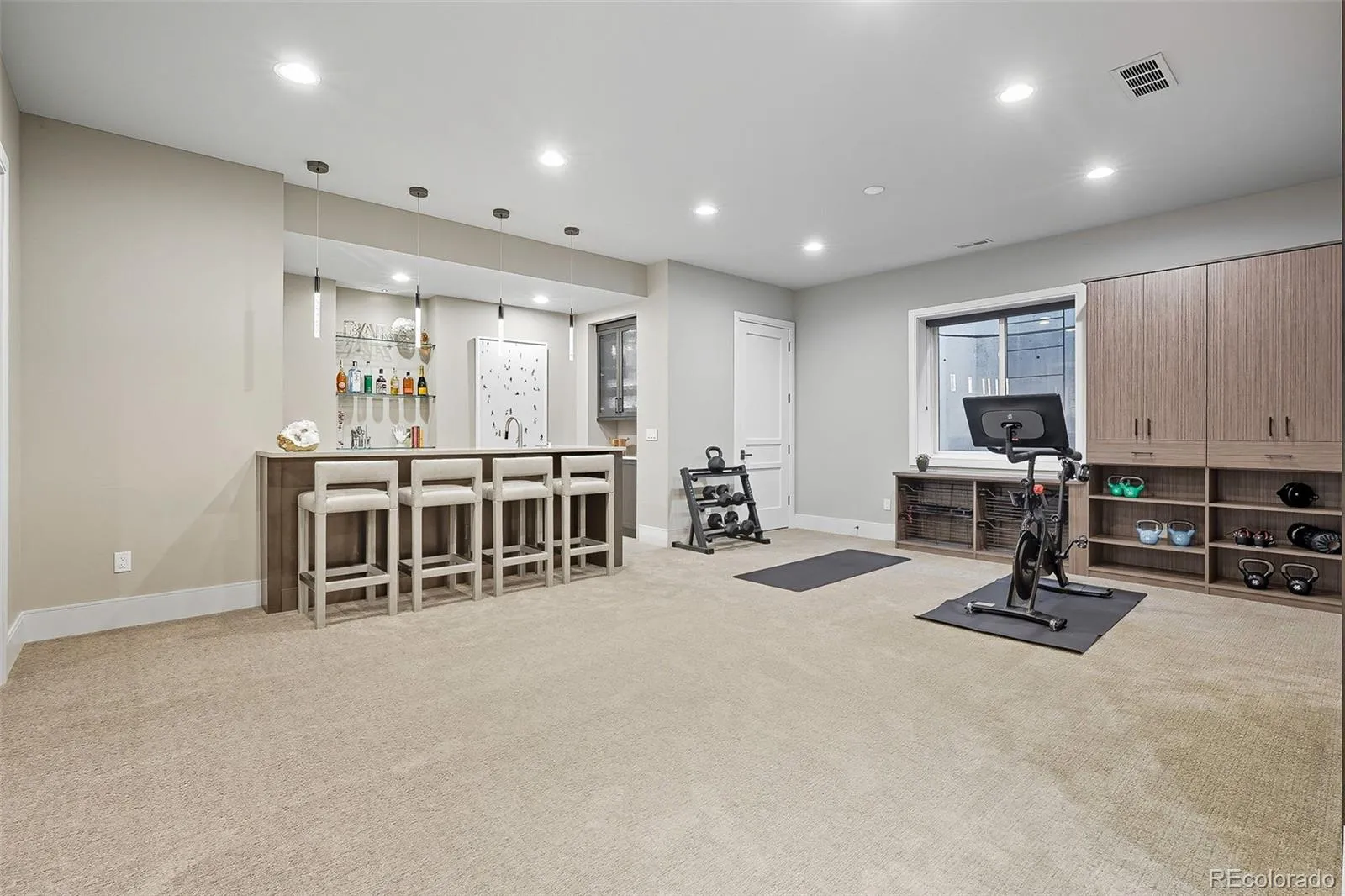 The finished basement expands the living space with two more bedrooms, a full bath with heated flooring, wet bar, game area, home theater, and storage. Outdoor living is just as impressive, with an expansive patio featuring a built-in grill, gas fire pit, and private yard.