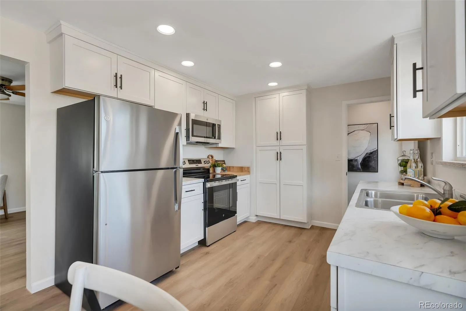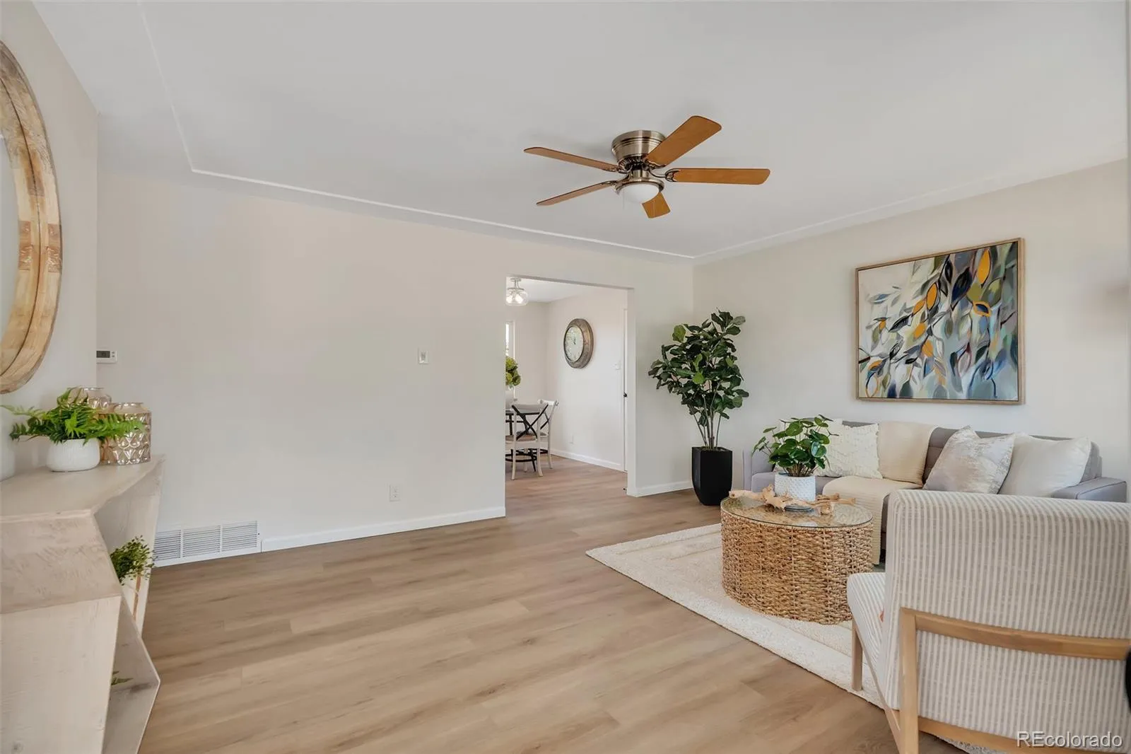 Looking for a large lot close to downtown Castle Rock? This fantastic rancher is on the market for the first time in 30 years! Clean, updated, and ready for you. New appliances, new fixtures, new flooring, new paint & more! Situated on 1/3-acre lot, this darling home is ready for you. Upon walking up to the front porch, the home welcomes you in with great natural light! The living room features new luxury vinyl plank flooring, huge picture window and views to the front yard. Continuing in, the separate dining space is set right next to the updated kitchen. New appliances, new cabinetry, and the lvp flooring runs through out. The access to the backyard is adjacent to the kitchen. Completing the main floor, there are 3 bedrooms, (largest room set as the primary) separate linen closet, and a completely renovated full bathroom. New closet hardware, new doors & handles/hardware, new ceiling fans in each room as well as lvp that continues throughout the entire main level. Going downstairs the fully finished basement is set up with a large rec room/family room space as well as flex space that could be an office, gym area, or playroom. Newly added conforming bedroom in the basement with another full bathroom. The oversized laundry space is plumbed for adding a sink and has tons of storage possibilities or could be used as a craft space. Any outdoor enthusiast will love this blank slate of a backyard. Leveled and cleared, this huge space has endless possibilities. The garage has doors both on the front and the back which allows pull through to the back. Large metal gate on the west side of the home and a new sidewalk and wood gate on the east side. Brand new concrete driveway. Nothing to do but move in! Don’t wait, schedule your showing today.