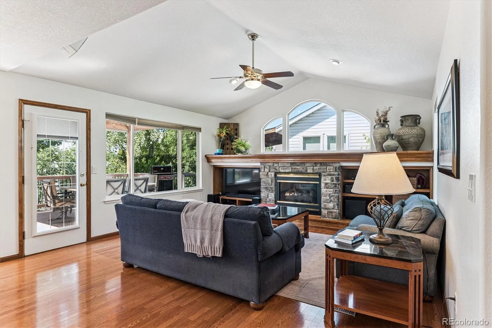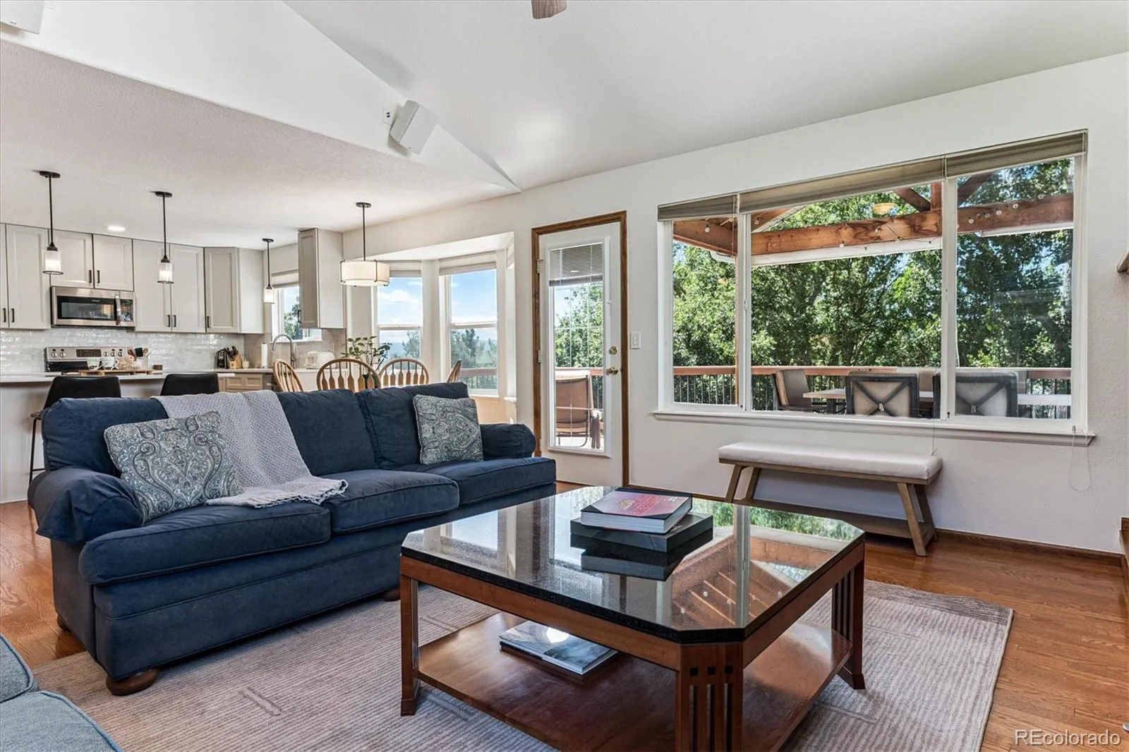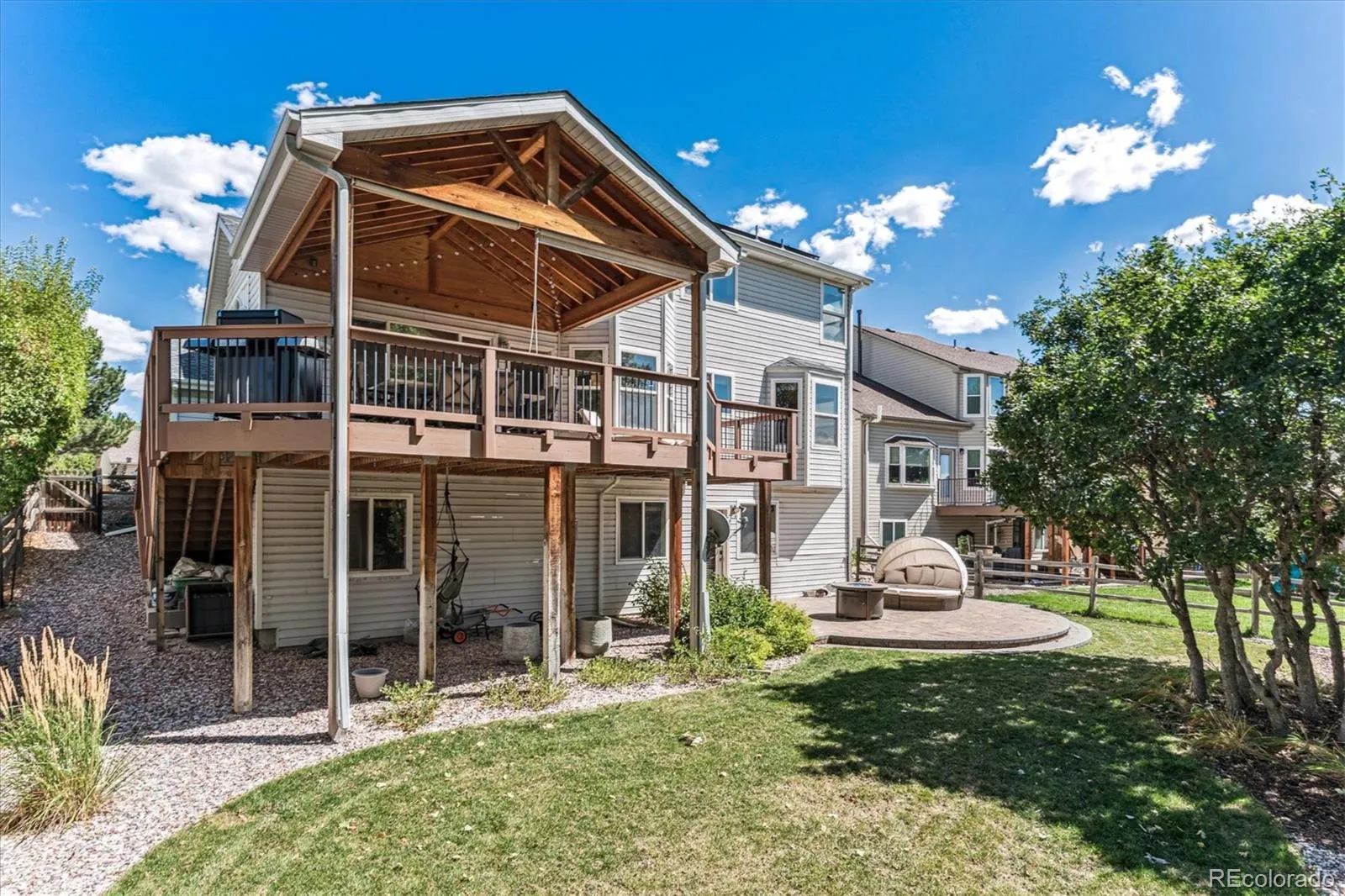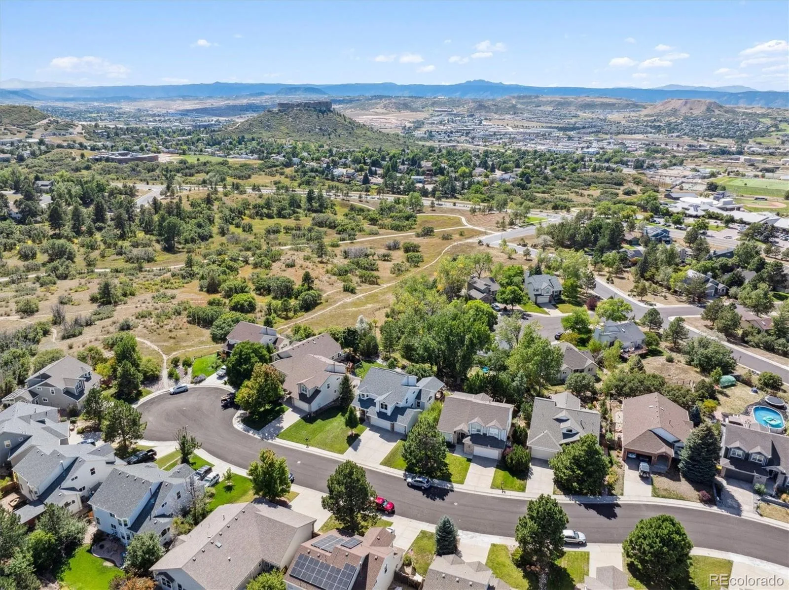 Full of Charm and nestled in a cul-de-sac in the established Woodlands neighborhood where mature trees and a big lot come together to make this your next stop to call home. With 5-bedrooms, 4-bath, this home blends timeless character with modern updates and unforgettable outdoor living. A curved staircase makes a striking first impression, while arched entryways, bay windows, vaulted ceilings, and gleaming hardwood floors add warmth and style throughout. The main floor study offers a quiet retreat or versatile work-from-home space, while the formal living and dining rooms are perfect for gatherings both large and small. The heart of the home is the fully remodeled kitchen (August 2025), showcasing sleek finishes, induction gas cooktop, updated cabinetry, and a designer backsplash. Upstairs, the primary suite is set apart for privacy, while the finished walkout basement feels like an extension of the main level with higher ceilings, a private bedroom with ensuite bath, kitchenette, exercise room with mirrored walls, and built-in speakers for movie or game nights. Outdoor living is equally impressive with a backyard full of mature pines and a custom pavilion-covered deck designed for year-round entertaining. Solar panels are included and fully paid off, offering energy efficiency and long-term savings for the new homeowner. The 3-car garage comes complete with an EV charging station, adding everyday convenience to the lifestyle. From this central yet tucked-away location, you’ll enjoy serene trails through the Woodlands Bowl and Woodlands Park—both surrounded by trees with no houses in sight—while being just minutes from downtown Castle Rock’s shopping, dining, and community events, plus the Rec Center and Colorado Front Range Trail system right at your backdoor. This rare combination of privacy, updates, and convenience makes it a home you won’t want to miss.