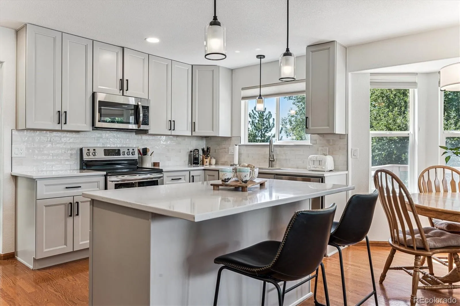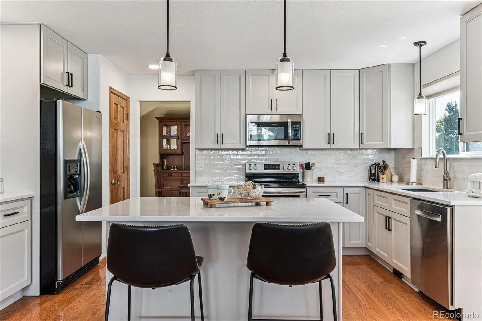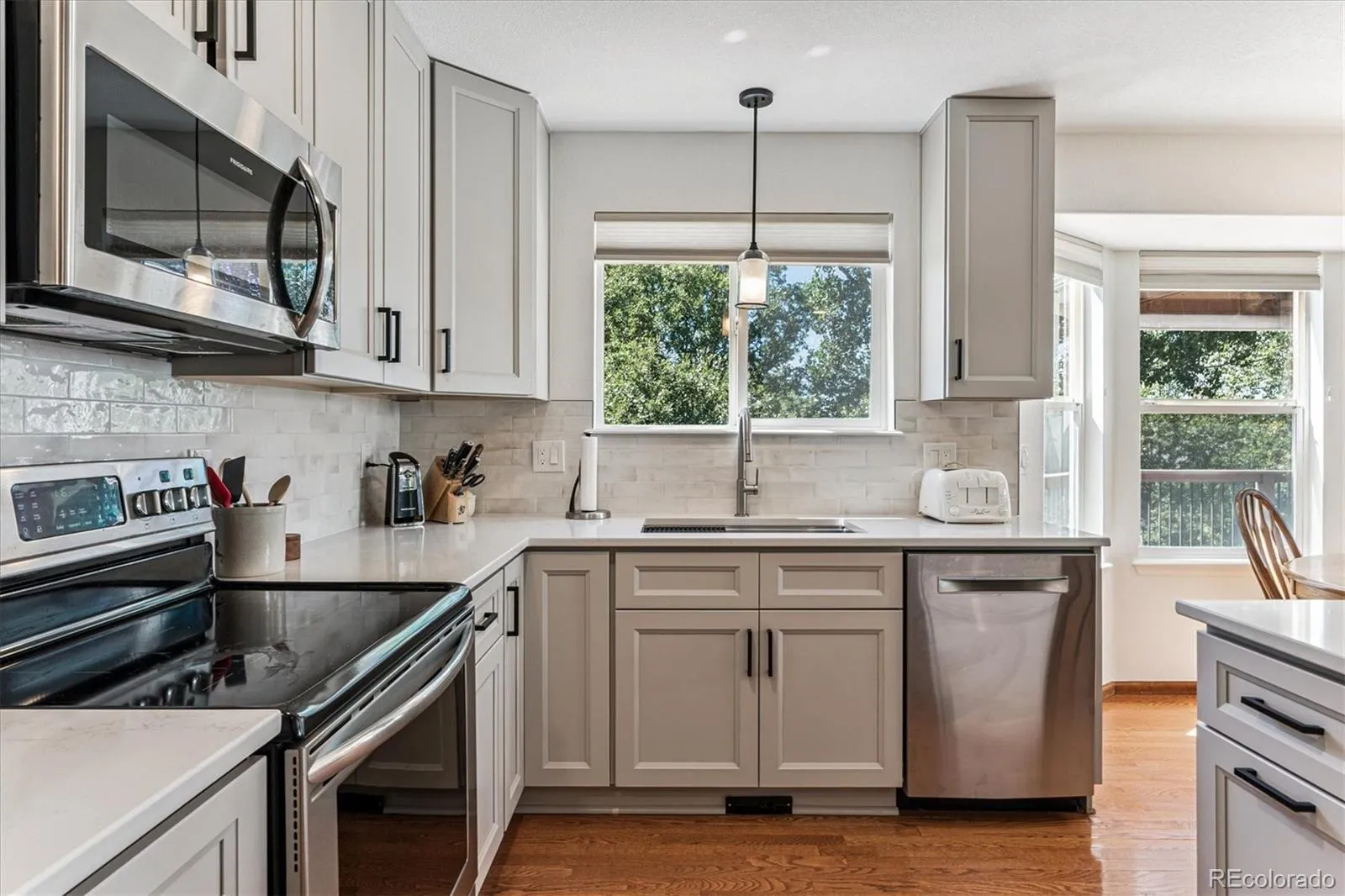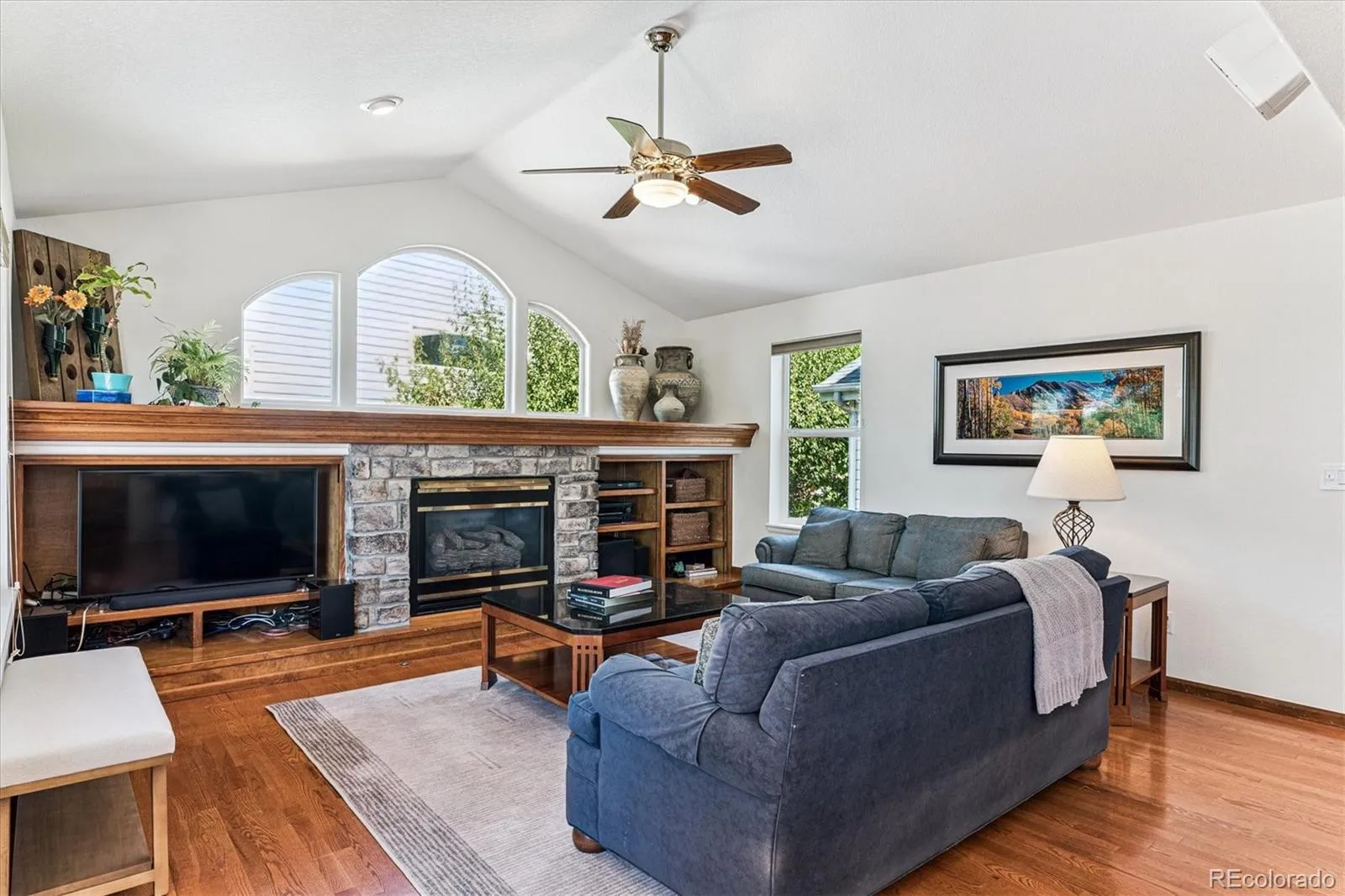 Full of Charm and nestled in a cul-de-sac in the established Woodlands neighborhood where mature trees and a big lot come together to make this your next stop to call home. With 5-bedrooms, 4-bath, this home blends timeless character with modern updates and unforgettable outdoor living. A curved staircase makes a striking first impression, while arched entryways, bay windows, vaulted ceilings, and gleaming hardwood floors add warmth and style throughout. The main floor study offers a quiet retreat or versatile work-from-home space, while the formal living and dining rooms are perfect for gatherings both large and small. The heart of the home is the fully remodeled kitchen (August 2025), showcasing sleek finishes, induction gas cooktop, updated cabinetry, and a designer backsplash. Upstairs, the primary suite is set apart for privacy, while the finished walkout basement feels like an extension of the main level with higher ceilings, a private bedroom with ensuite bath, kitchenette, exercise room with mirrored walls, and built-in speakers for movie or game nights. Outdoor living is equally impressive with a backyard full of mature pines and a custom pavilion-covered deck designed for year-round entertaining. Solar panels are included and fully paid off, offering energy efficiency and long-term savings for the new homeowner. The 3-car garage comes complete with an EV charging station, adding everyday convenience to the lifestyle. From this central yet tucked-away location, you’ll enjoy serene trails through the Woodlands Bowl and Woodlands Park—both surrounded by trees with no houses in sight—while being just minutes from downtown Castle Rock’s shopping, dining, and community events, plus the Rec Center and Colorado Front Range Trail system right at your backdoor. This rare combination of privacy, updates, and convenience makes it a home you won’t want to miss.