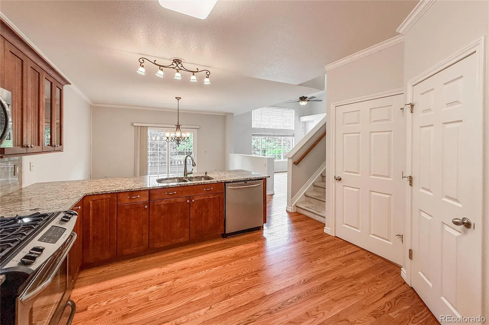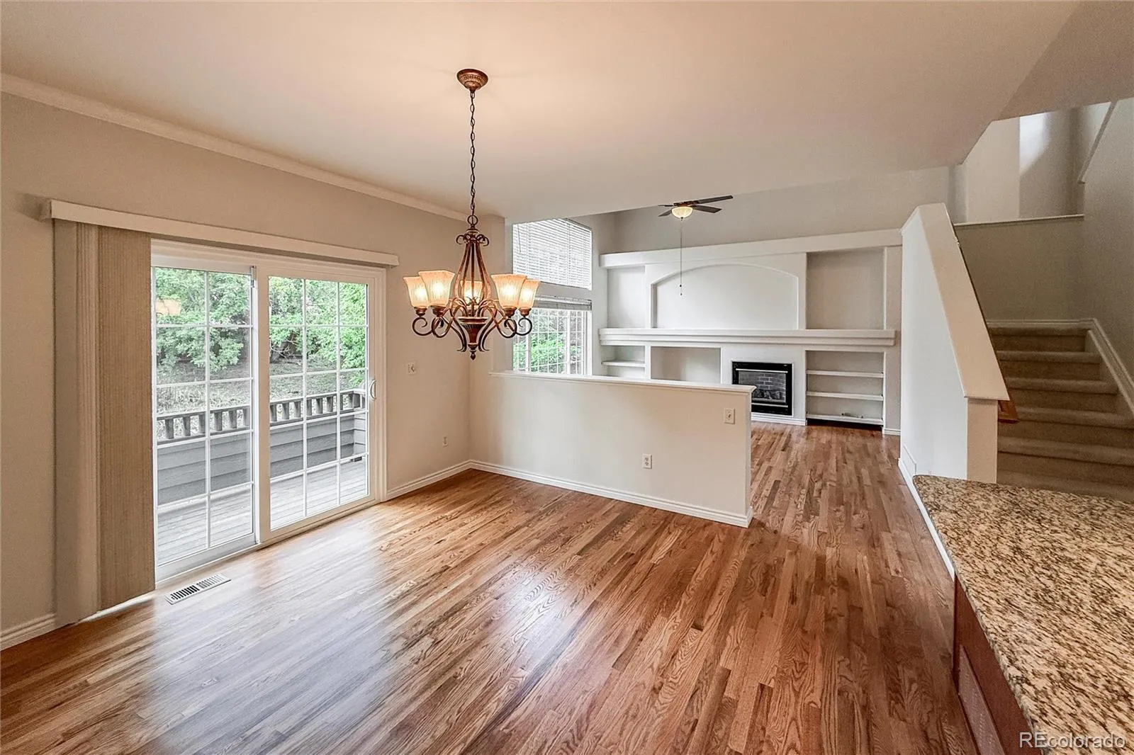 Inviting 2-bedroom townhome in desirable and tranquil Weaver Creek neighborhood. Move right into this spacious, airy unit with beautiful hardwood floors throughout the main level. Freshly painted interior offers great natural light, main level office/study, living room w/ cozy gas fireplace & ample dining area. Well appointed kitchen w/ granite counters, stainless appliances and large peninsula. Upper level has large primary bedroom w/ en suite bath and a 2nd bedroom also w/ an en suite bath! Full unfinished basement for future living space and/or storage. Attached 2-car garage. No neighbors behind – unit backs to HOA greenbelt. Minutes to C-470 and super close to trails and parks.