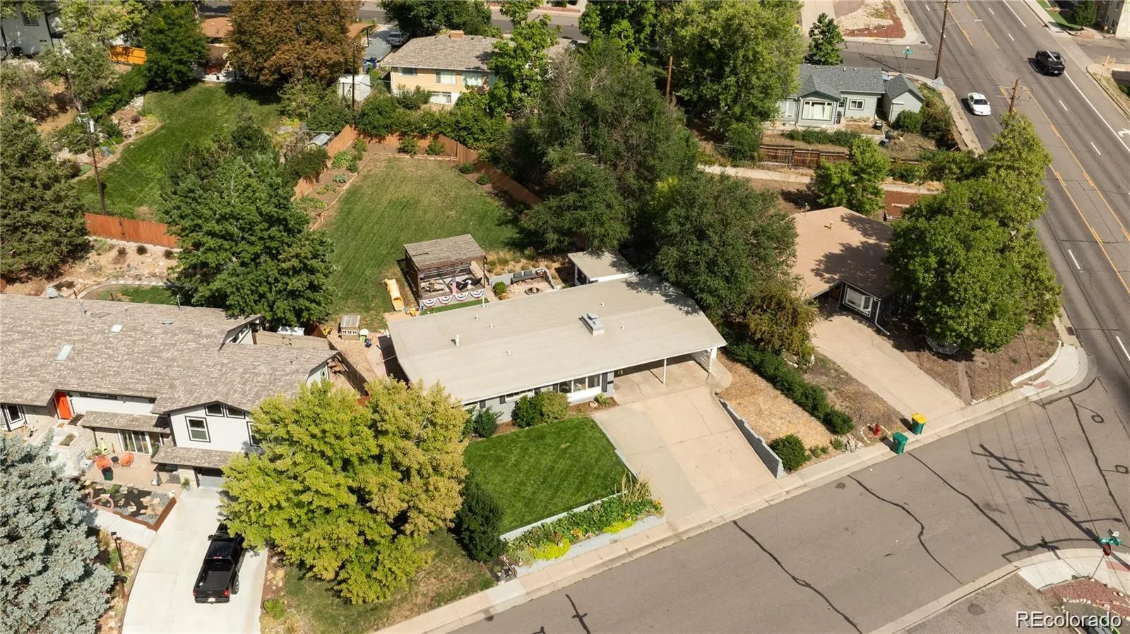 The location adds to the appeal. Directly across the street is a park with a petting zoo, trails, playgrounds, pickleball courts, and Pirates Cove Water Park. The neighborhood hosts community events and festivals, and wildlife sightings are part of daily life. Downtown Littleton is within walking distance, and both Denver and the DTC are only a short drive or light rail ride away.