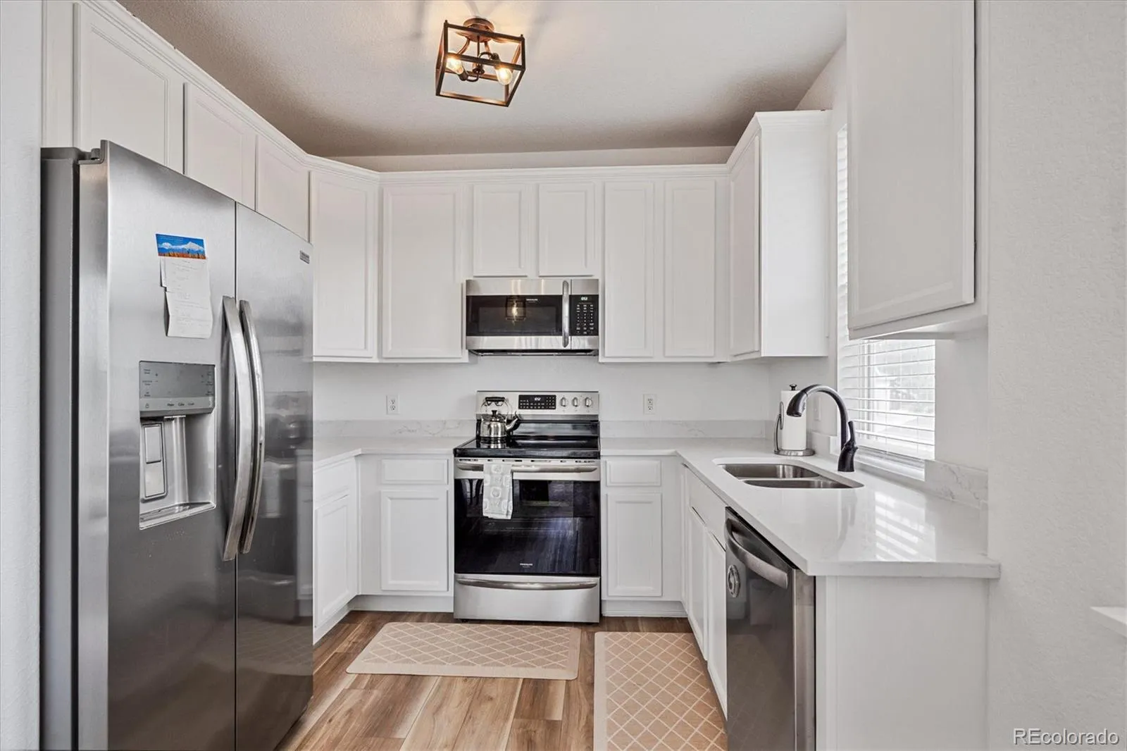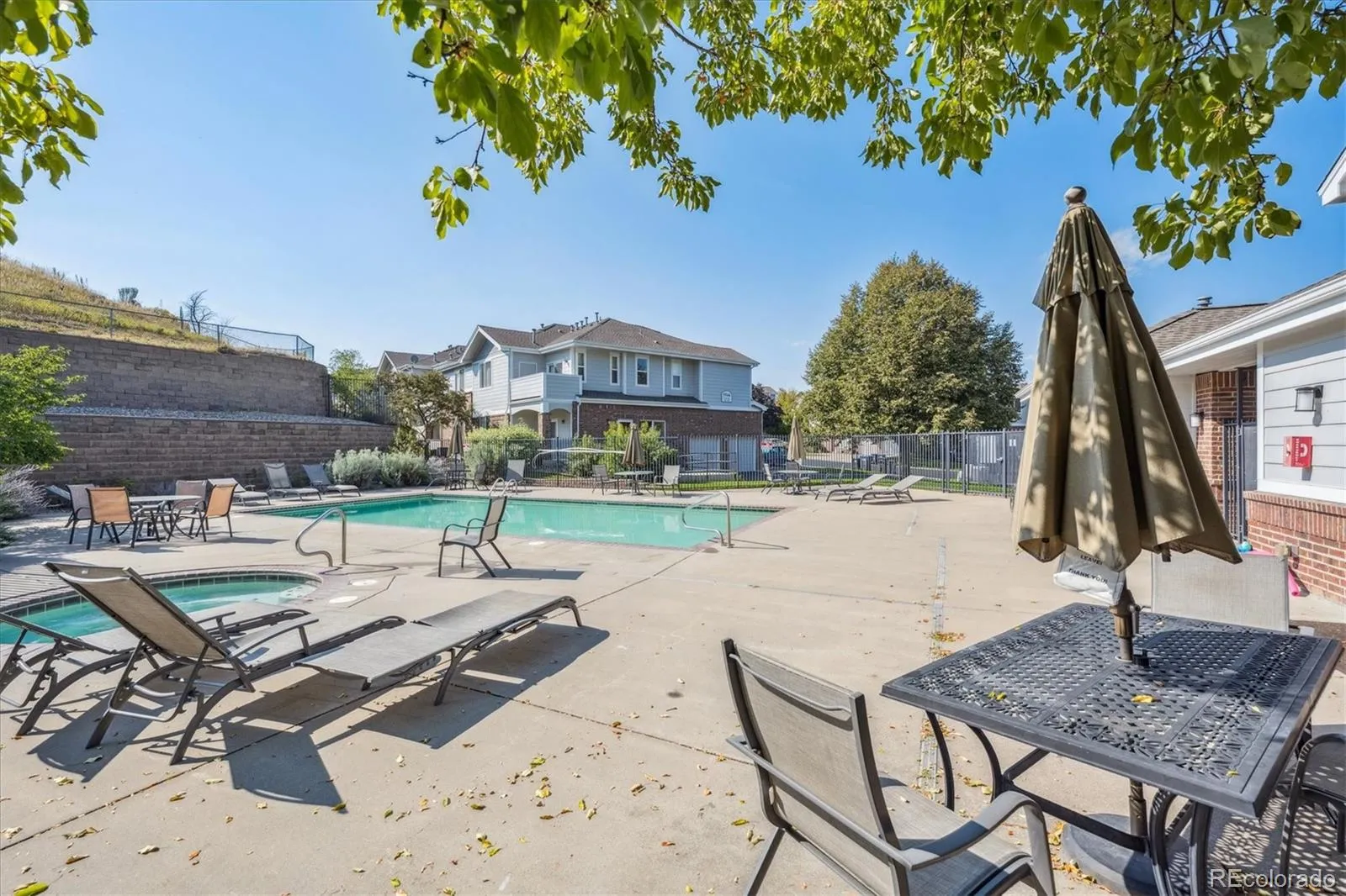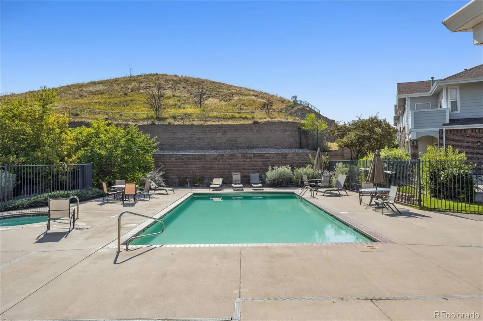Remodeled, Light, Bright, and ready for you! Welcome to this lovely and immaculate home with mountain views off the balcony! This Great Room design is the perfect easy living plan for gathering friends and family. The great room (with cozy fireplace), dining, and kitchen are all open to one another, giving the home a large and bright feeling. Relax on the west balcony and take in the trees and mountain views framing our gorgeous Colorado sunsets. Relax in the large primary bedroom with wonderful walk-in closet space, and a fully remodeled En Suite bath. The second bedroom is also spacious, with a full bath just adjacent, also remodeled. The laundry is in-unit, and the garage is oversized deep for extra storage space. Enjoy the amenities such as pool and clubhouse, easy commute to both downtown and to I-70 to escape to the hills! Welcome home!