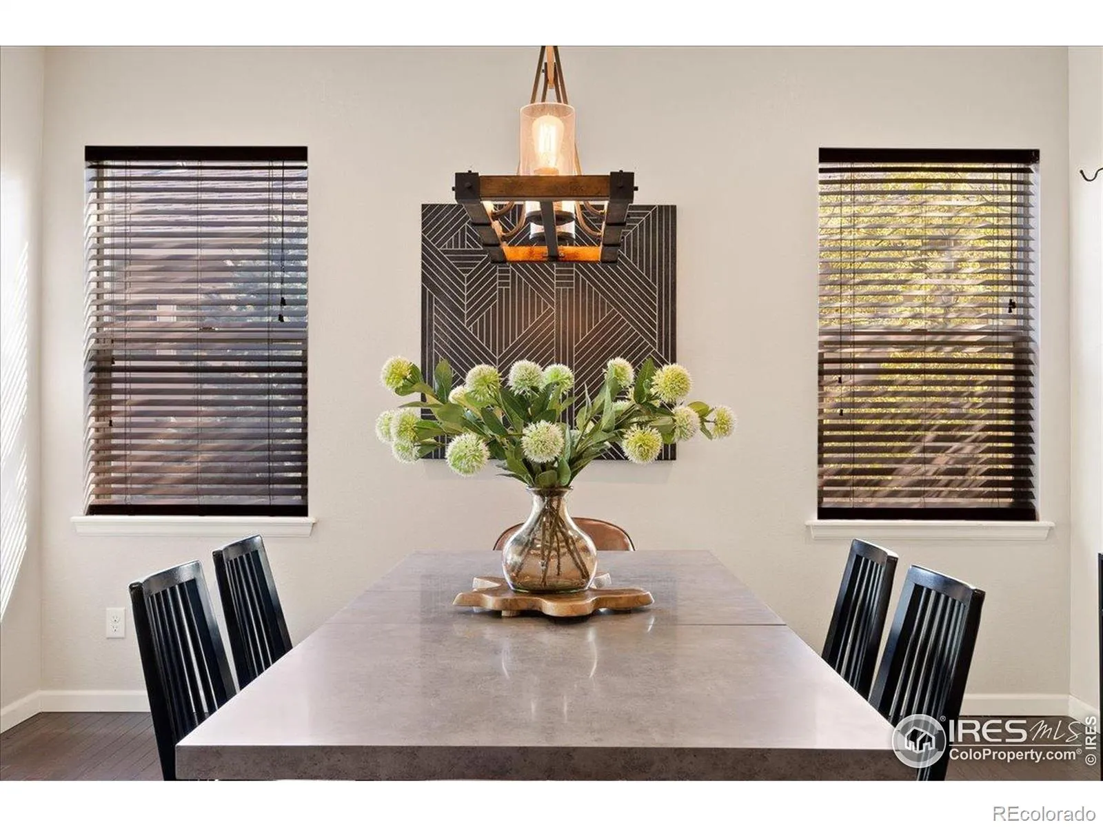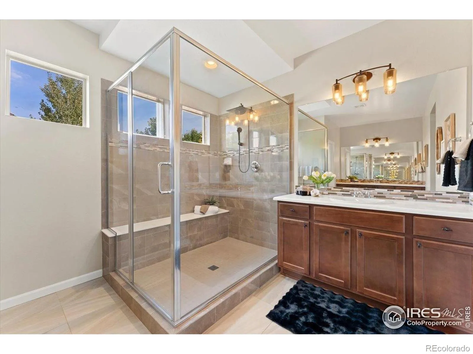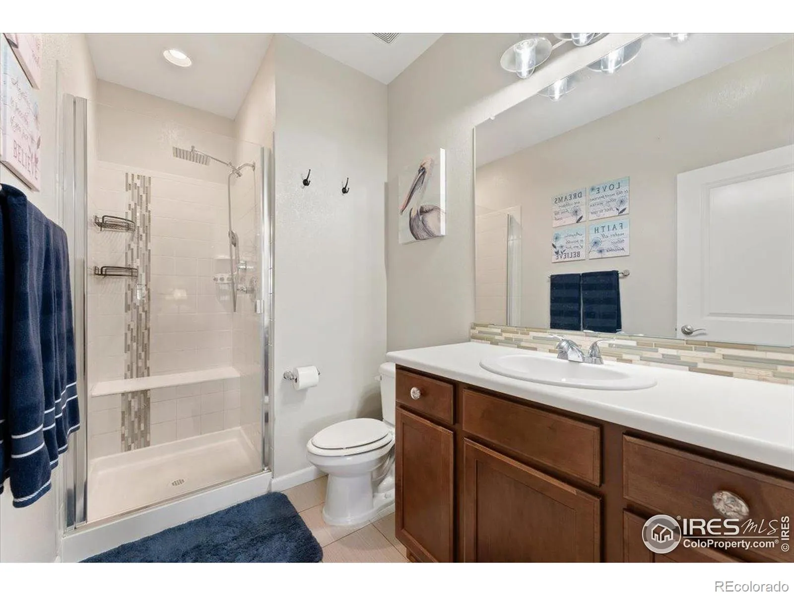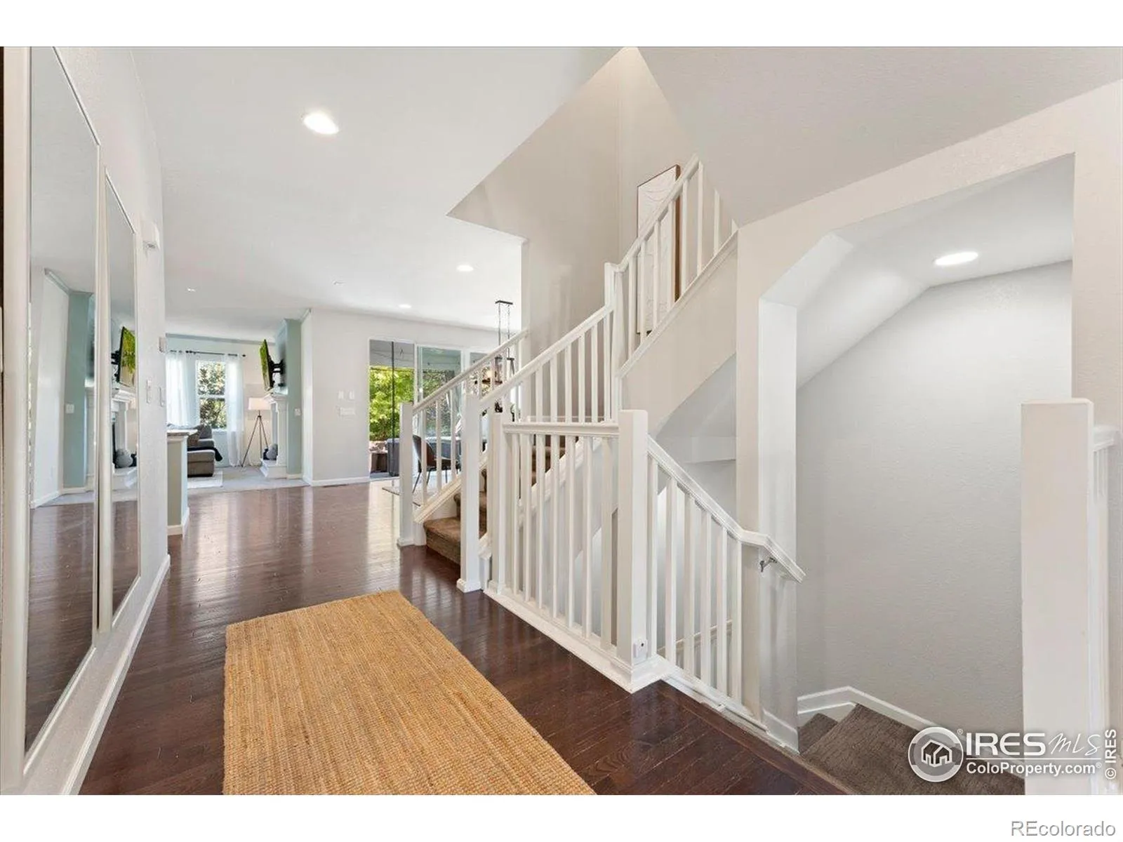 Step inside to discover a spacious, light-filled layout featuring an inviting living room centered around a modern gas fireplace with stone surround and a white wood mantel. The gourmet kitchen is a chef’s dream with granite countertops, 42″ cabinets, double ovens, gas cooktop with vent hood, full tile backsplash, and a brand-new Samsung refrigerator. A main-floor bedroom and adjacent 3/4 bath offer the perfect setup for guests or a home office. Upstairs, retreat to the expansive primary suite with coffered ceilings, a luxurious 4-piece bath, and large walk-in closet. Each additional bedroom offers its own bath access, ensuring comfort and privacy for everyone. The outdoor living space is truly a private backyard oasis-complete with a covered patio, maintenance-free Trex deck, relaxing hot tub, stone patio, and low-maintenance landscaping surrounded by colorful blooms. Enjoy all the perks of the Lakes at Centerra lifestyle, featuring two scenic lakes, miles of walking trails, and opportunities for kayaking and canoeing right in your neighborhood. Conveniently located near shopping, dining, and I-25, this home offers both serenity and accessibility. Bonus: This home offers includes a VA assumable loan!