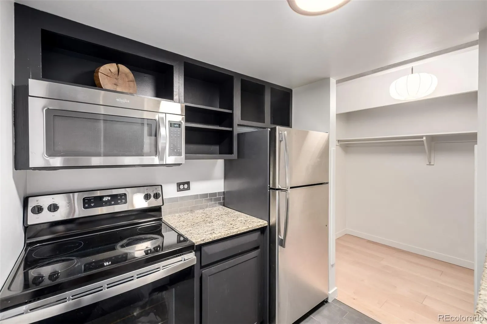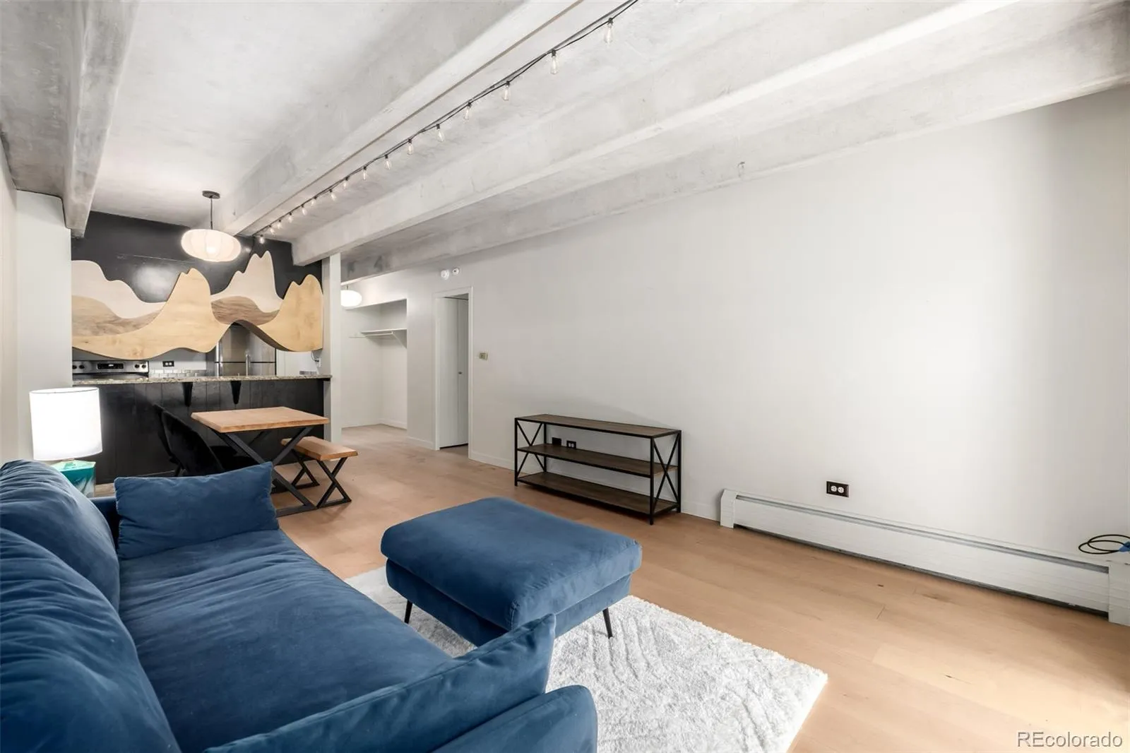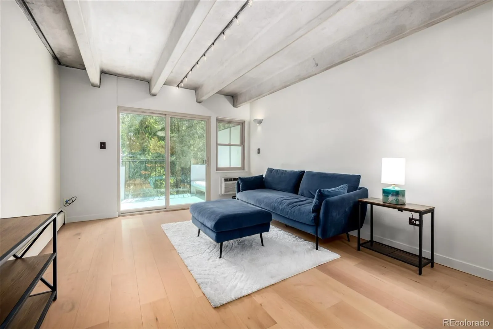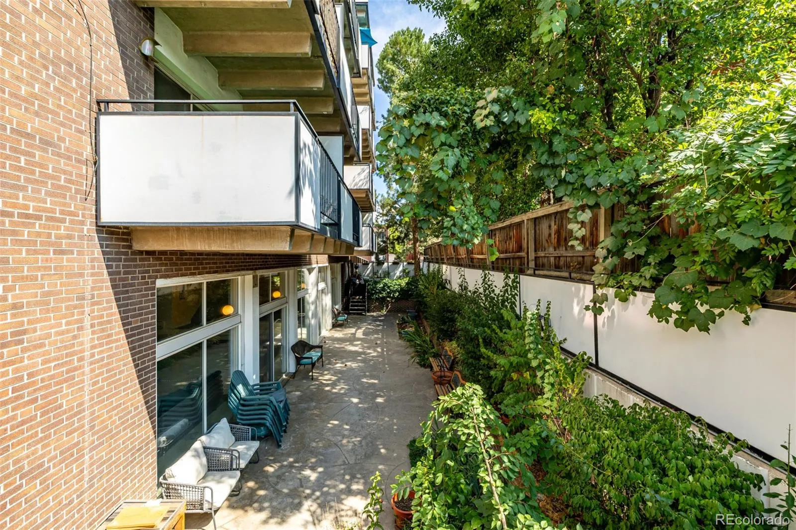 Welcome to The Cameo, a sought-after charming condominium community located in the heart of Denver. This stylish 1 bedroom, 1 bath condo offers a perfect blend of modern updates, functional living space, and unique character. Inside, you’ll find an open-concept with natural light pouring in from large sliding glass doors, with privacy screens on both sides, that lead to a south facing balcony, overlooking mature trees. The living and dining areas are accented by exposed concrete beam ceilings and new engineered wood flooring, creating a sleek yet cozy feel. The kitchen stands out with granite countertops, stainless steel appliances, and custom artistic cabinetry, giving the space unique character while offering plenty of functionality. The spacious bedroom provides a peaceful retreat with ample closet storage, while the full bathroom is clean and bright. Recent updates ensure this home is truly move-in ready, offering comfort and convenience from day one. The Cameo offers fantastic community amenities, including a brand new indoor pool with beautiful new finishes to be completed soon. Residents also enjoy access to coin-operated laundry facilities, secure bike storage, and private parking. A dedicated storage unit is included with the home. Measuring 32” wide by 30” deep it’s perfect for floor-to-ceiling shelving and is conveniently located right off the lobby. With controlled building access and a welcoming lobby, you’ll appreciate the sense of comfort and community this building provides. Situated in a prime location near Cheesman Park, the Denver Botanic Gardens, countless cafes and shops this condo places you right in the center of one of Denver’s most vibrant and walkable areas. Easy access to downtown, Cherry Creek, and major transit routes ensures commuting and exploring the city is effortless. Don’t miss the opportunity to make this stylish condo at The Cameo your new home and enjoy all the comfort, convenience, and lifestyle benefits it has to offer!