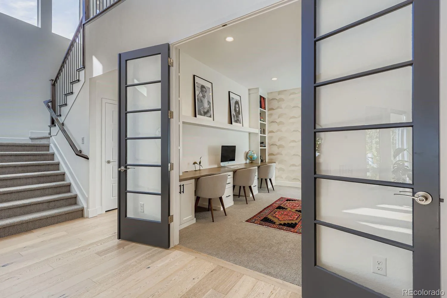 The main level boasts a large walk-in pantry and a custom mudroom bench, along with a beautifully designed custom-built office/playroom that accommodates both comfort and productivity. Entertain effortlessly with a custom-built wet bar and bar area, while the gourmet kitchen impresses with expansive quartz dine-in counters, upgraded 42-inch cabinetry, and stainless-steel appliances. Upstairs, discover four oversized bedrooms, including a breathtaking primary suite with a spa-like bathroom offering a serene retreat. Functionality meets luxury with the custom-built-in primary closet, enhancing the home’s elegant design.