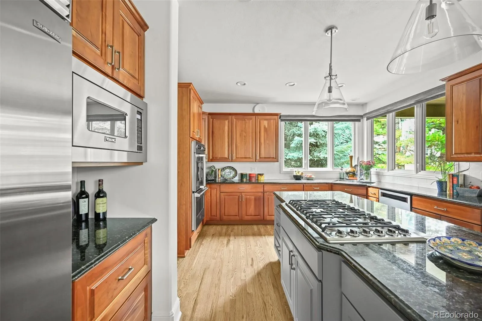 Welcome to 5691 S Elm Street, a completely remodeled and updated residence that blends timeless architecture, thoughtful upgrades, and extraordinary outdoor living in the heart of The Preserve at Greenwood Village. Refinished hardwood floors and abundant natural light define the main level, where a gracious great room with vaulted ceilings and fireplace opens through 48″ Pella doors to a pergola-covered patio. The chef’s kitchen features Subzero, Viking, and dual dishwashers, with new backsplash, hardware, and lighting. Upstairs, three bedrooms feature updated en-suites, while the primary retreat offers a sitting area, fireplace, balcony, and spa-like bath with heated floors. A main-level suite and lower-level bedroom add flexibility. The finished basement includes over 3,000 sqft, including a wet bar, pool table (included), gym, wine cellar, bedroom, bathroom and new windows with stone-veneered wells. Upgrades include more than 120 LED lights, a whole house fan, radon mitigation, humidifier, and an upgraded crawl space enhance efficiency. Outdoor living shines with over 500 new plantings, fruit trees, raised garden beds, hand-stacked stone, and full irrigation. Enjoy top-rated Littleton schools and shopping nearby with easy access to I-25. As a Preserve resident, you will enjoy access to the 71-mile High Line Canal Trail, a private Jr Olympic-sized community pool, private tennis courts, and access to the 55-acre Marjorie Perry Nature Preserve. It is a peaceful natural escape within each reach all in one of Denver’s most sought-after neighborhoods.